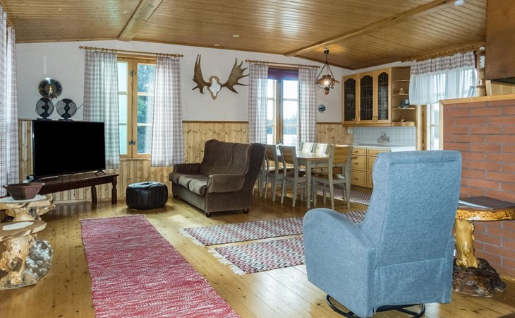 The house's location by the Ounasjoki River rapids offers excellent fishing opportunities right next door. Additionally, hunting for small game is possible for extra charges on the owner's 500-hectare land, making this a dream destination for hunting enthusiasts as well. Please reserve the additional service "Other Costs" if you would like to book hunting rights.
