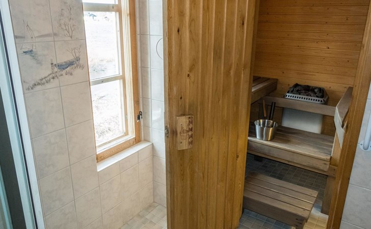 Sauna Facilities: A sauna where you can relax after a long day. The washroom includes a shower cubicle.