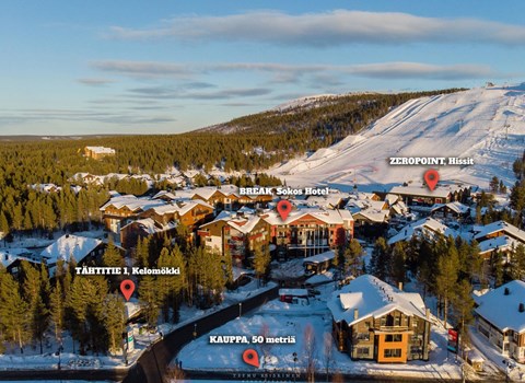 Levi, one of Finland's most popular tourist centers, is only 28 kilometers away. There you will find diverse skiing, snowshoeing, and recreational services.