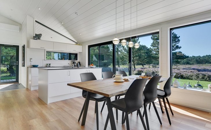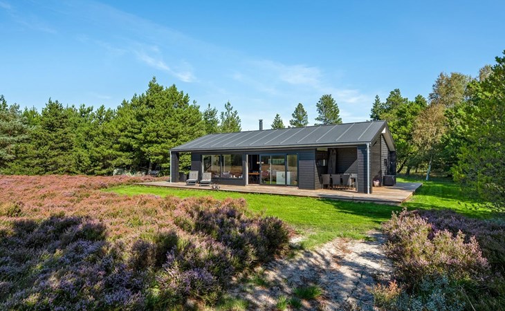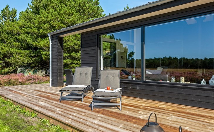 Einfamilienhaus, Baujahr 2019. 2.7 km vom Meer. Zur Alleinbenutzung: naturbelassenes Grundstück 2'689 m2. Terrasse (58 m2). Im Hause: Waschmaschine, Wäschetrockner. Parkplatz beim Haus. Lebensmittelgeschäft 1.7 km. Golfplatz 7.2 km. Der Besitzer akzeptiert keine Jugendgruppen.
