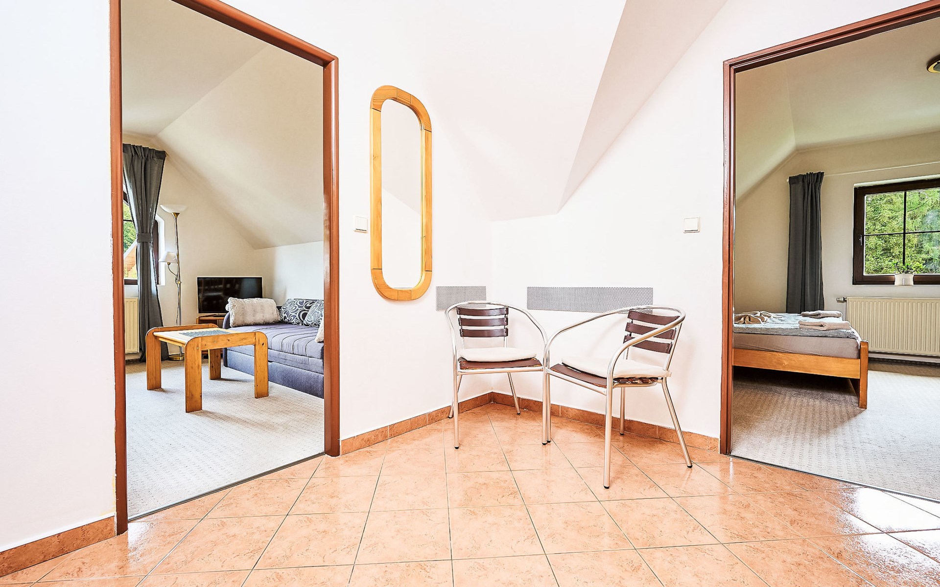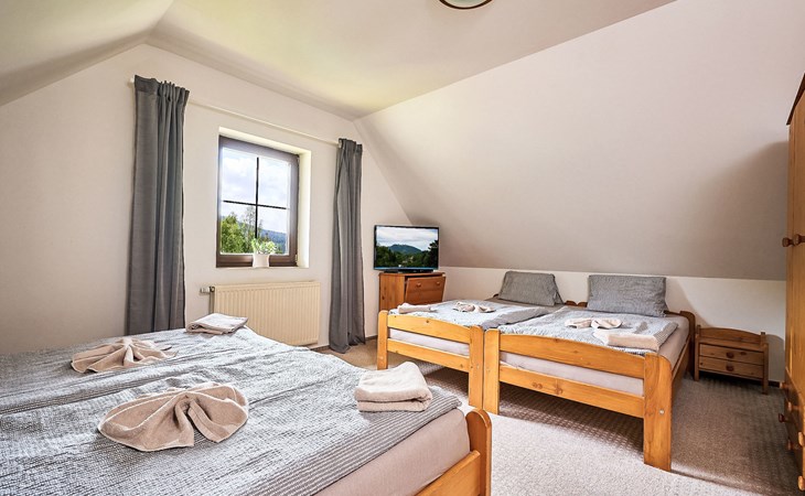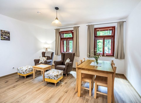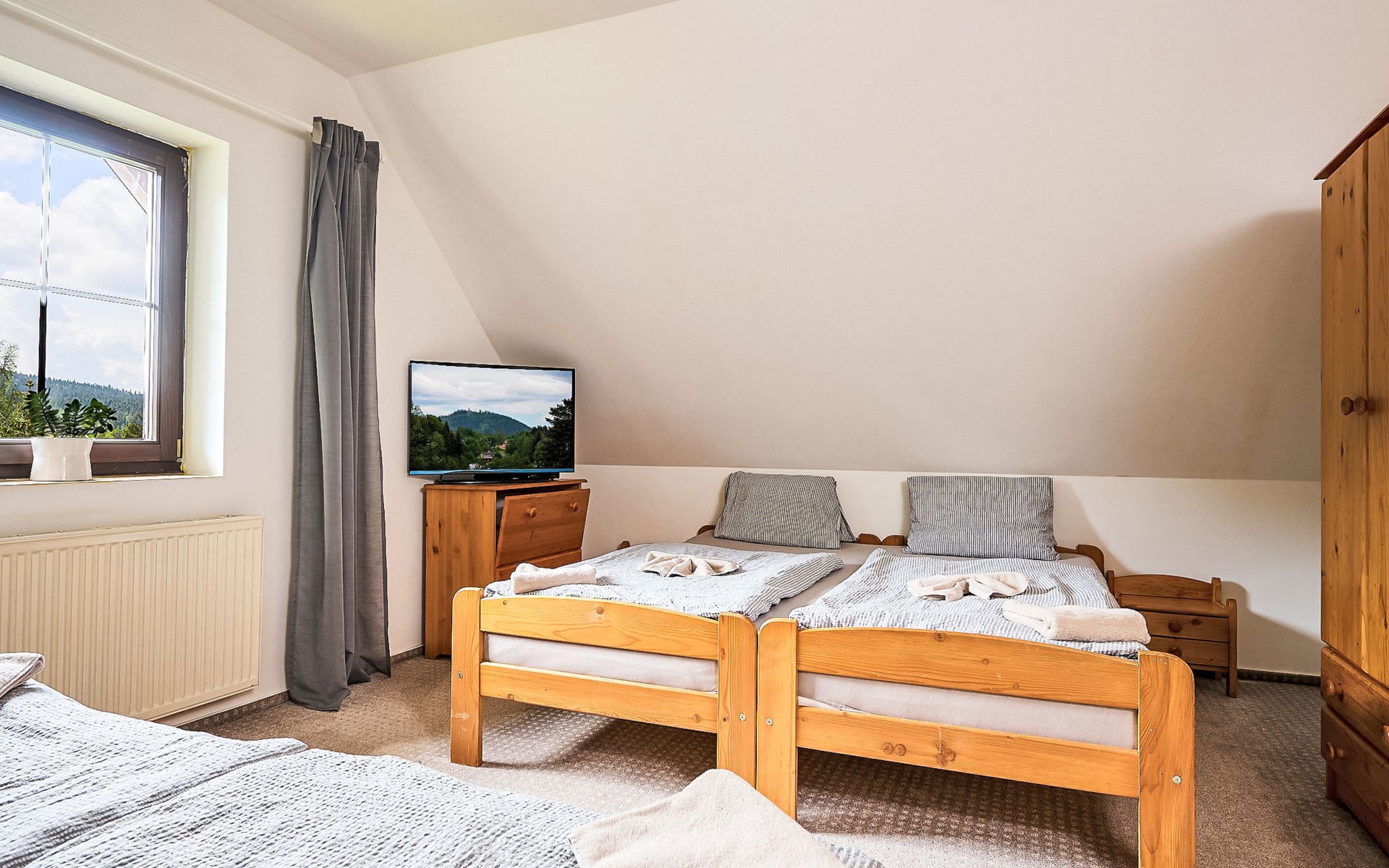 Mehrfamilienhaus 700 m.ü.M., auf 4 Stockwerken. 3 Wohnungen im Ferienhaus. Im Ortsteil Klondajk, 300 m vom Zentrum von Harrachow, in einem Wohnquartier, 25 km vom See, 500 m vom Skigebiet. Im Hause: Skiraum. Parkplatz beim Haus, Einzelgarage (extra). Einkaufsgeschäft, Supermarkt, Restaurant 150 m, Bushaltestelle "Harrachov, sklárna" 600 m, Bahnstation "Harrachov, Mýtiny" 3 km, Grasstrand 25 km, Freibad 1 km, Hallenbad 1 km. Golfplatz (9 Loch) 3.5 km, Tennis 2 km, Tennishalle 3 km, Skilift 500 m, Sessellift 500 km, Skipisten, Skiverleih 500 m, Skibushaltestelle 10 m, Skischule 500 km, Kinderskischule, Kinderspielplatz 500 m. Nahe gelegene Sehenswürdigkeiten: Mumlava vodopád 2.5 km, Kořenov 8 km, Jizerka 15 km, Jablonec nad Nisou 29 km, Liberec, Ještěd 40 km, Termy Cieplickie (Pl) 30 m. Bekannte Skigebiete sind gut erreichbar: Harrachov 1 km, Příchovice 10 km, Rokytnice nad Jizerou 15 km. Wandergebiete: Western City(Pl) 40 km, Karpacz Wang,Park miniatury Kowary (Pl) 44 km, Giganteria Piechowice 23km, Dinopark(Pl) 15 km. Garage auf Anfrage. Die Gästekarte HARRACHOV CARD ist im Preis inbegriffen.