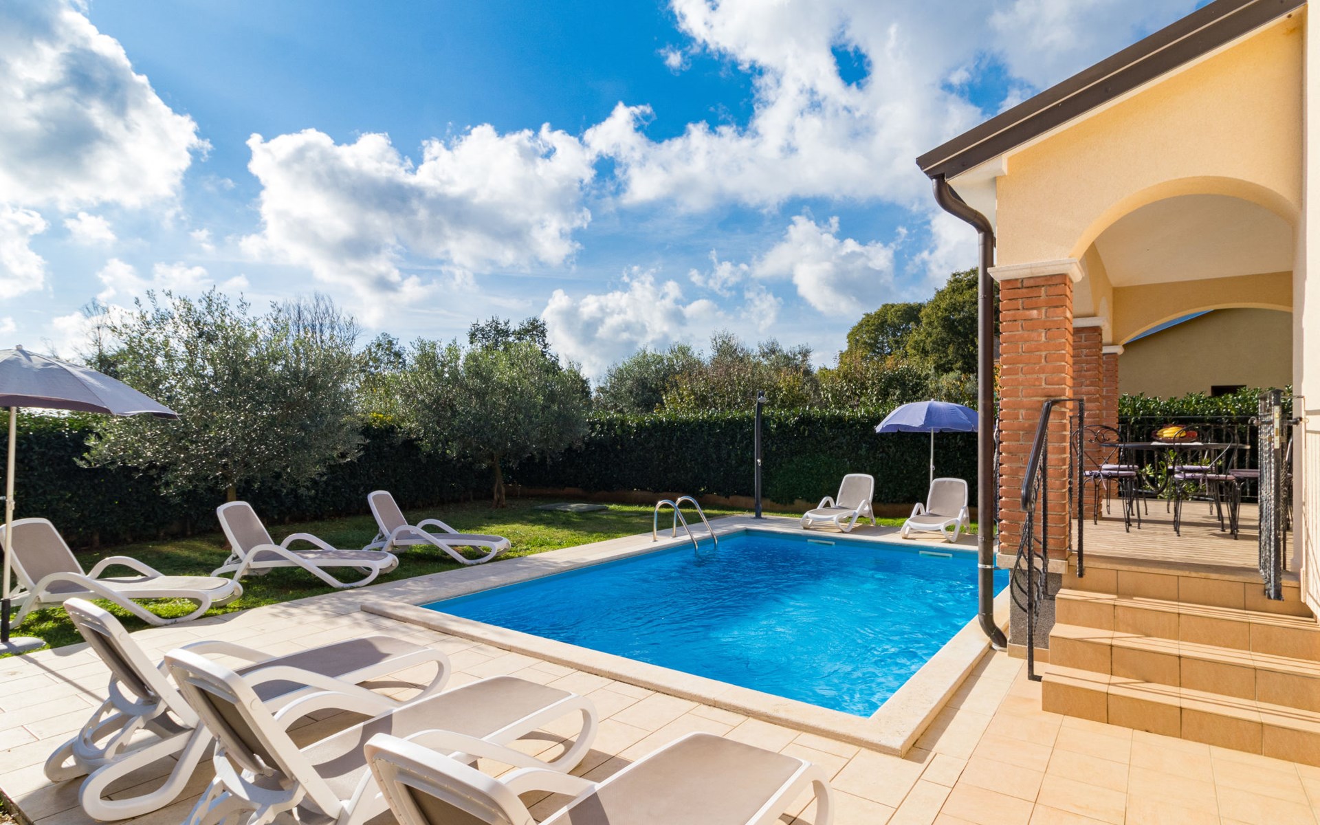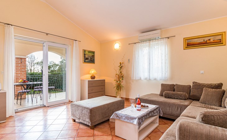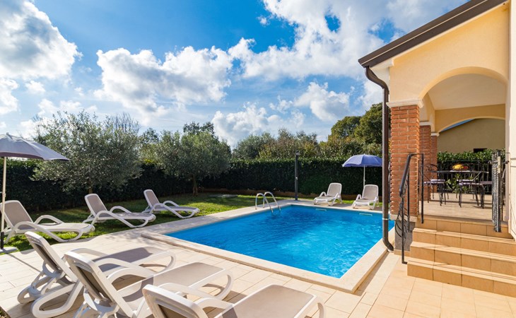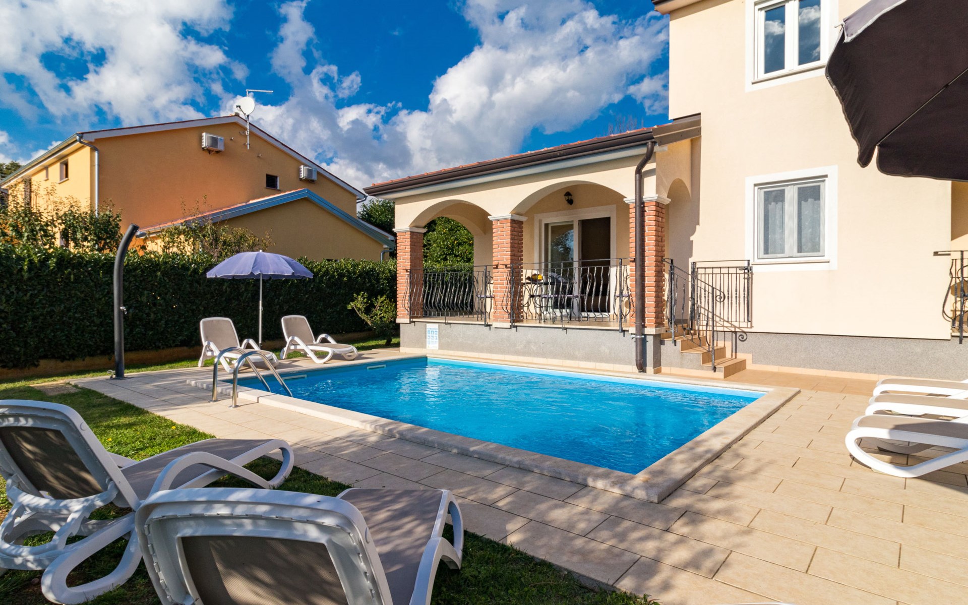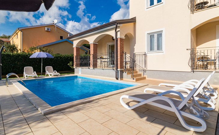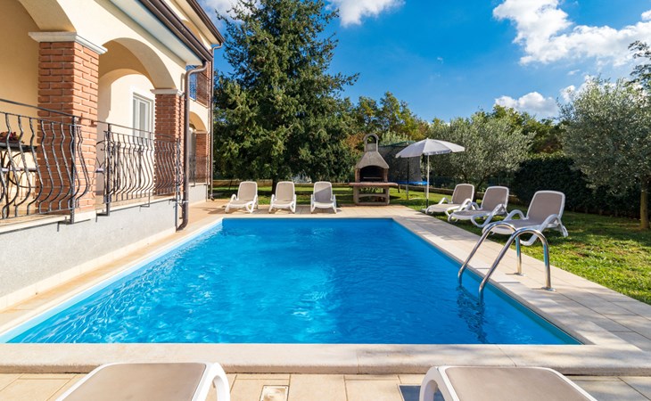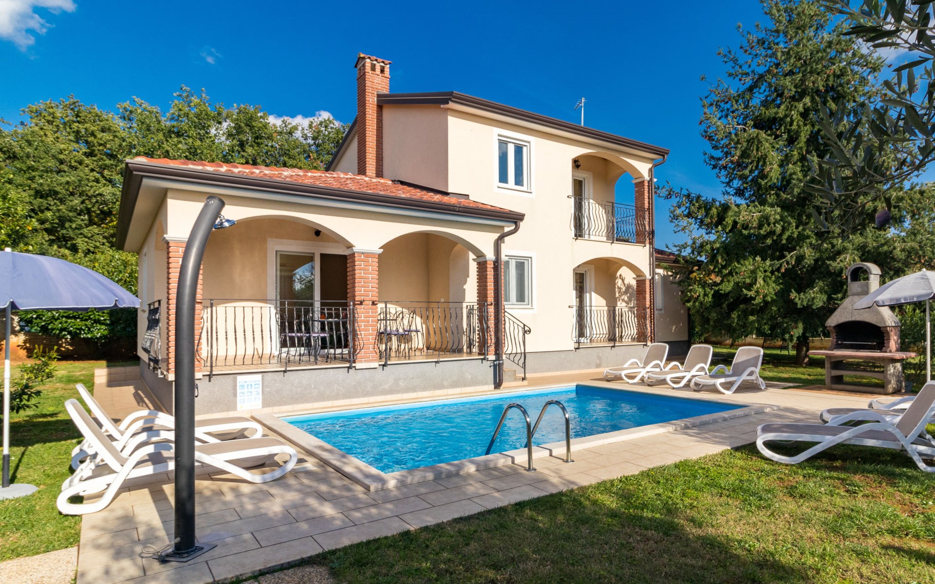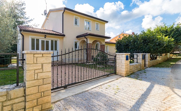 Einfamilienhaus "Lara", auf 2 Stockwerken. Im Weiler Begi, 10 km vom Zentrum von Vrsar, 15 km vom Zentrum von Poreč, 9 km vom Meer, im Grünen. Zur Alleinbenutzung: Grundstück 850 m2 (eingezäunt), Rasen und Bäumen, Schwimmbad eckig (6 x 4 m, 145 cm tief, saisonale Verfügbarkeit: 04.Apr. - 06.Nov.). Aussendusche, Terrasse, Grill (Schaukel), Poolpflege durch den Besitzer/Gärtner. Im Hause: Internetzugang, Fitnessraum, Tischfussball, Trampolin, Waschmaschine. Parkplatz beim Haus. Einkaufsgeschäft 4 km, Bushaltestelle 12 km, Bahnstation 19 km, Felsstrand 9 km.