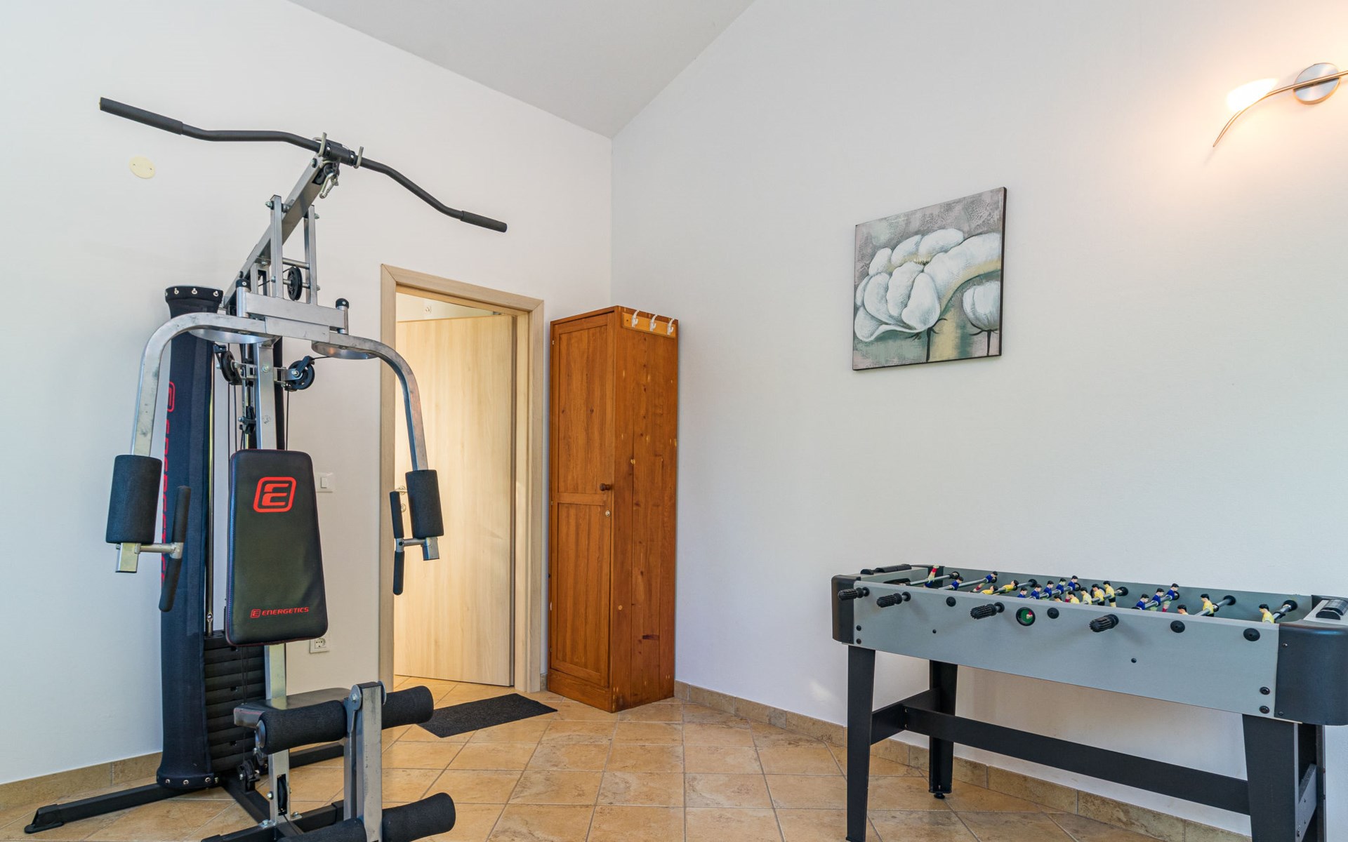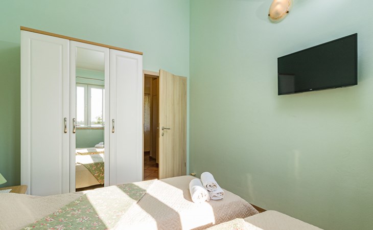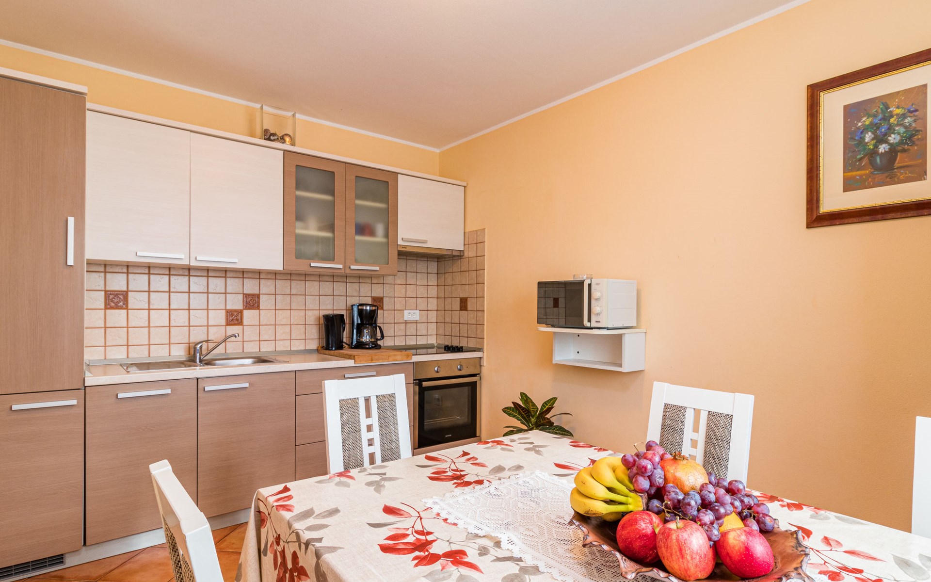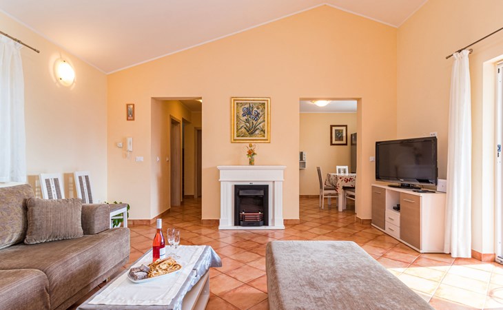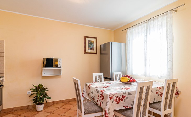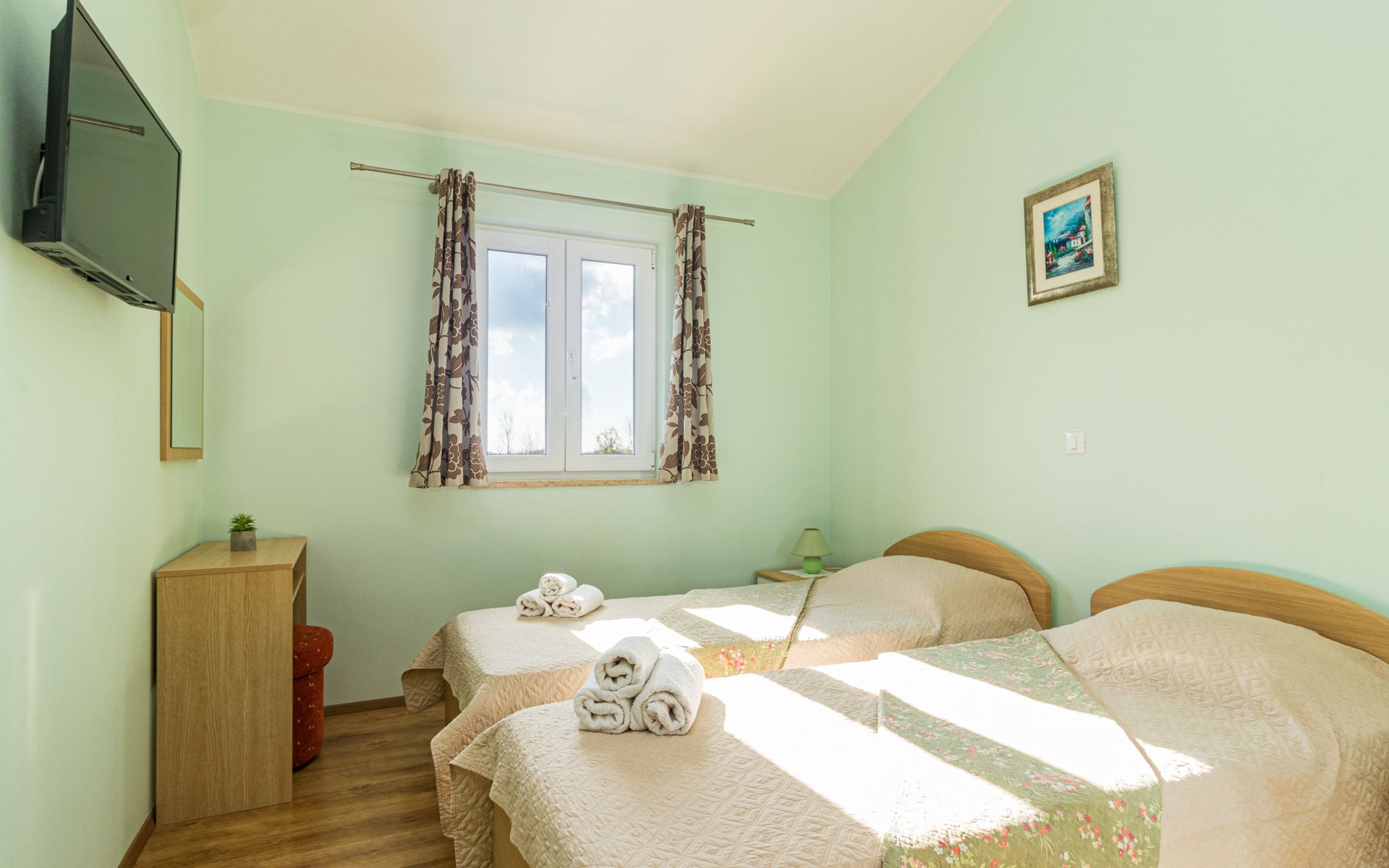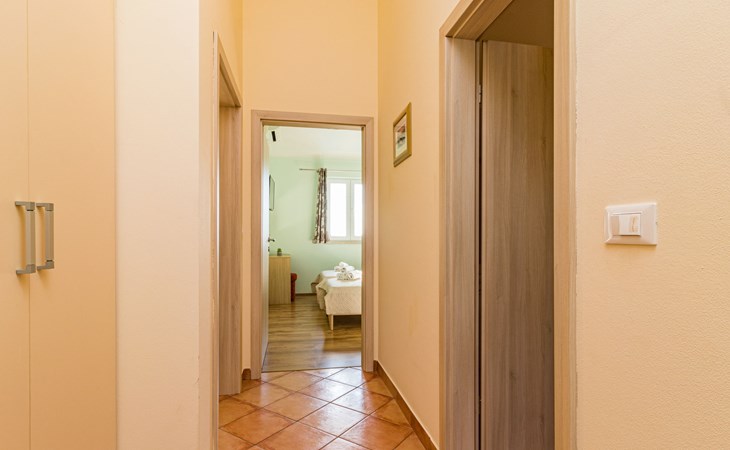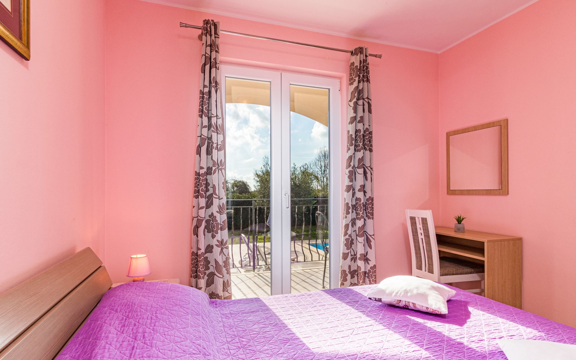 Einfamilienhaus "Lara", auf 2 Stockwerken. Im Weiler Begi, 10 km vom Zentrum von Vrsar, 15 km vom Zentrum von Poreč, 9 km vom Meer, im Grünen. Zur Alleinbenutzung: Grundstück 850 m2 (eingezäunt), Rasen und Bäumen, Schwimmbad eckig (6 x 4 m, 145 cm tief, saisonale Verfügbarkeit: 04.Apr. - 06.Nov.). Aussendusche, Terrasse, Grill (Schaukel), Poolpflege durch den Besitzer/Gärtner. Im Hause: Internetzugang, Fitnessraum, Tischfussball, Trampolin, Waschmaschine. Parkplatz beim Haus. Einkaufsgeschäft 4 km, Bushaltestelle 12 km, Bahnstation 19 km, Felsstrand 9 km.