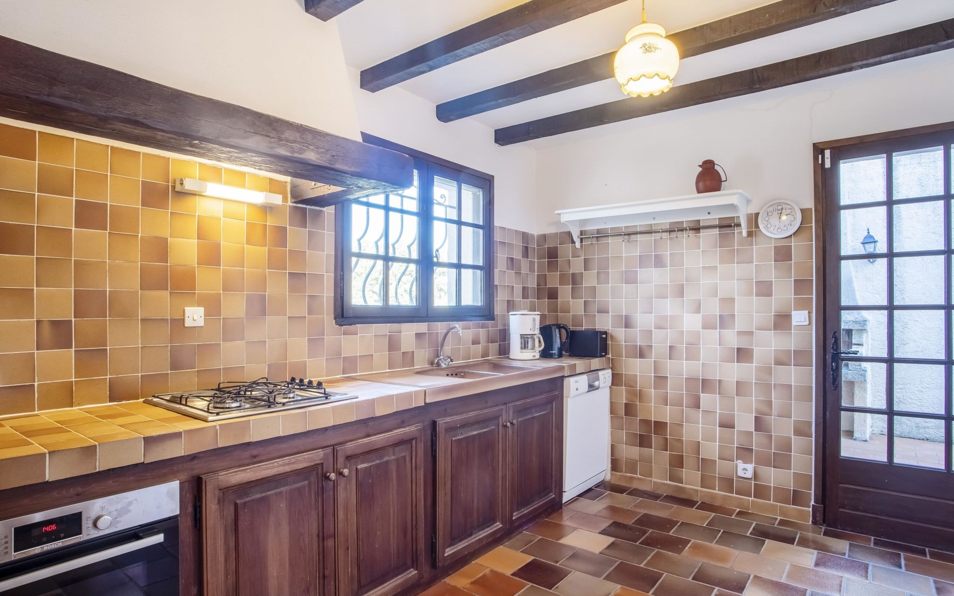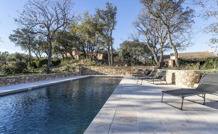 Einfamilienhaus "Le Mas du Golfe", umgeben von Bäumen. Ausserhalb des Ortes, 9 km vom Zentrum von Grimaud, 3 km vom Meer, 3 km vom Strand. Zur Alleinbenutzung: naturbelassenes Grundstück 1'600 m2, Garten (nicht eingezäunt), Schwimmbad (4 x 12 m, 120 - 180 cm tief, saisonale Verfügbarkeit: 01.Mai. - 30.Sep.) mit Rollladenabdeckung. Einkaufsgeschäft 6 km, Lebensmittelgeschäft 2 km, Supermarkt 6 km, Restaurant 2 km, Bäckerei 2 km, Bushaltestelle "Prairies de la mer" 2.2 km, Sandstrand "Plage de Grimaud" 3 km. Sporthafen 4 km, Golfplatz (18 Loch) 5 km, Segelschule 6 km. Nahe gelegene Sehenswürdigkeiten: Parc d'Attractions Azur Park 6 km, Sainte Maxime 9 km, Saint Tropez 11 km, Plages de Pampelonne 15 km, Cannes 85 km, Nice 110 m. Bekannte Seen in der Umgebung sind gut erreichbar: Le lac de Sainte Croix 98 km. Wandergebiete: Le Massif de l'Esterel 50 km. Bitte beachten: Fahrzeug empfohlen. Die Schlüsselübergabe findet bei der Agentur Interhome in Gassin statt, 6 km.