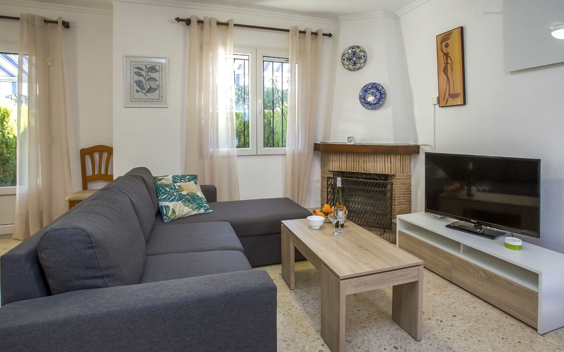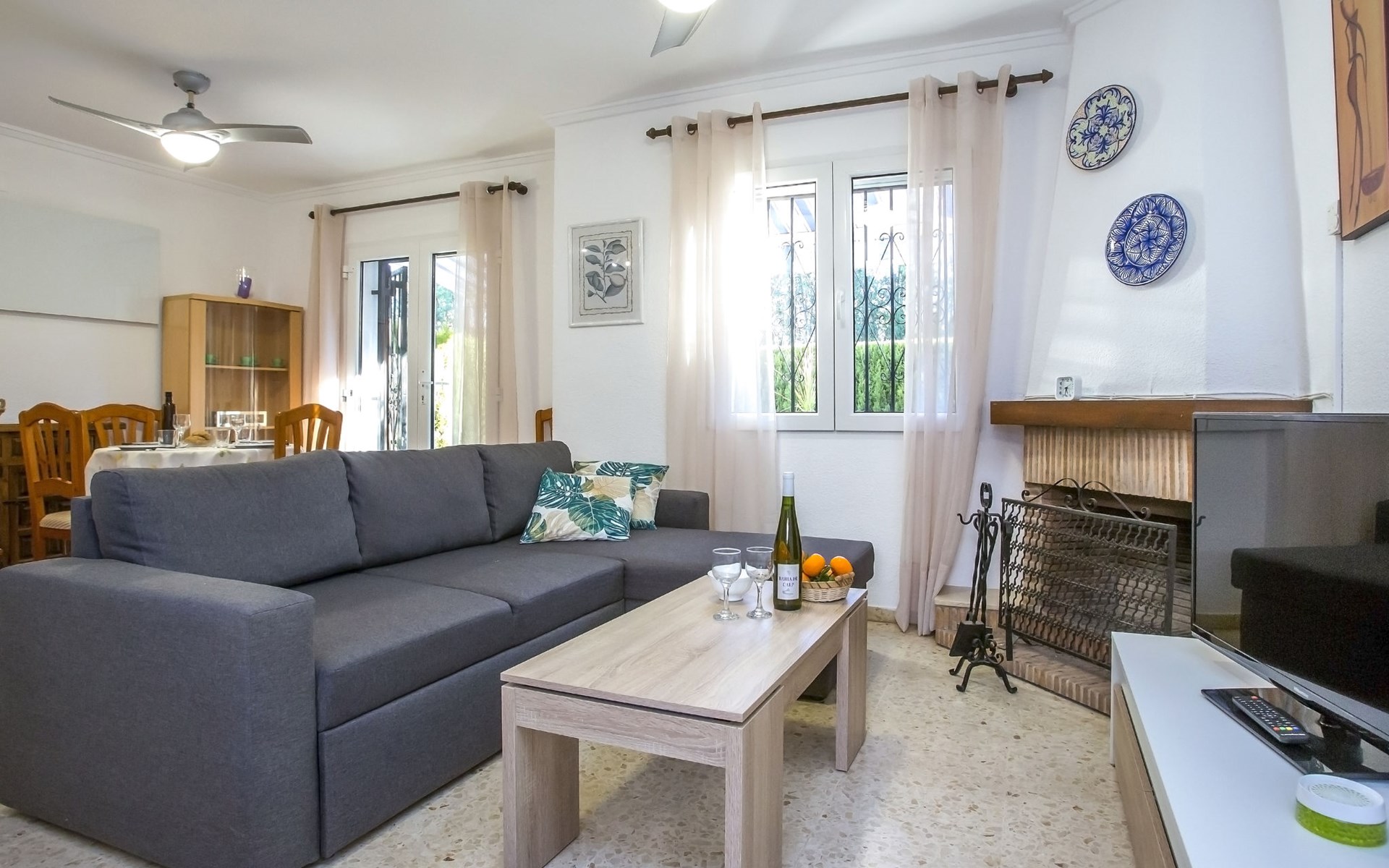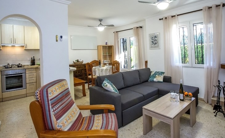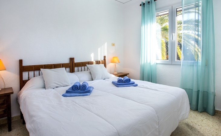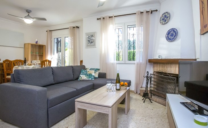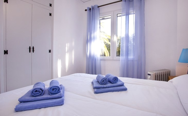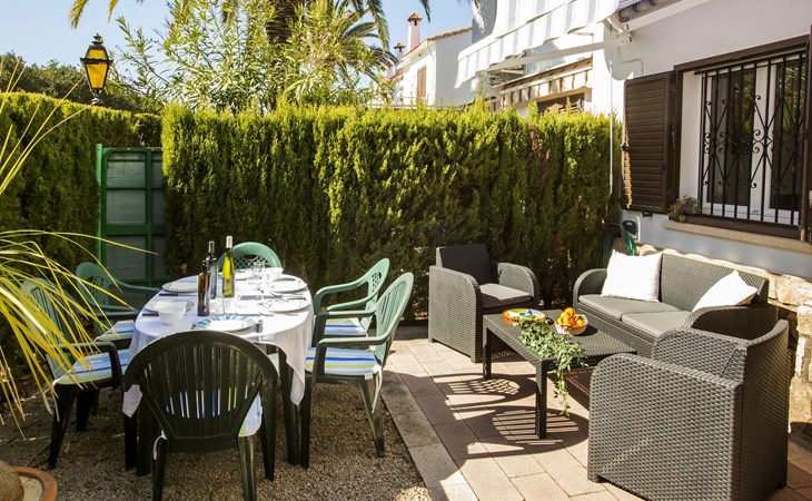 Sehr schönes, gemütliches, sehr komfortables Reihenhaus "El Palmar". Im Ort, 4 km vom Zentrum von Dénia, vom Meer, 700 m vom Strand. Zur Mitbenutzung: 2 Schwimmbäder (saisonale Verfügbarkeit: 01.Jan. - 31.Dez.) mit Innentreppe. Ungleichmässige Schwimmbadform, Kinderbecken, Rutschbahn, Aussendusche, Kinderspielplatz. Zur Alleinbenutzung: Grundstück mit Rasen, Parkplatz beim Haus. Einkaufsgeschäft 300 m, Supermarkt 900 m, Restaurant 400 m, Bar 450 m, Bushaltestelle 800 m, Bahnstation 6 km, Fähre 6 km, Sandstrand "Playa de les Bovetes" 700 m. Sporthafen 4.5 km, Jacht-Hafen 4.5 km, Segelschule 700 m. Der Besitzer akzeptiert keine Jugendgruppen.