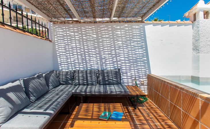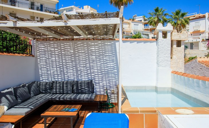 Burriana: Schönes, gemütliches Reihenhaus "Amanda", auf 3 Stockwerken. Im Ort, 1.6 km vom Zentrum, im Villenviertel, exzellente Lage: Absolut zentral und dennoch ruhig, 200 m vom Meer, 200 m vom Strand, Richtung Süden. Zur Mitbenutzung: Schwimmbad nierenförmig (6 x 9 m, 100 - 200 cm tief, saisonale Verfügbarkeit: 01.Apr. - 30.Okt. Öffnungszeiten Schwimmbad: 10:00-20:00). Aussendusche. Zur Alleinbenutzung: Schwimmbad eckig (2 x 3 m, 50 cm tief, saisonale Verfügbarkeit: 01.Jan. - 31.Dez.). Im Hause: Solarium, Klimaanlage, Waschmaschine. Öffentliche Parkplätze auf der Strasse. Einkaufsgeschäft, Lebensmittelgeschäft, Supermarkt 200 m, Einkaufszentrum 20 km, Restaurant, Bar, Bäckerei, Café, Internet-Café 200 m, Fußgängerzone 500 m, Fahrradverleih 300 m, Biergarten 200 m, Zentrum zu Fuss in 20 Minuten erreichbar, Bushaltestelle 200 m, Bahnstation "Malaga" 500 m, Sandstrand "Burriana" 250 m, Tauchzentrum 200 m. Sporthafen 20 km, Jacht-Hafen 20 km, Golfplatz (18 Loch) 20 km, Surfschule 20 km, Segelschule 20 km, Tennis 300 m, Reitstall 450 m, Sportzentrum 3 km, Wanderwege ab Haus 400 m, Radweg 300 m, Sessellift 70 km, Skipisten 70 km, Skischule 70 km, Kinderspielplatz 200 m. Nahe gelegene Sehenswürdigkeiten: Restaurantes, supermercado en la playa. 200 m, Piraguismo y buceo en la playa. 200 m, Museo de Nerja. 500 m, Parques infantiles. 200 m, Mercadillos 600 m, Pueblo de Frigiliana 3 km. Bekannte Skigebiete sind gut erreichbar: Sierra Nevada 70 km. Bekannte Seen in der Umgebung sind gut erreichbar: La Viñuela en Velez-Málaga 20 km. Wandergebiete: Sierra de Almijara 1 km. Bitte beachten: kein Fahrstuhl vorhanden. Geeignet für Familien, Babyausstattung auf Anfrage (extra). Jugendgruppen nur auf Anfrage. Be- und Entladen am Ferienhaus möglich. Ferienwohnung Ref. ES5405.667.1 befindet sich auf dem gleichen Grundstück.
