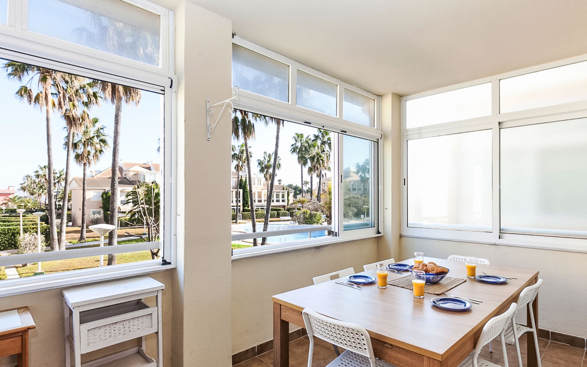 Appartementhaus "La Rosaleda", auf 3 Stockwerken. Im Ortsteil Las Marinas, 2 km vom Zentrum von Dénia, 300 m vom Meer, 300 m vom Strand. Zur Mitbenutzung: Garten, Schwimmbad (saisonale Verfügbarkeit: 01.Jan. - 31.Dez.). Öffentliche Parkplätze. Supermarkt, Restaurant, Bushaltestelle 300 m, Sandstrand. Golfplatz (18 Loch) 7 km, Tennis 500 m, Kinderspielplatz 200 m. Der Besitzer akzeptiert keine Jugendgruppen.