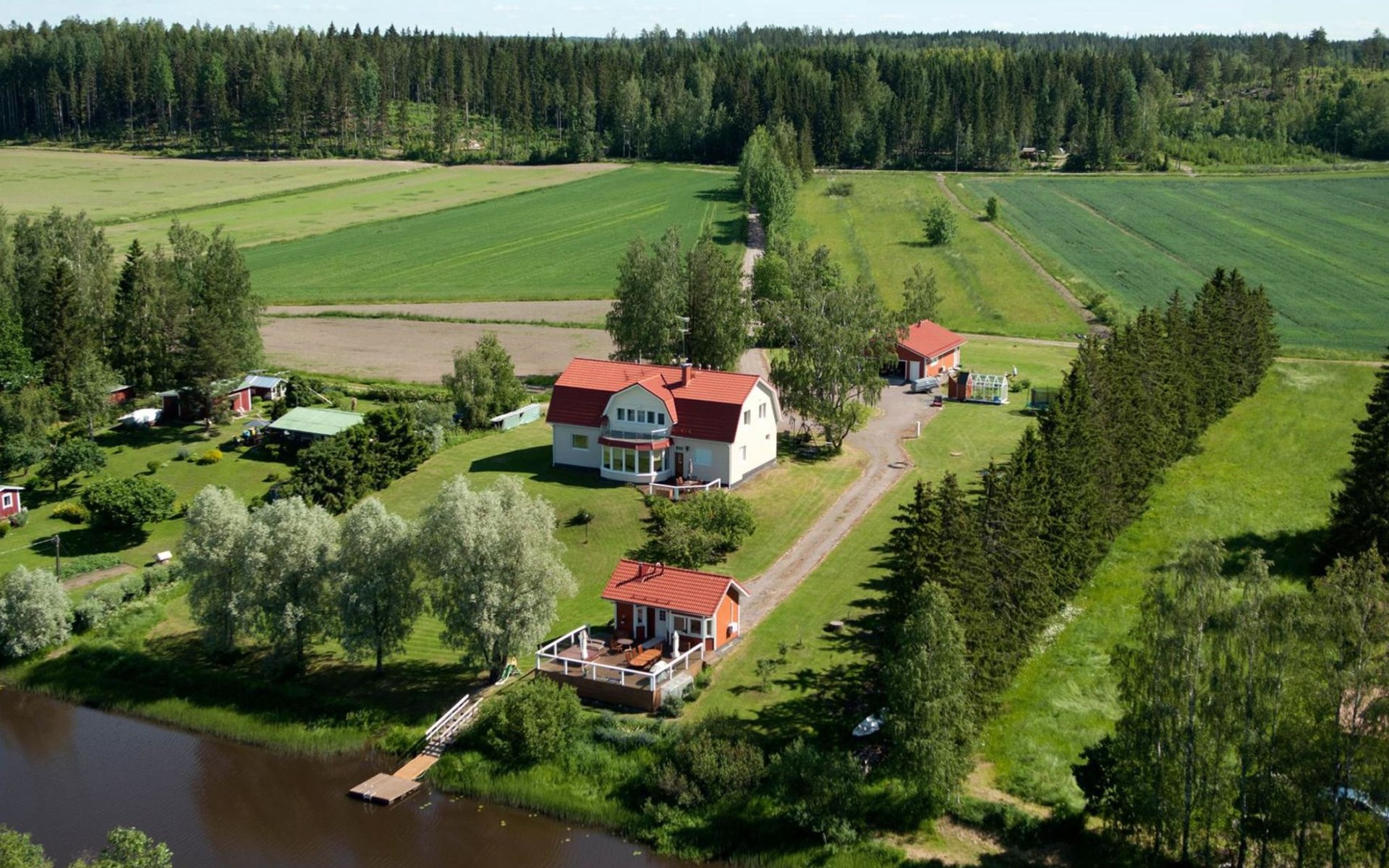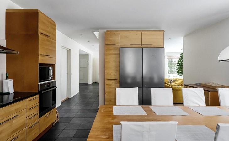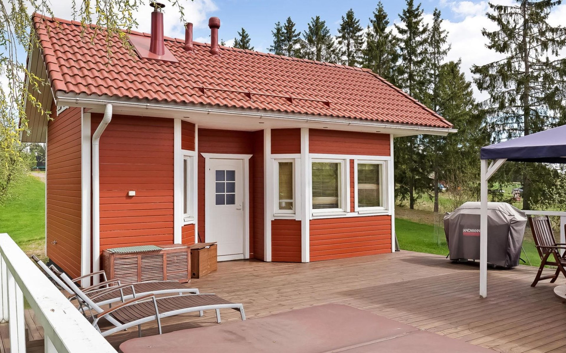 55 km nördlich von Helsinki, Fluss Mustijoki 30 m (Breite 20 m vor der Villa), tiefer und weicher Lehmboden, am Ende der Anlegestelle tiefer Boden, Boot, elektrischer Aussenborder. 2-stöckige Steinvilla, Baujahr 2004, im Erdgeschoss Küche, grosses Wohnzimmer (Kamin), Bibliothek mit 2 Betten, Raum mit Whirlpool, Sauna (Elektroherd), Waschraum (2 Duschen), Ankleideraum, Toilette. Von der Sauna gibt es Ausgang zur Terrasse, Eingangshalle. Im Obergeschoss Wohnbereich (mit Schlafcouch), Hauptschlafzimmer mit Doppelbett, 2 Schlafzimmer mit je 2 Betten, Schlafzimmer mit 4 Betten und Kinderetagenbett, Toilette, Balkon. Separate Ufersauna (25 m²), Ankleidezimmer (mit Schlafcouch und kleiner Küchenzeile), Duschbad, Dampfbad (Holzofen), Dachbodenraum mit Matratzen (hauptsächlich für Kinder geeignet, steile Treppe, die geöffnet werden muss), grosse Terrassenbereiche. Auf der Terrasse der Sauna kann Whirlpool im Freien gemietet werden (ganzjährig verfügbar). Die Miete beträgt € 100/Buchungszeitraum. Wenn Sie den Whirlpool buchen wollen, fügen Sie bitte bei der Buchung die Zusatzleistung "Whirlpool" hinzu. Hochgeschwindigkeit-Internetzugang (100 MB), 5 Fernseher, Videoprojektor, Karaoke-Anlage, Heimkino, ca. 200 DVDs (die meisten auf Englisch), Klavier, Spielgeräte und Trampolin im Hof. Gasgrill. Moderne elegante Villa, an einem kleinen Fluss, inmitten fruchtbarer Ackerlandschaften in Mäntsälä, nur eine halbe Autostunde von Helsinki entfernt. Der Hof ist geräumig, hell und grasbewachsen. Es gibt 2 Geschirrspüler und 2 Kamine. Verpflegungsdienst nach Vereinbarung/gegen Aufpreis in der Nachbarschaft. Nach Absprache/zu einem anderen Preis ist es möglich mehr als 12 Personen unterzubringen, dies muss jedoch vor der Reservierung angefragt werden. Die maximale Personenzahl (12 Personen) darf nicht überschritten werden, ohne dass Sie vor der Buchung nachfragen und den Aufpreis zahlen. Helsinki-Sehenswürdigkeiten 55 km, Lahti (z.B. die Sibelius-Halle, Konzerte) 50 km, Hyvinkää 30 km, Porvoo (z.B. die idyllische Altstadt und die Kathedrale) 40 km, Järvenpää (z.B. das Sibelius-Ainola-Hausmuseum) 30 km, Mäntsälä 9 km, Talma und Messilä Skipisten 50 km. Hinweis! Der Eigentümer wird am Anreisetag eine Kaution, in Höhe von € 150 (in bar), verlangen. Er wird diese Kaution wieder zurückerstatten, wenn nach dem Urlaub alles in einwandfreiem Zustand ist und die Endreinigung gemäss den Buchungsbedingungen von Lomarengas erfolgt ist. Die Endreinigung kann als zusätzliche Dienstleistung gebucht werden. Bei Bedarf ist auch eine vollständige Endreinigung zum Preis von € 350 verfügbar. Wenn Sie eine vollständige Endreinigung buchen wollen, wenden Sie sich bitte an unser Vertriebsbüro. Die vollständige Endreinigung beinhaltet auch das Abwaschen des Geschirrs und das Entfernung des Mülls.