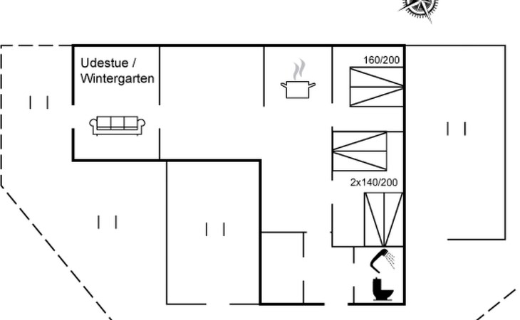 Einfamilienhaus, Baujahr 1988. Zur Alleinbenutzung: naturbelassenes Grundstück 5'623 m2. Terrasse (50 m2). Im Hause: Waschmaschine. Parkplatz beim Haus. Lebensmittelgeschäft 2 km. Der Besitzer akzeptiert keine Jugendgruppen.