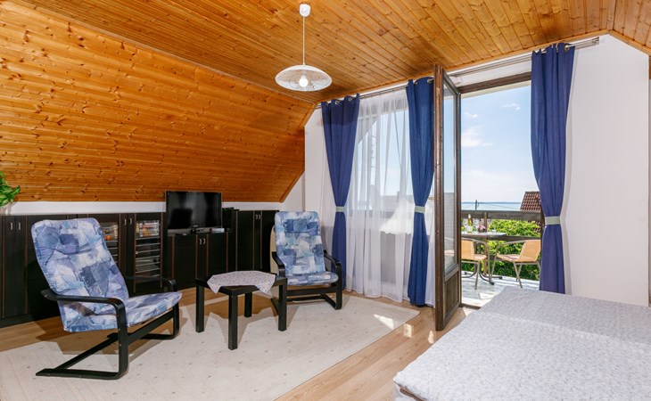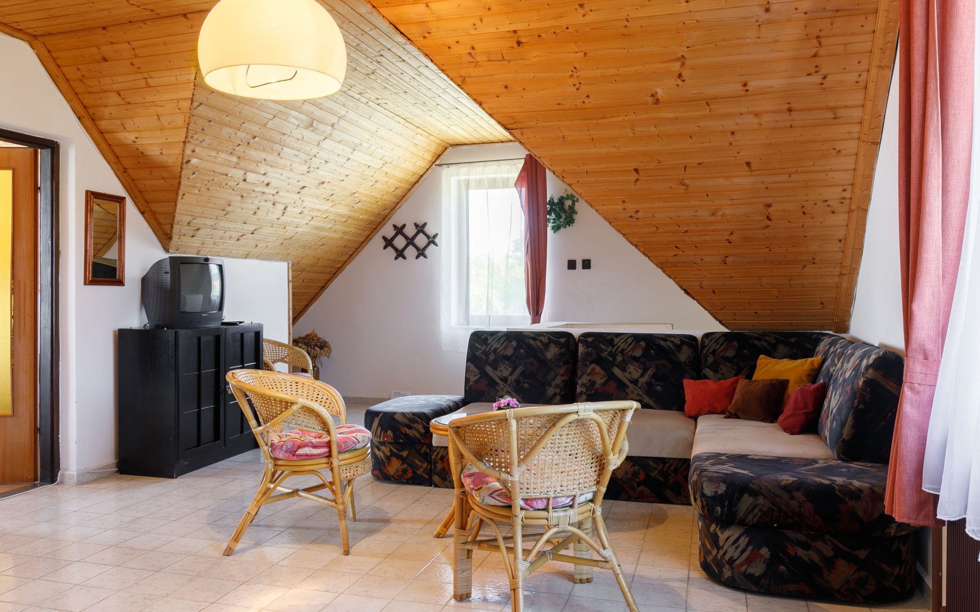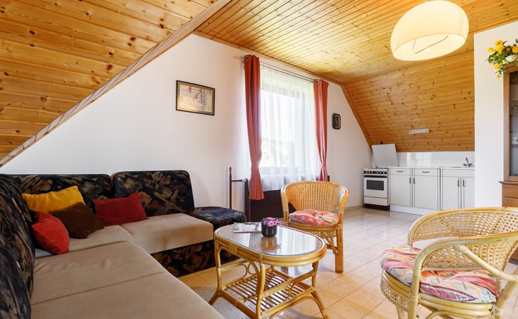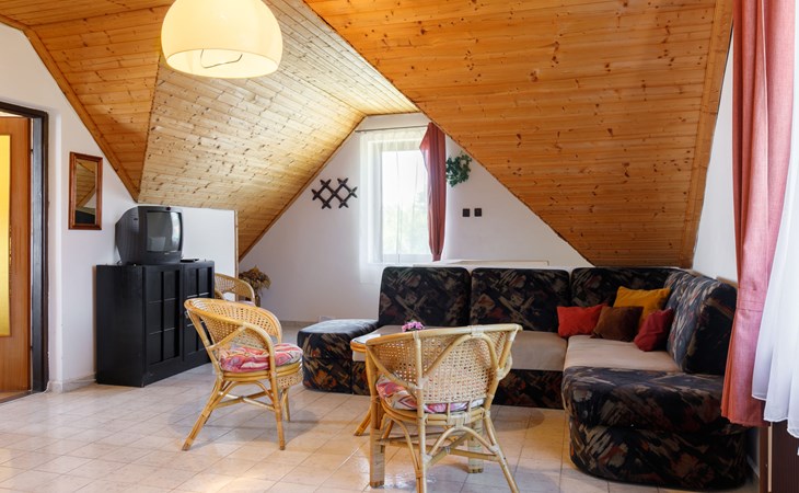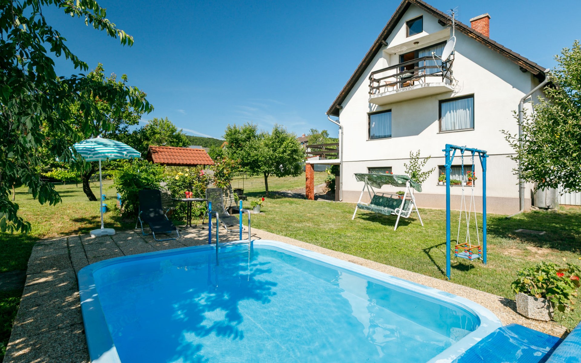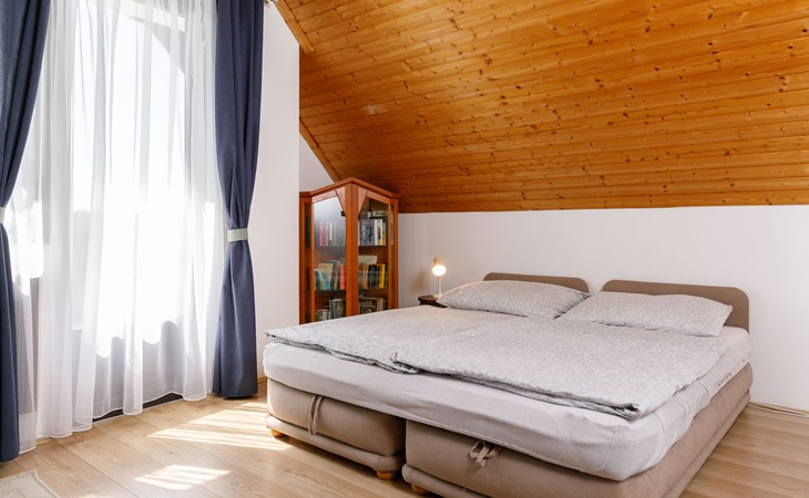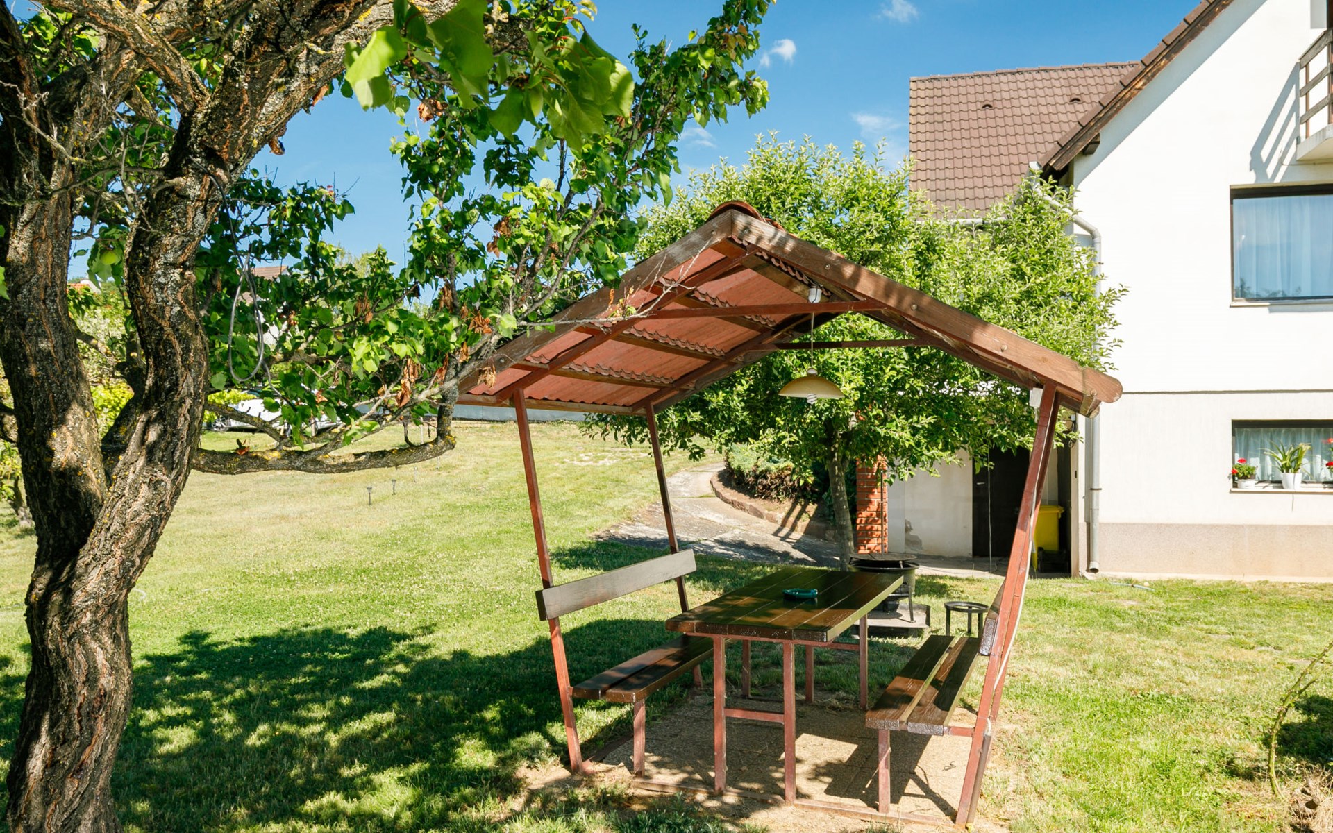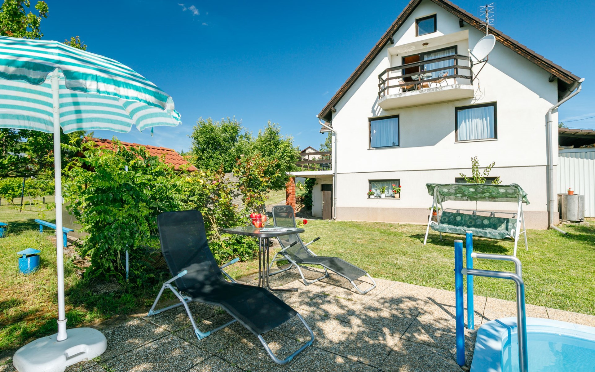 Balatonalmádi 16 km von Balatonfüred: Einfamilienhaus "Antal". 1.2 km vom Zentrum von Balatonalmadi, 7 km vom Zentrum von Balatonfüzfö, 17 km vom Zentrum von Balatonfüred, am Hang, in einem Wohnquartier, 2 km vom See, 3.2 km vom Strand, in einer Sackgasse. Zur Alleinbenutzung: Grundstück 1'400 m2 (eingezäunt) mit Bäumen, Wiese, Schwimmbad (4 x 3 m, 90 cm tief, saisonale Verfügbarkeit: 15.Mai. - 30.Sep.). Kinderspielplatz (Schaukel). Abstellraum vorhanden. Parkplatz (für 3 Autos) auf dem Grundstück. Lebensmittelgeschäft 300 m, Supermarkt 2.4 km, Restaurant 300 m, Grasstrand 2 km, Thermalbad "Hévíz" 88 km. Tennis 2.5 km, Reitstall 650 m, Sportzentrum 1.2 km, Radweg 2.5 km, Kinderspielplatz 1 km. Nahe gelegene Sehenswürdigkeiten: Veszprém Zoo 19 km, Balatonibob Leisure Park 4 km, Balatonfüred Annagora Aquapark 18 km, Tihany 24 km, Balaton Golf Club 28 km, Folly Arboretum 53 km.