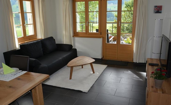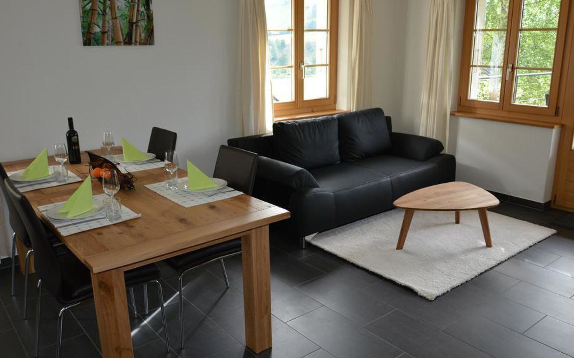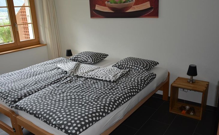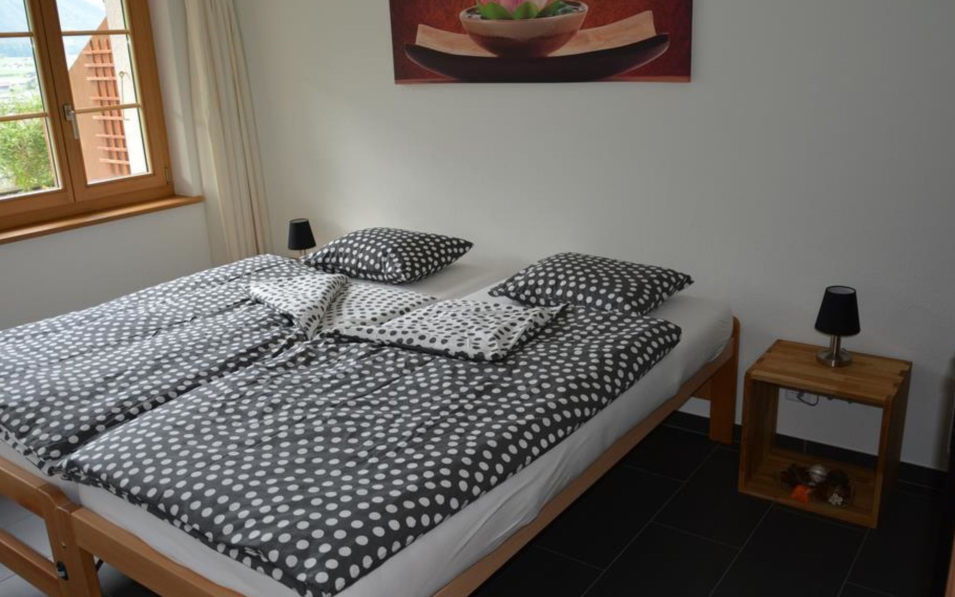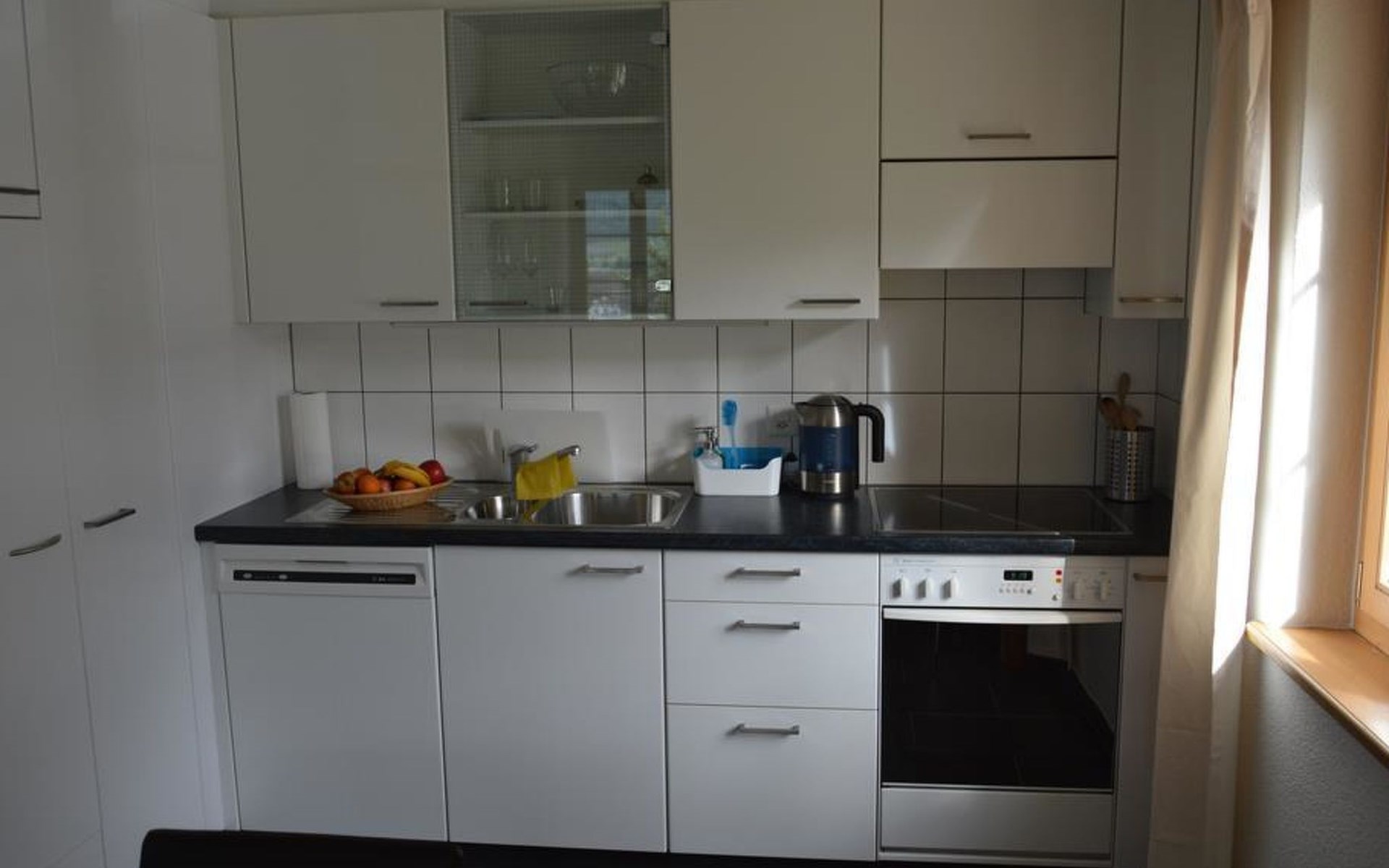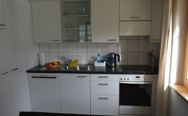 Wohn-/Esszimmer mit TV/Radio Sofabett (150x200cm). Schlafzimmer mit 2 Einzelbetten (je 90x200cm). Offene Küche u.a. ausgestattet mit Esstisch, Geschirrspüler, Kapsel-Kaffeemaschine (Nespresso), Fondue- und Raclette-Set. 1 Badezimmer mit WC und Badewanne. WiFi. Kinderbett (60x120cm) exkl. Bettwäsche vorhanden.