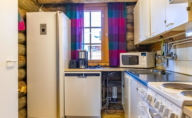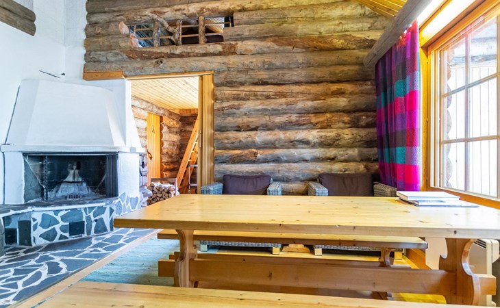 You can prepare tasty meals in the kitchen and there is space in the living room to spend time together with the whole group. An open fireplace adds cosiness and warmth to the cottage. Another fireplace is located in room with fireplace and the room separated by a folding door from the livingroom.