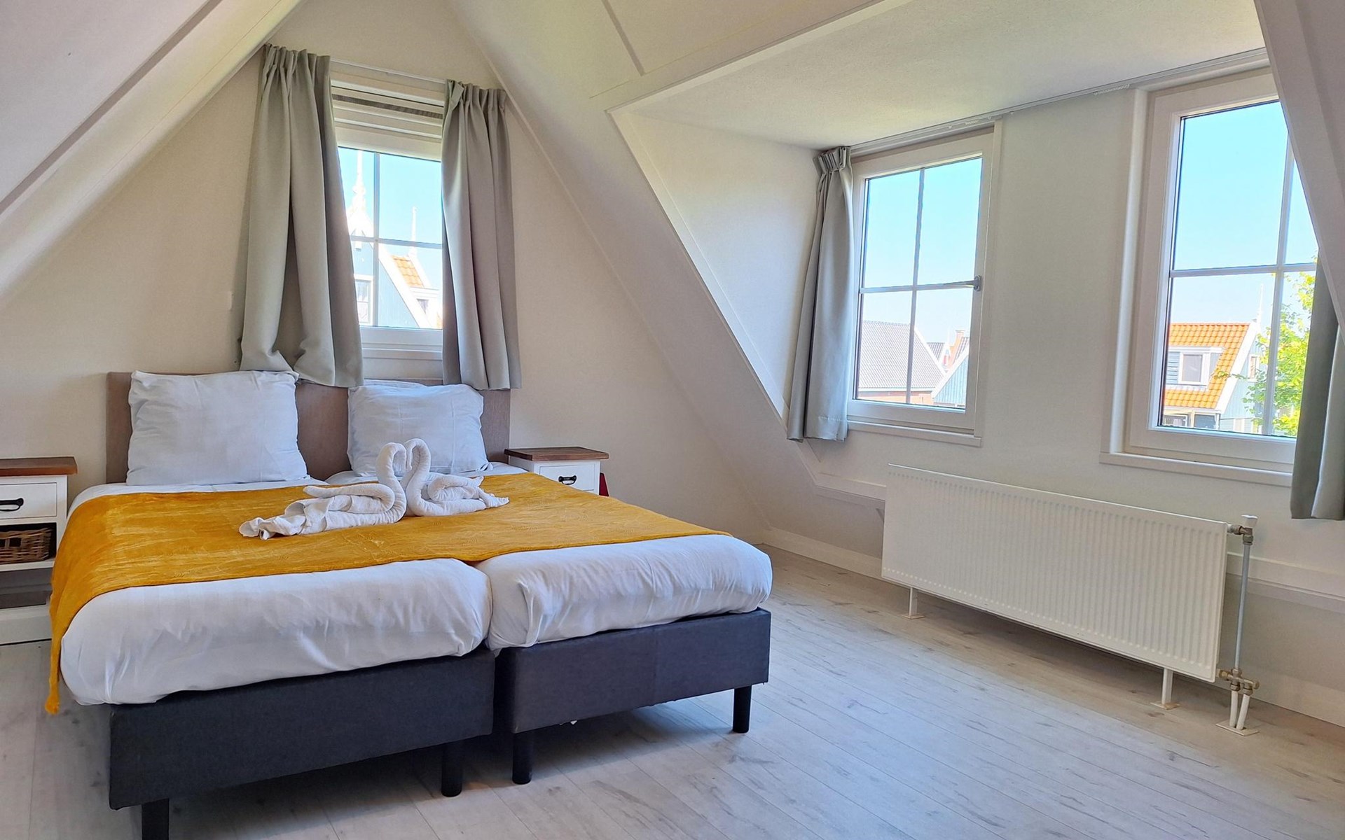 Der De Rijp Sauna 6 ist ein Bungalow im altholländischen Stil, welcher den Luxus einer eigenen Sauna bietet. Der freistehende Bungalow hat 2 Etagen und ist für 6 Personen geeignet. Im Erdgeschoss befindet sich das Wohnzimmer mit einer gemütlichen Sitzecke und Fernseher sowie eine Küche mit Spülmaschine, Filterkaffeemaschine und Kombi-Mikrowelle. Der Bungalow verfügt über 3 Schlafzimmer, 1 im Erdgeschoss und 2 im Obergeschoss, jeweils mit 2 Einzelbetten. Darüber hinaus gibt es 2 Badezimmer mit Dusche, Toilette und Waschbecken. Außerdem gibt es ein separates WC und je nach Hausnummer eine Infrarotsauna oder eine traditionelle Sauna (dies ist auf der Buchungsbestätigung ersichtlich). Im Außenbereich des De Rijp Sauna 6 lädt ein gemütlicher Garten mit Gartenmöbeln zum Verweilen ein. Am Haus befindet sich ein Parkplatz für ein Auto. Das WLAN im Haus ist kostenfrei nutzbar.