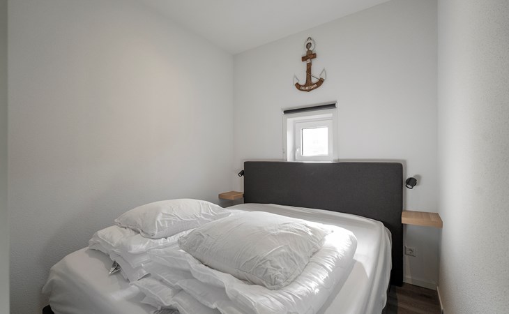 Das Schlafzimmer ist sehr klein, man muss seitlich ins Bett gehen, mit etwas Geschick funktioniert das aber gut.