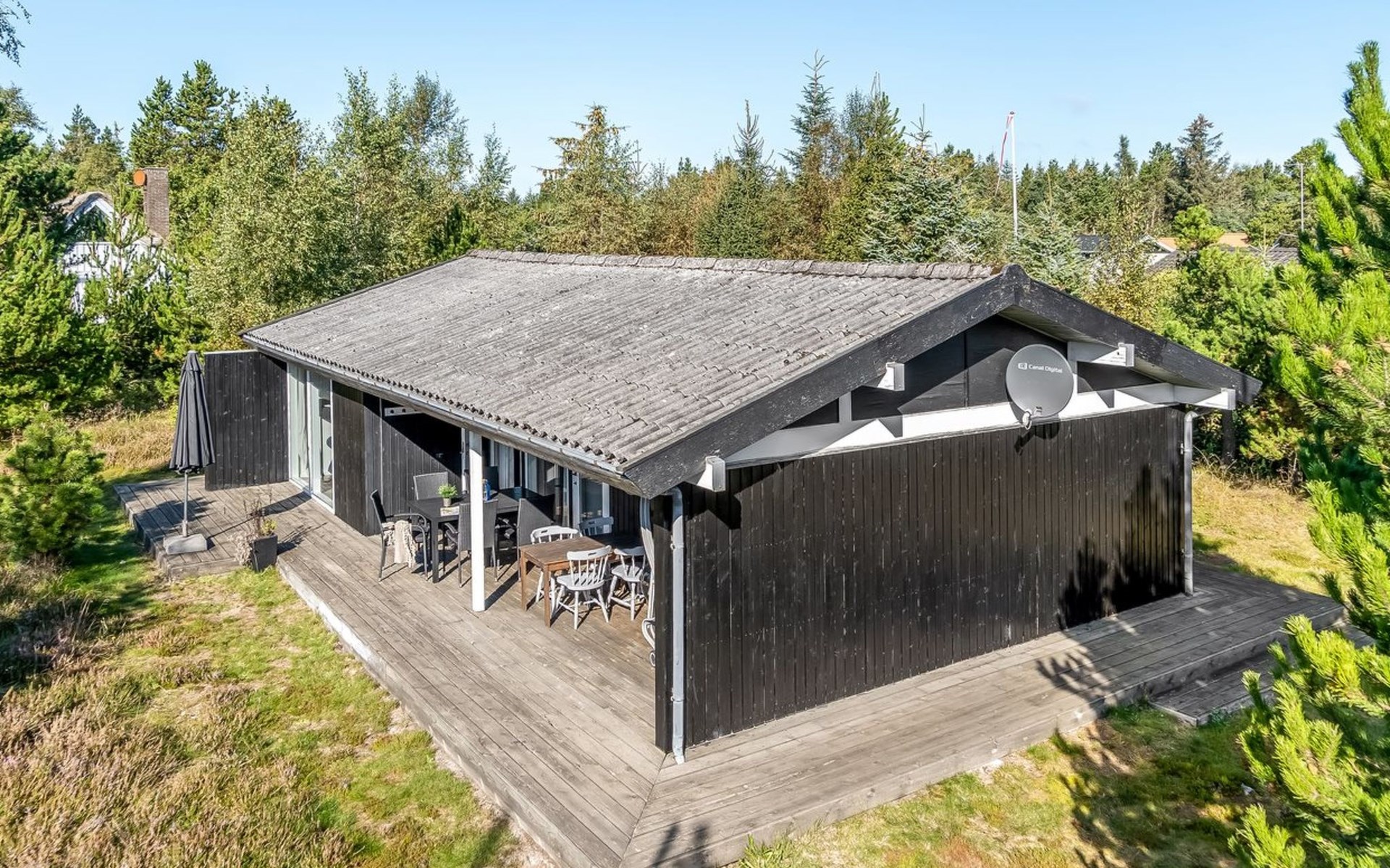 Einfamilienhaus, Baujahr 1977. 200 m vom Meer. Zur Mitbenutzung: Garten. Zur Alleinbenutzung: naturbelassenes Grundstück 1'050 m2, Garten (eingezäunt). Terrasse (34 m2), Kinderspielplatz (Schaukel), Parkplatz beim Haus. Lebensmittelgeschäft 1 km. Der Besitzer akzeptiert keine Jugendgruppen.