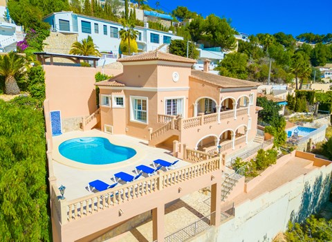 Sehr grosse, sehr moderne, sehr luxuriöse Villa "Sareva", auf 3 Stockwerken. Im Ortsteil Cansalades Park Monte Olimpo, 5 km vom Zentrum von Jávea - El Arenal, 8 km vom Zentrum von Moraira, ruhige, sonnige Lage, 5 km vom Meer, 5 km vom Strand. Zur Alleinbenutzung: grosser, schöner, gepflegter terrassierter Garten Pflanzen und Bäumen, Schwimmbad eckig (11 x 4 m, 140 - 160 cm tief, saisonale Verfügbarkeit: 01.Jan. - 31.Dez.) mit Innentreppe. Aussendusche, Pergola, Terrasse, Gartenmöbel. Im Hause: Sonnenterrasse, Zentralheizung, Klimaanlage. Parkplatz (für 3 Autos) auf dem Grundstück. Supermarkt 2.5 km, Restaurant 1 km, Bar 2.5 km, Bäckerei 2.5 km, Café 2.5 km, Bushaltestelle 5 km, Sandstrand "El Arenal" 5 km, Steinstrand "La Granadella" 10 km. Sporthafen 6 km, Jacht-Hafen 6 km, Golfplatz (9 Loch) 3 km, Surfschule 5 km, Segelschule 5 km. Bitte beachten: Fahrzeug empfohlen. Der Besitzer akzeptiert keine Jugendgruppen.