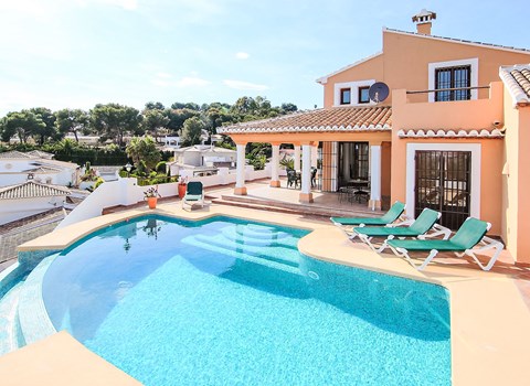 Große und komfortable Villa mit privatem Pool in Moraira, Costa Blanca, Spanien für 4 Personen. Das Haus befindet sich in einem Wohngebiet am Strand und ist nur 1 km vom Strand El Portet entfernt.
