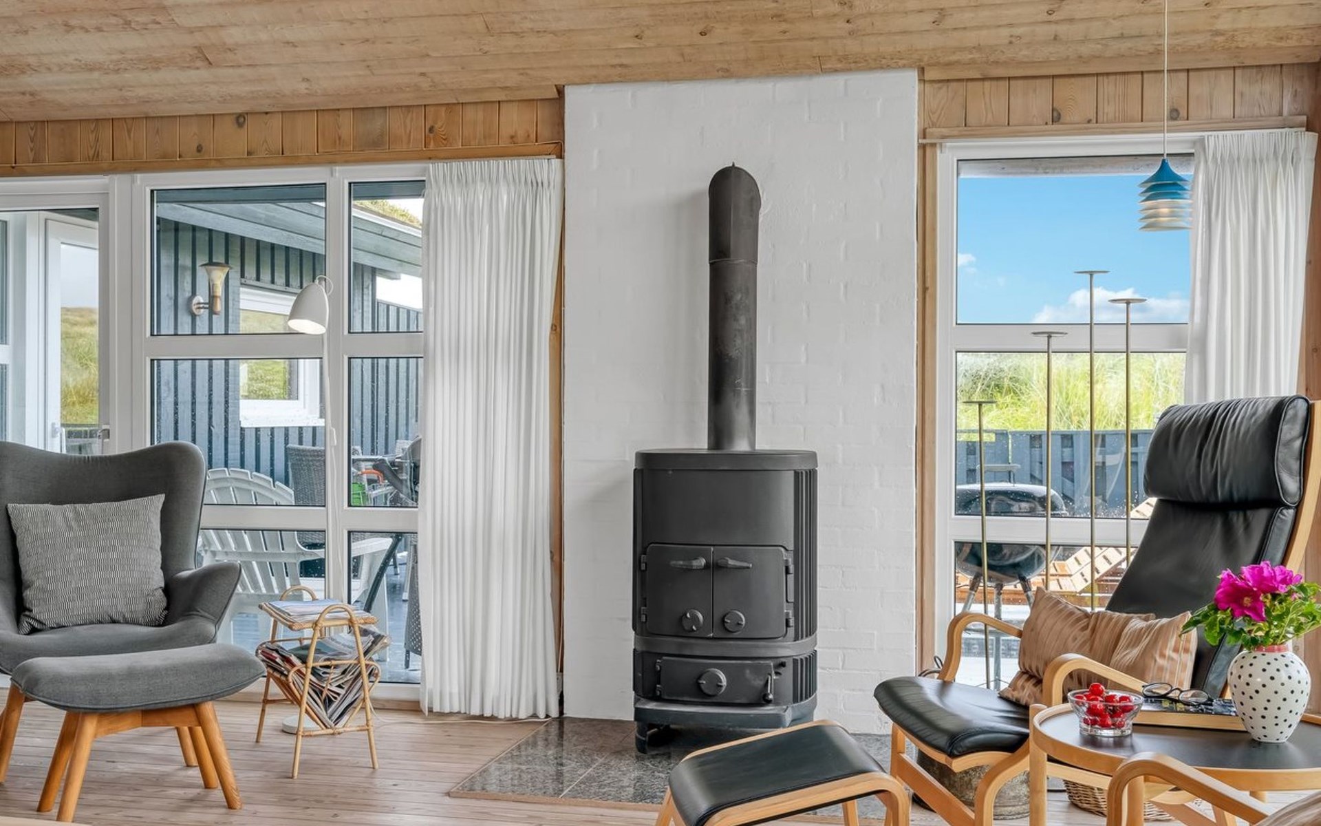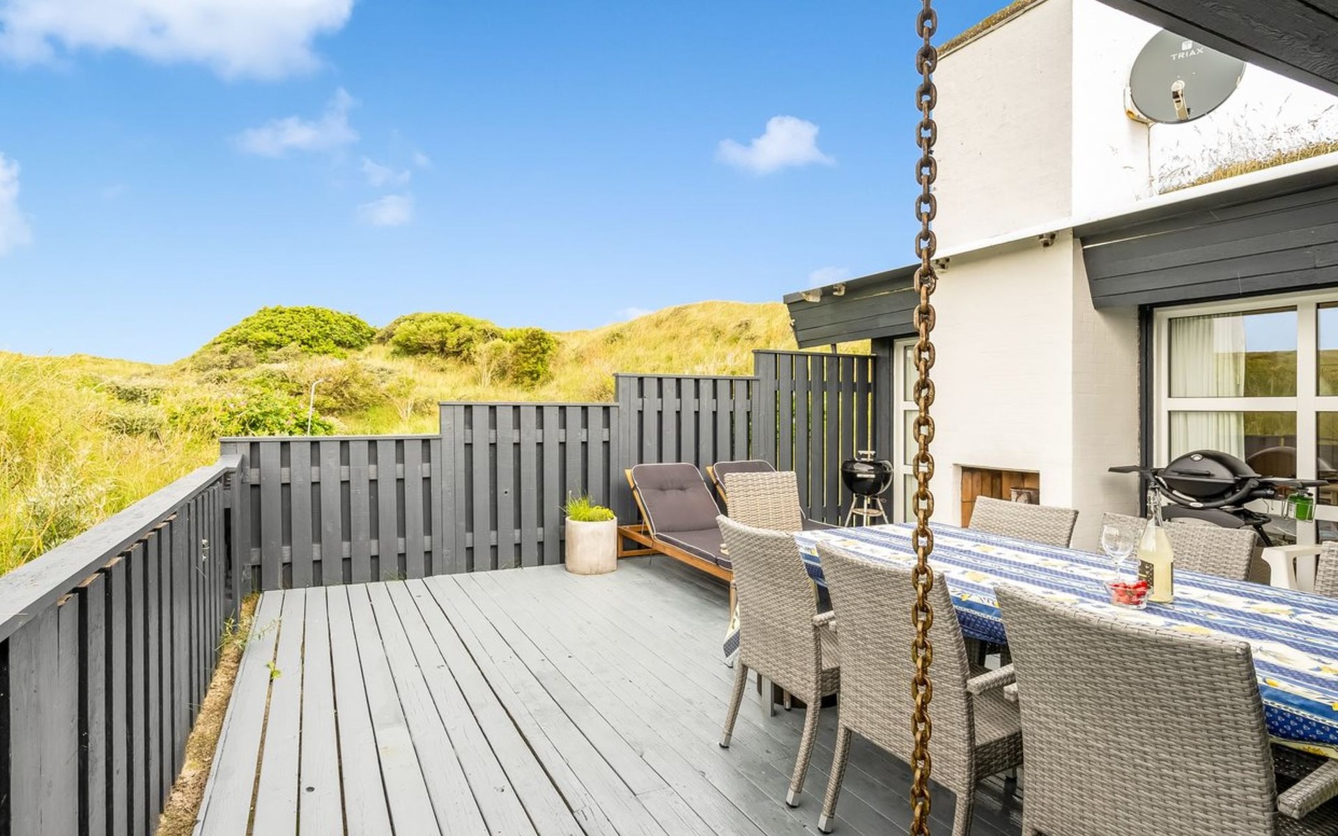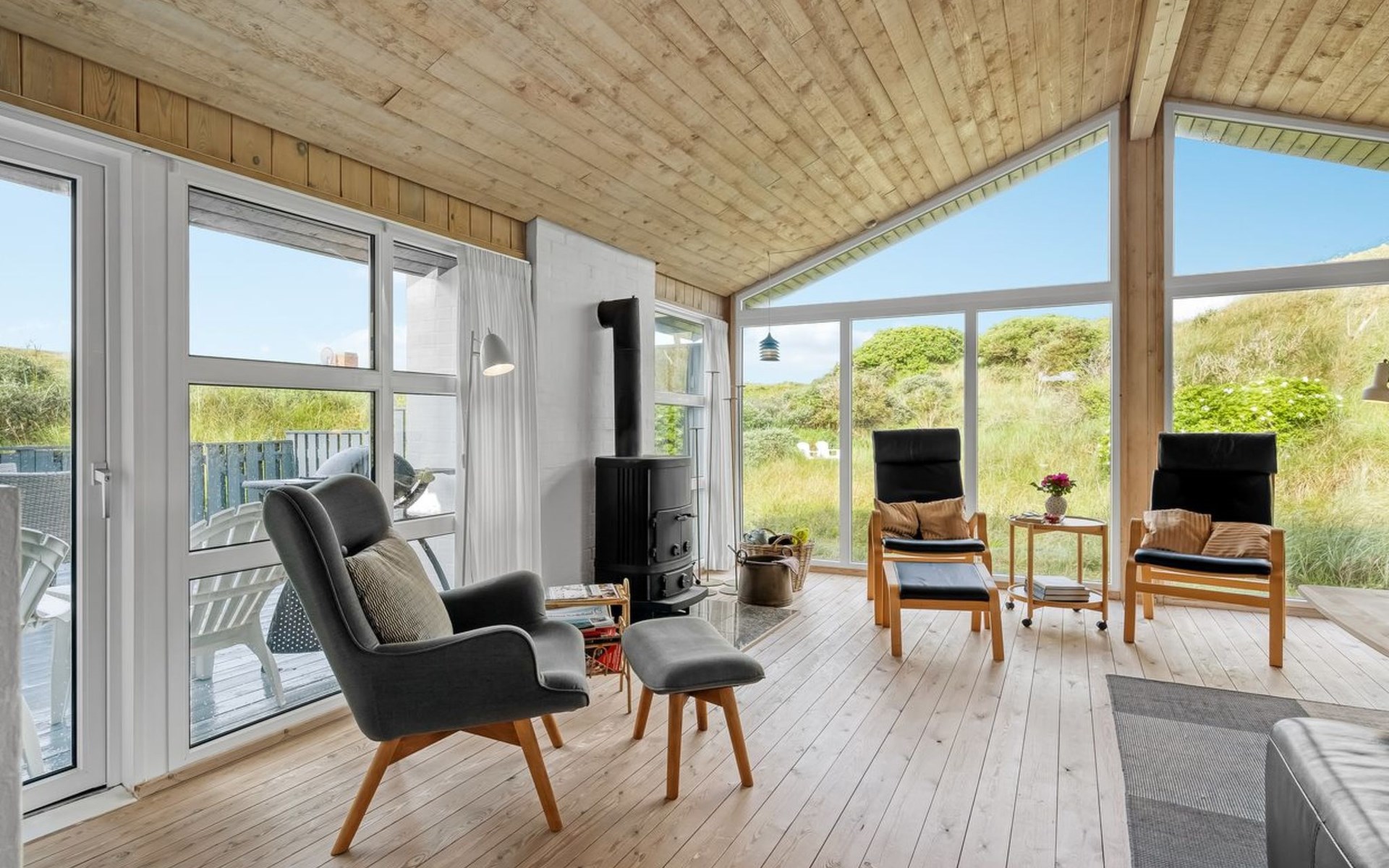 Einfamilienhaus, Baujahr 1985. 260 m vom Meer. Zur Alleinbenutzung: Grundstück 6'145 m2. Terrasse (40 m2), Feuerstelle. Im Hause: Sauna, Waschmaschine. Parkplatz beim Haus. Lebensmittelgeschäft 2 km. Der Besitzer akzeptiert keine Jugendgruppen.