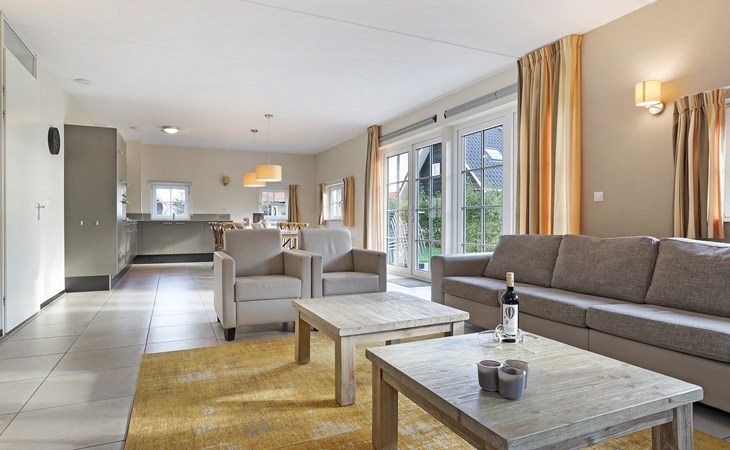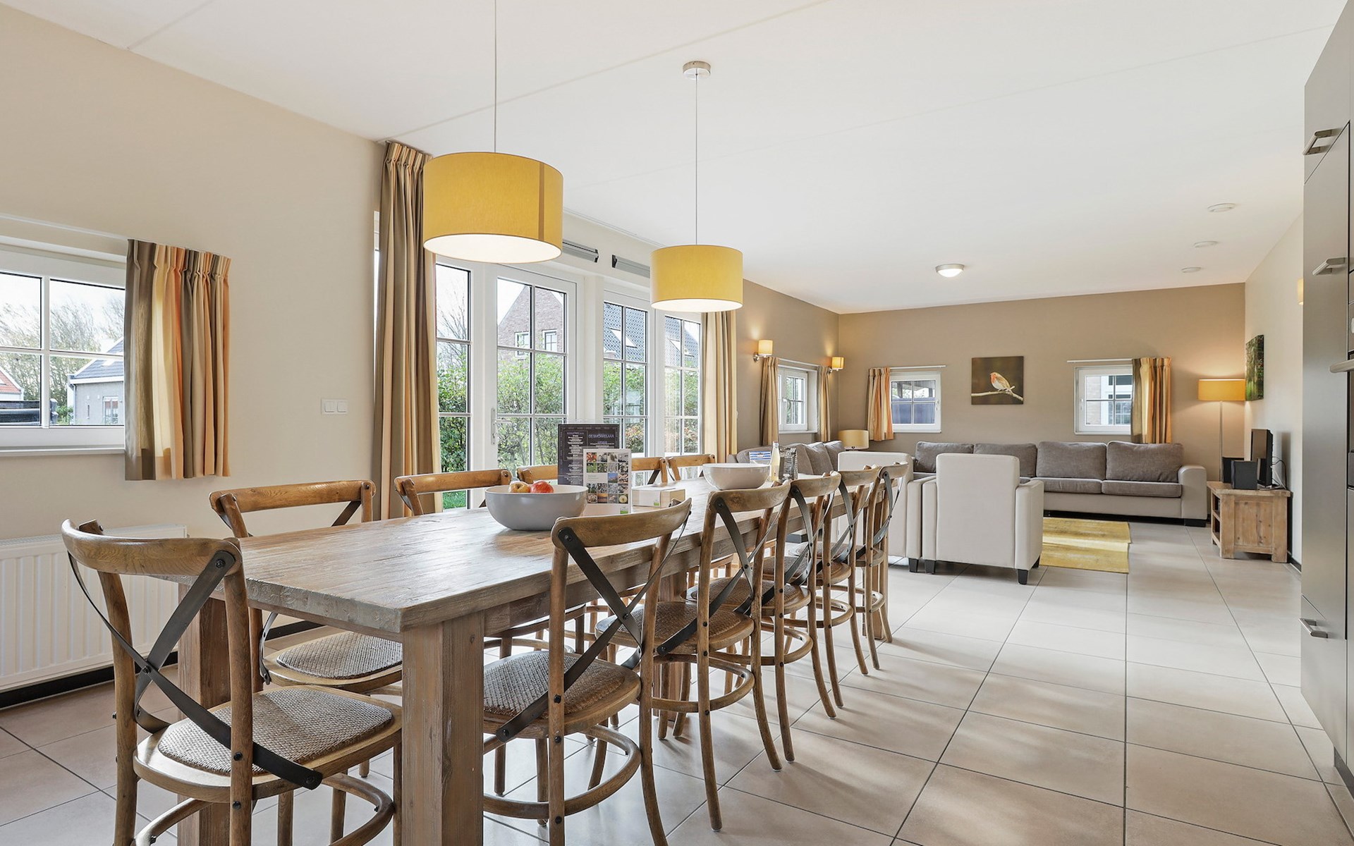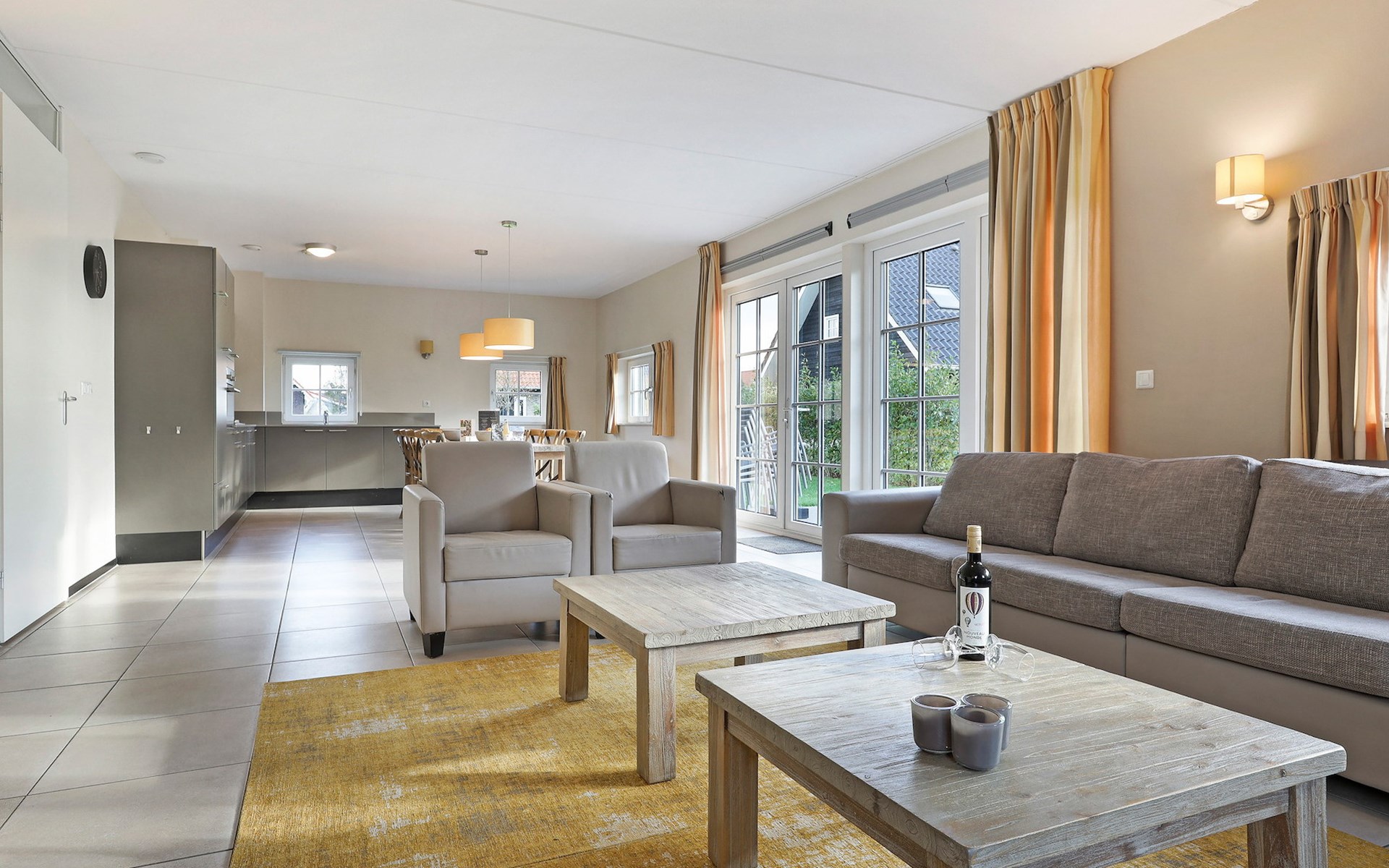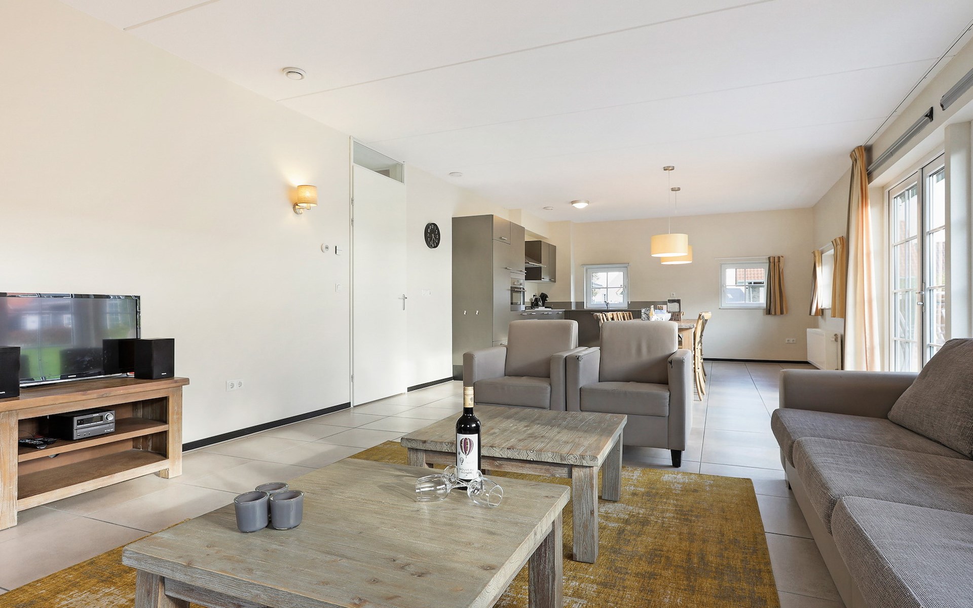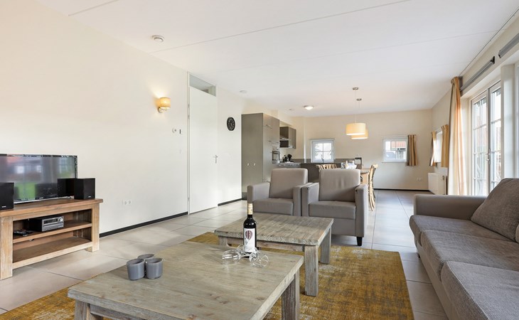 Das großzügige Wohnzimmer verfügt über große Sitzecke mit Fernseher, wo Sie es sich mit der ganzen Gesellschaft gemütlich machen können. Außerdem gibt es einen gemütlichen Essbereich. Die moderne, offene Küche ist komplett ausgestattet und verfügt über einen Kombi-Backofen, eine Senseo-Maschine, eine Geschirrspülmaschine und eine 6-Flammen-Herdplatte.