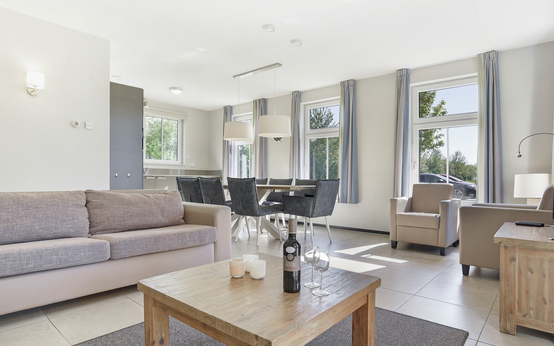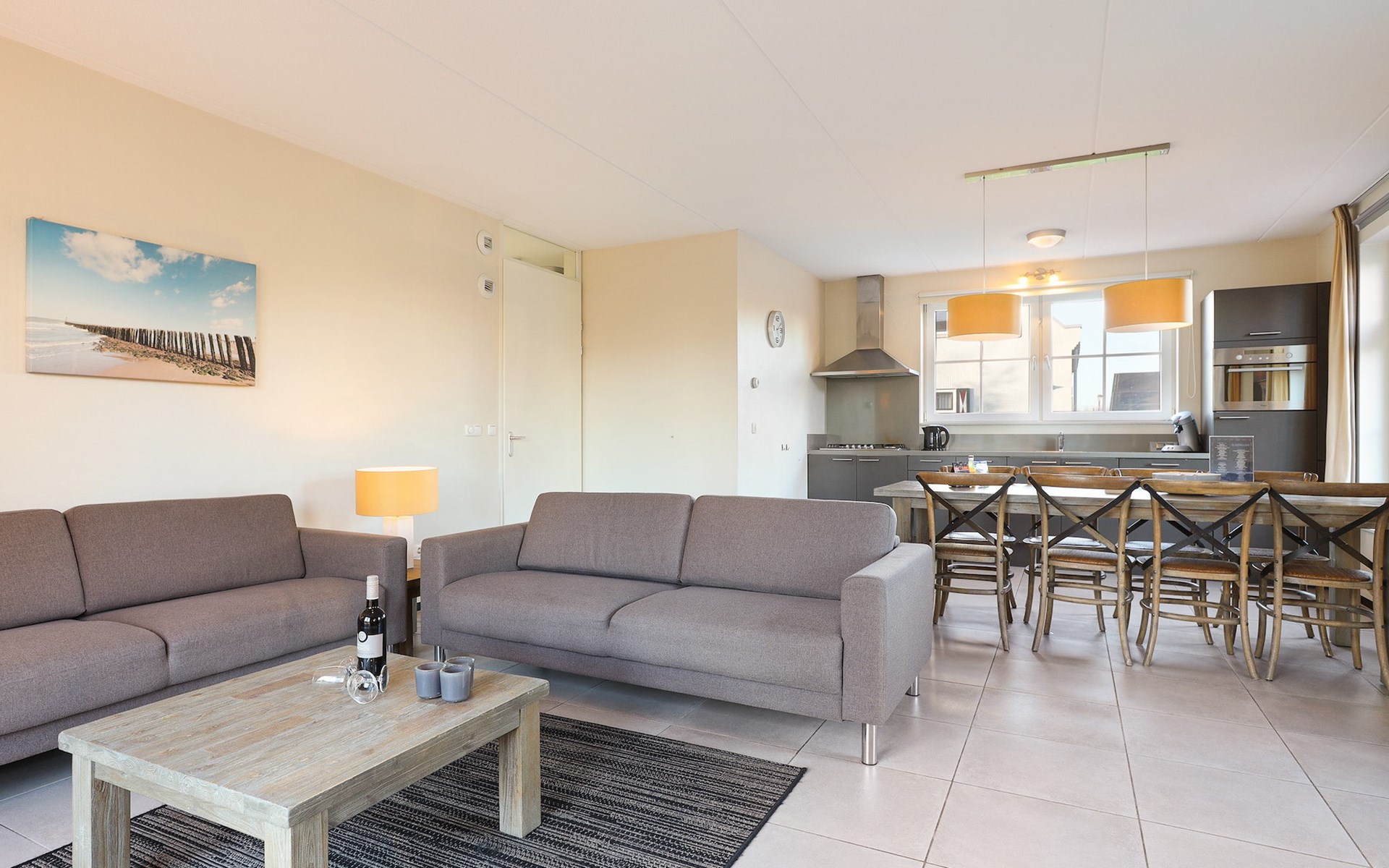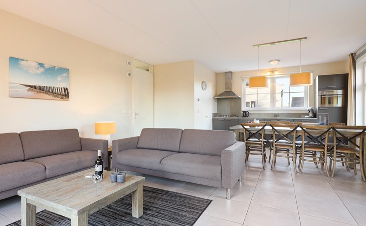 Das Wohnzimmer ist mit einer gemütlichen Sitzecke und einem Fernseher ausgestattet. Außerdem gibt es einen Essbereich und eine moderne Küche. Die offene Küche ist komplett ausgestattet und verfügt über einen Kombi-Backofen, eine Senseo-Kaffeemaschine, eine Geschirrspülmaschine und einen Kühlschrank mit Gefrierfach. In unserem Resort an der seeländischen Küste wird es Ihnen an nichts fehlen!