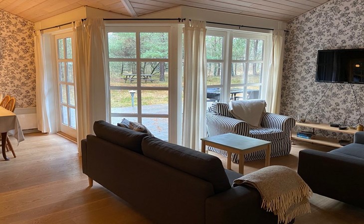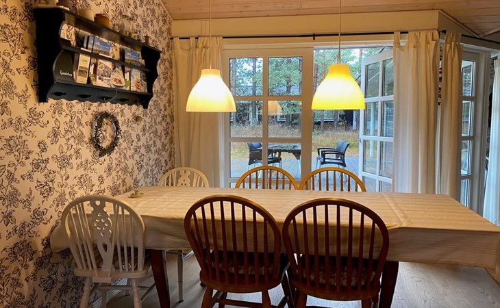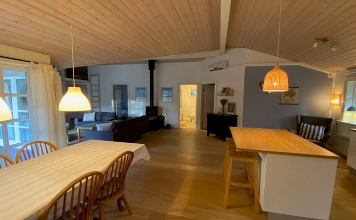 Einfamilienhaus, Baujahr 2009. 1 km vom Meer. Zur Alleinbenutzung: naturbelassenes Grundstück 1'496 m2. Grill. Im Hause: Waschmaschine, Wäschetrockner. Parkplatz beim Haus. Carport. Lebensmittelgeschäft 3 km. Golfplatz 1 km. Der Besitzer akzeptiert keine Jugendgruppen.