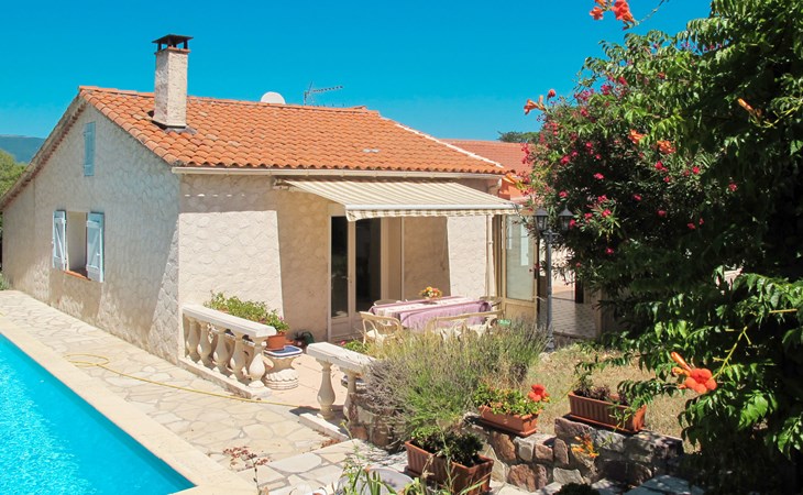 Haus "Bleue". Im Ort, 300 m vom Zentrum von St. Paul-en-Forêt, 25 km vom Zentrum von Fréjus, in einem Wohnquartier, 25 km vom Meer. Zur Alleinbenutzung: Grundstück 1'000 m2 (eingezäunt), Schwimmbad (8 x 4 m, 110 - 200 cm tief, saisonale Verfügbarkeit: 01.Jan. - 31.Dez.) mit Alarmanlage. Aussendusche, Parkplatz (für 2 Autos) auf dem Grundstück. Supermarkt 10 km, Restaurant, Bar, Café 300 m, Bushaltestelle 400 m, Bahnstation "Saint Raphael Valescure" 2700 km, Sandstrand "Fréjus" 25 km. Golfplatz (18 Loch) 7 km. Nahe gelegene Sehenswürdigkeiten: Gorges du Verdon, Golf Les Terres Blanches. Bekannte Seen in der Umgebung sind gut erreichbar: Lac de Sainte Croix, Lac de Saint Cassien. Wandergebiete: Les Adrets de l'Esterel, Gorges du Blavet, Gorges du Verdon. Der Besitzer akzeptiert keine Jugendgruppen.