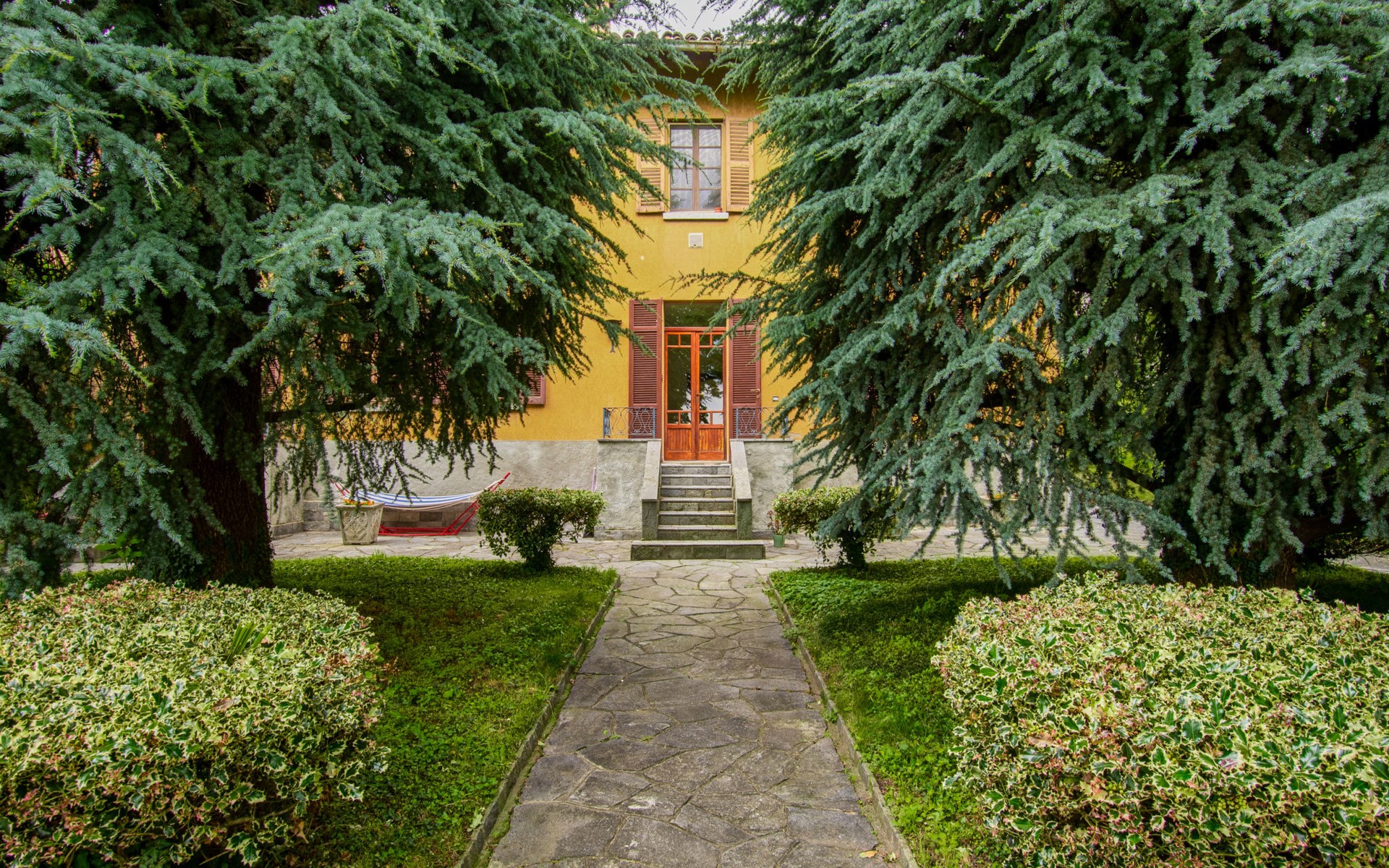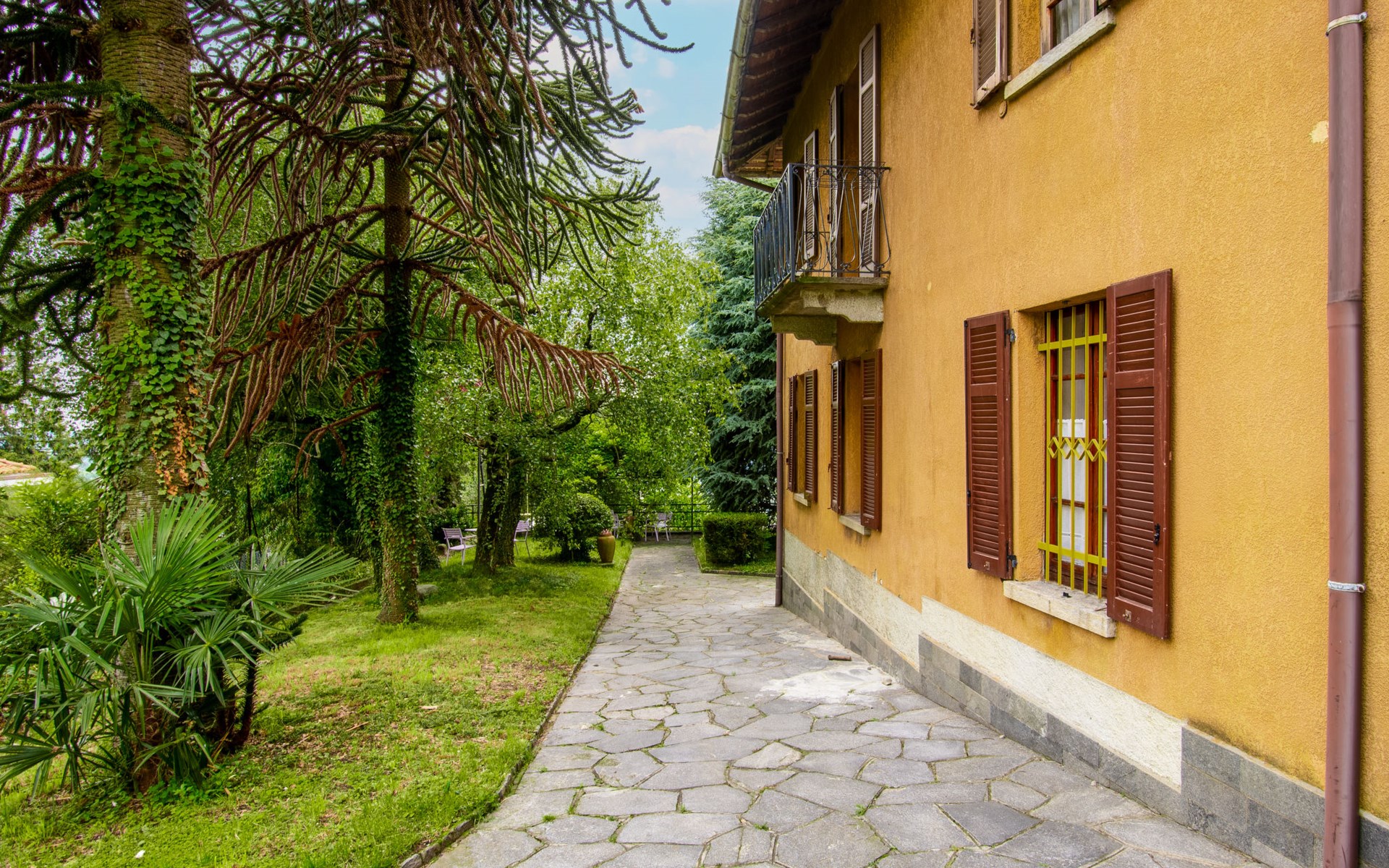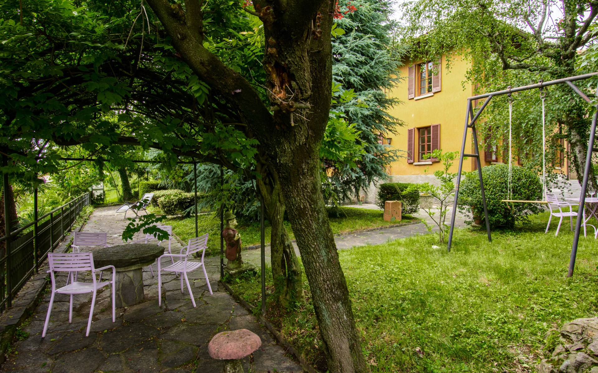 Tavernerio 6 km von Como: Rustikales Reihenhaus "Clotilde", einseitig angebaut. 2 Wohnungen im Ferienhaus. Oberhalb von Tavernerio, im Ortsteil Ponzate, 6 km vom Zentrum von Como, 27 km vom Zentrum von Lecco, 56 km vom Zentrum von Milano, ruhige, erhöhte Lage in einem Wohnquartier, 6 km vom See. Zur Alleinbenutzung: Grundstück 1'000 m2 (eingezäunt) mit Rasen und Bäumen, Hof, Naturteich. (Schaukel). Heizung nur verfügbar von 15.Okt. - 15.Apr.. Parkplatz auf dem Grundstück. Lebensmittelgeschäft 100 m, Supermarkt 4 km, Restaurant, Bar 100 m, Bushaltestelle "C43 Como" 100 m, Bahnstation "Como San Giovanni" 6 km, Sandstrand "Villa Olmo-Como" 8 km, Freibad 8 km, Hallenbad 11 km. Sporthafen 6 km, Jacht-Hafen 6 km, Golfplatz (18 Loch) 7 km, Wanderwege ab Haus 500 m, Bergeisenbahn 5 km. Nahe gelegene Sehenswürdigkeiten: Tomba di Alessandro Volta, Como, Brunate, Cernobbio, Milano. Bekannte Seen in der Umgebung sind gut erreichbar: Lago di Como. Wandergebiete: Il Sassone-Ponzate, Rocolo Civiglio, Alpe del Vicerè. Bitte beachten: Fahrzeug empfohlen. Das 1. Stockwerk ist geschlossen und nicht bewohnt.