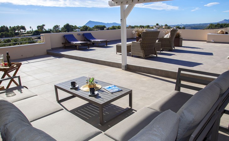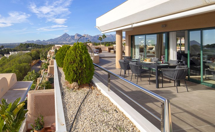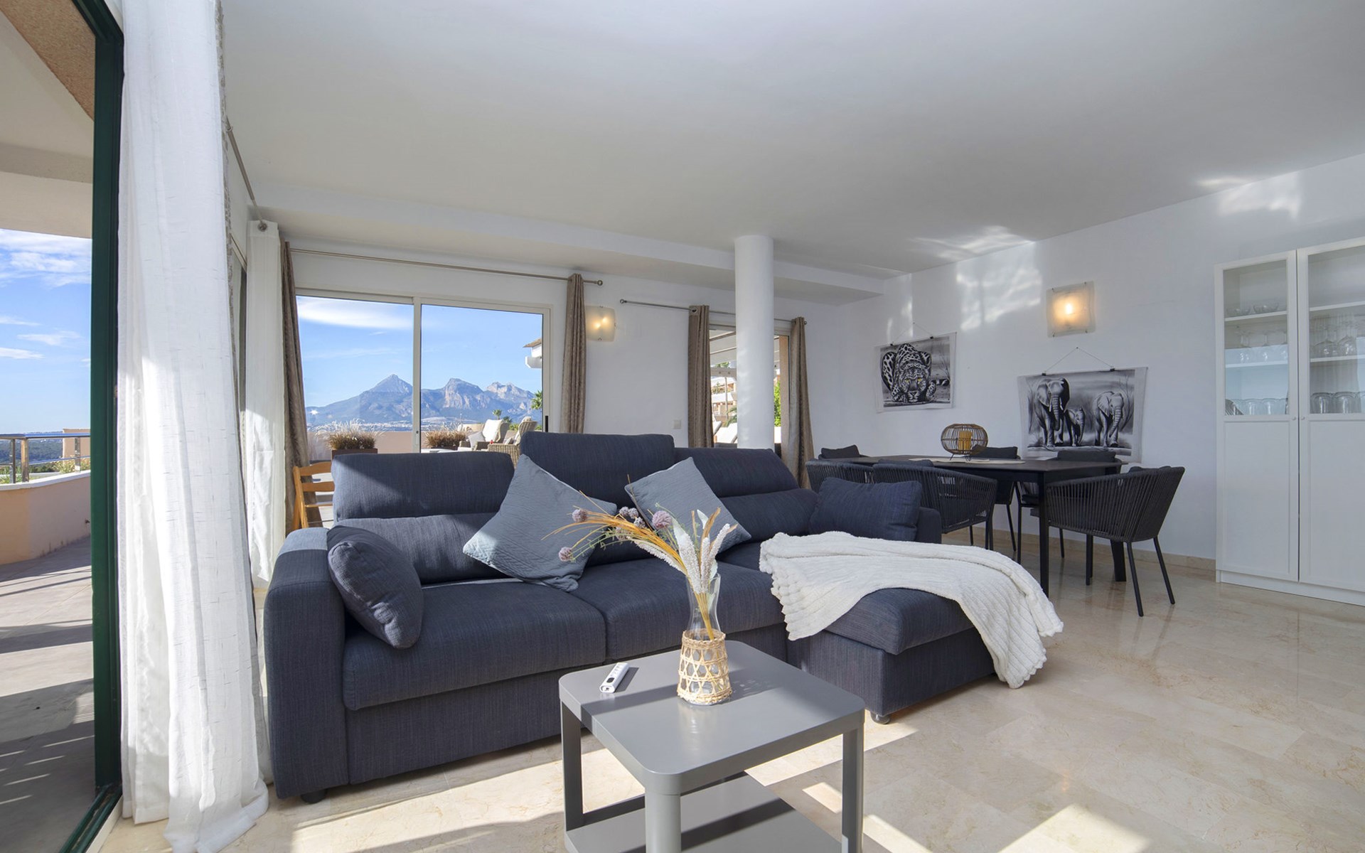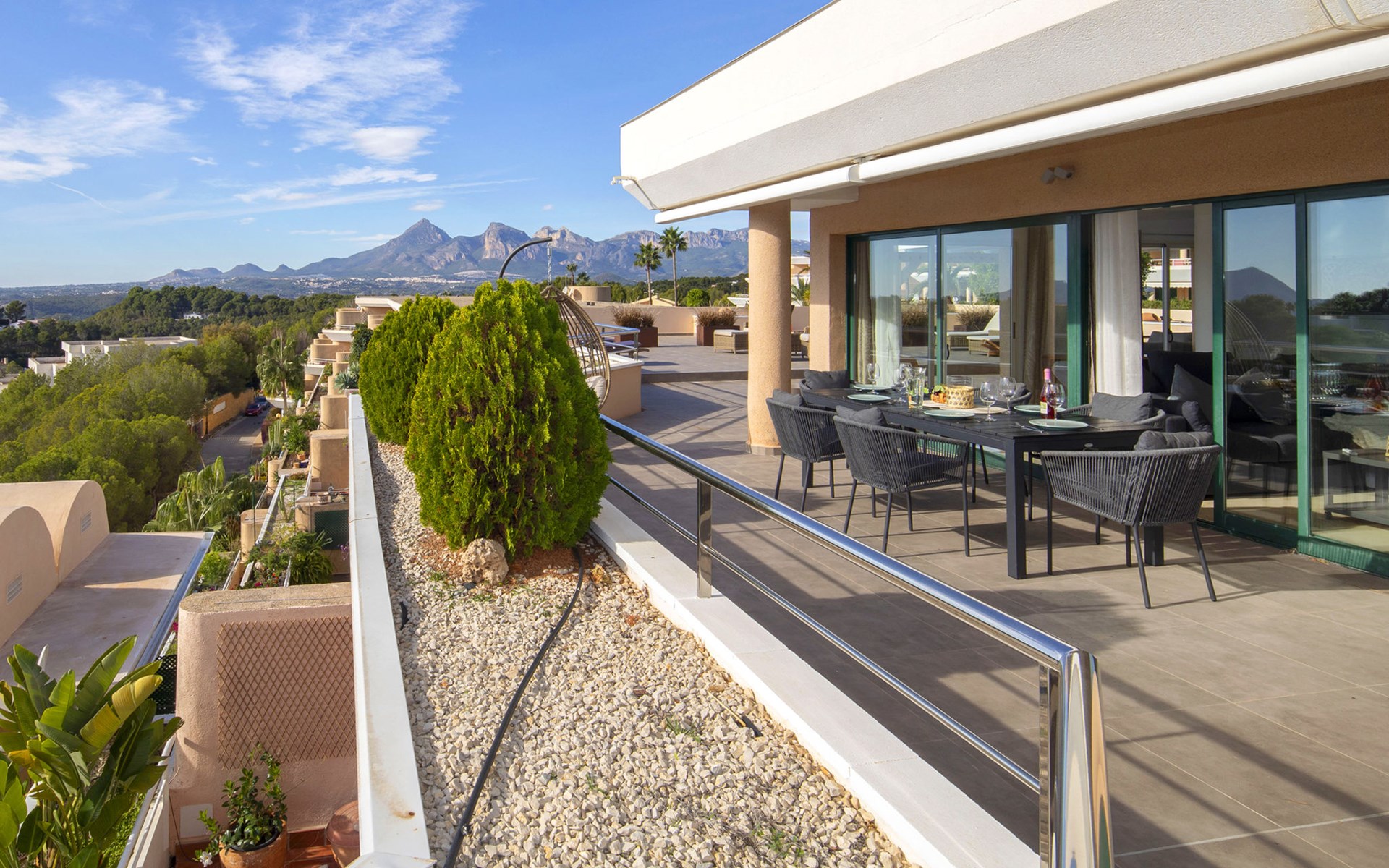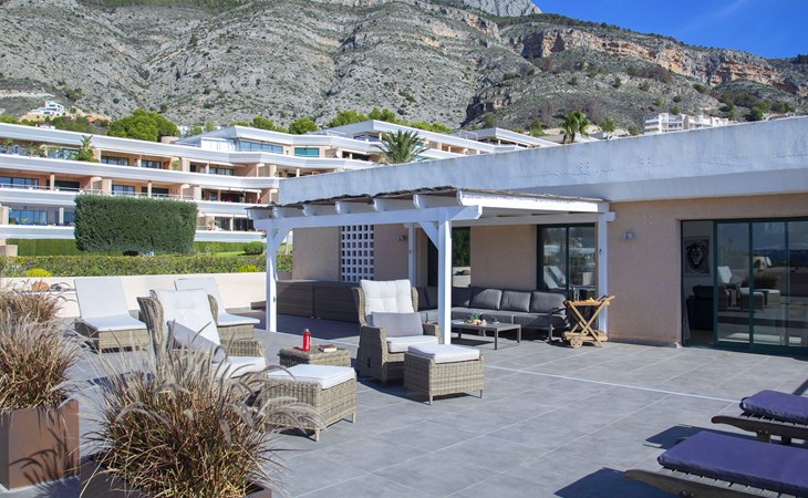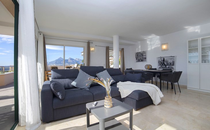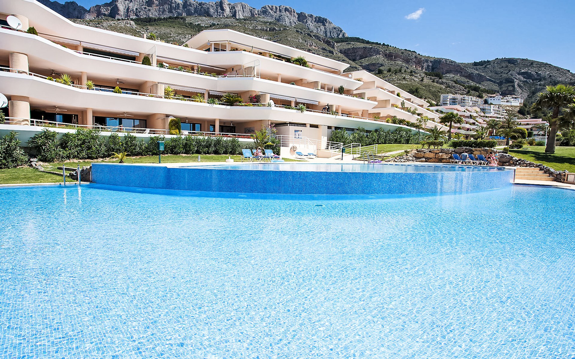 Sierra de Altea: Schönes Appartementhaus "Altea La Nova". 2.2 km vom Zentrum von Altea la Vieja, 6 km vom Zentrum von Altea, sonnige, erhöhte Lage, verkehrsberuhigte Zone, 3.5 km vom Meer, 3.5 km vom Strand. Zur Mitbenutzung: Grundstück (eingezäunt), Garten mit Rasen, 2 Schwimmbäder (saisonale Verfügbarkeit: 01.Mai. - 30.Sep.) mit Innentreppe. Kinderbecken, Aussendusche, Terrasse. Im Hause: Empfang, Fahrstuhl. Einkaufsgeschäft 2.2 km, Lebensmittelgeschäft 2.2 km, Supermarkt 2.2 km, Restaurant 3 km, Bar 2.2 km, Bäckerei 2.2 km, Café 2.2 km, Internet-Café 2.2 km, Fußgängerzone 2.2 km, Fahrradverleih 2.2 km, Biergarten 2.2 km, Zentrum zu Fuss in 33 Minuten erreichbar, Bushaltestelle 1.8 km, Sandstrand "Playa Puerto Blanco -Calpe-" 12 km, Badebucht 5 km. Sporthafen 7 km, Jacht-Hafen 7 km, Golfplatz (9 Loch) 1 km, Surfschule 7 km, Segelschule 7 km. Nahe gelegene Sehenswürdigkeiten: Aqualandia 20 km, Mundomar 20 km, Terra Mitica 25 km, Terra Natura 25 km, Fuentes del Algar 22 km, Guadalest 25 km. Wandergebiete: Peñon de Ifach 15 km. Der Besitzer akzeptiert keine Jugendgruppen.