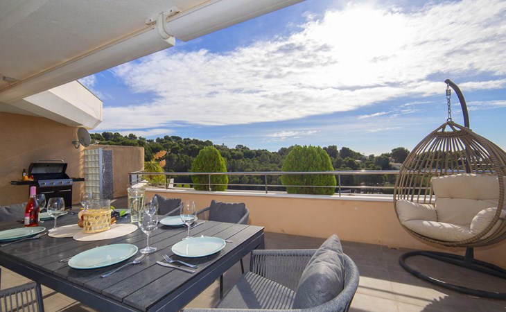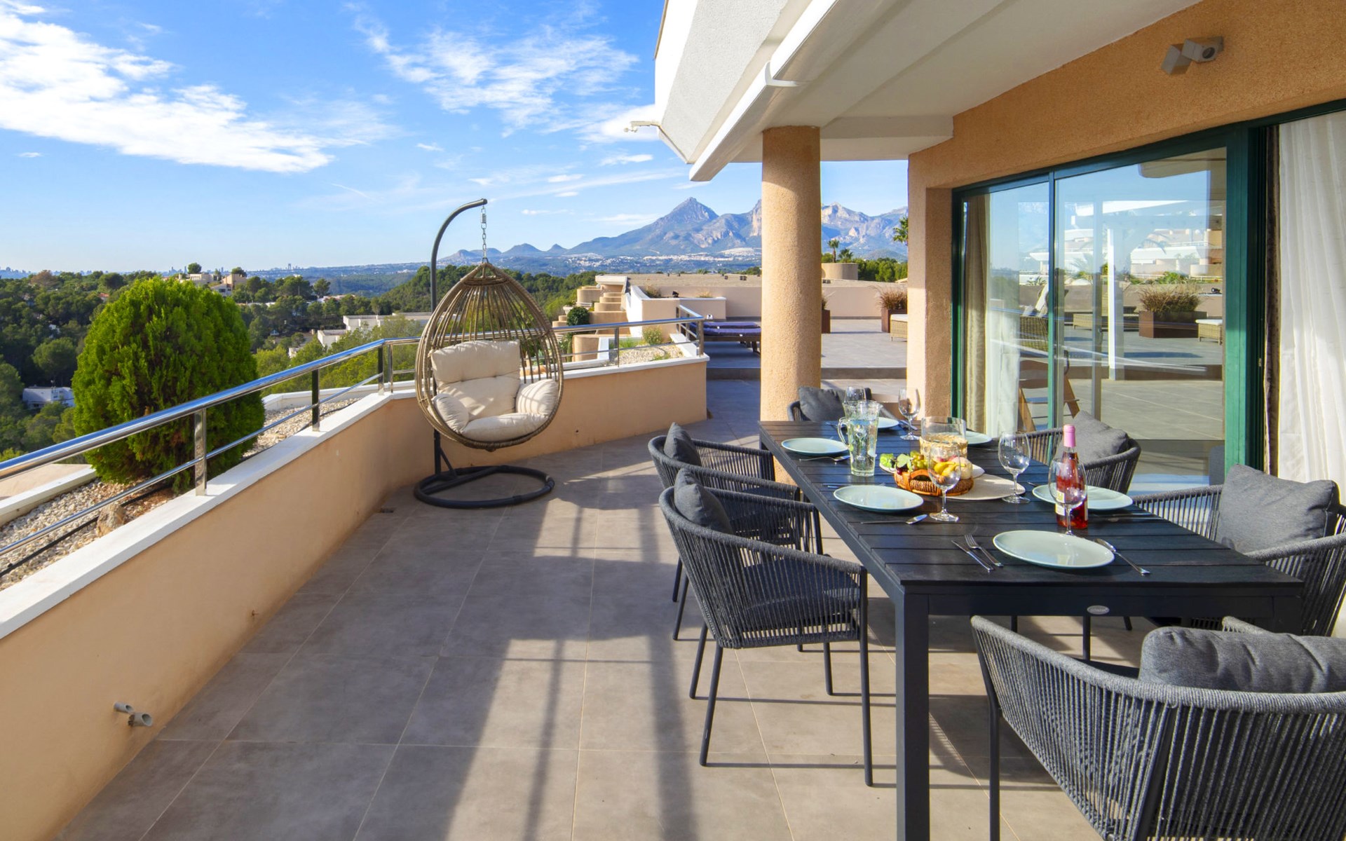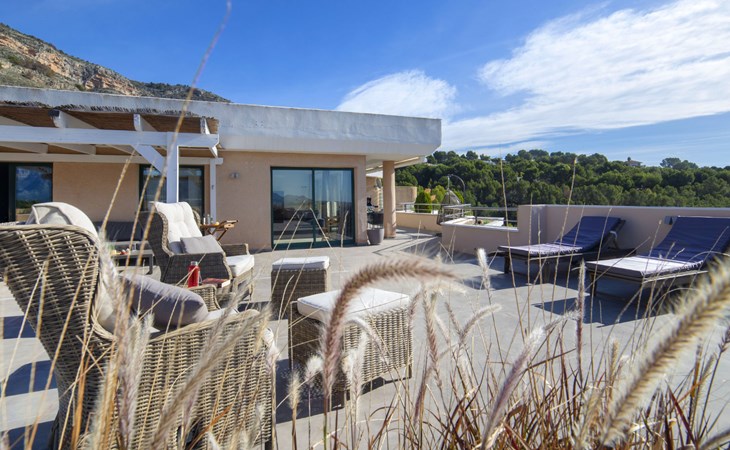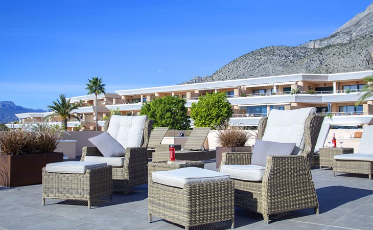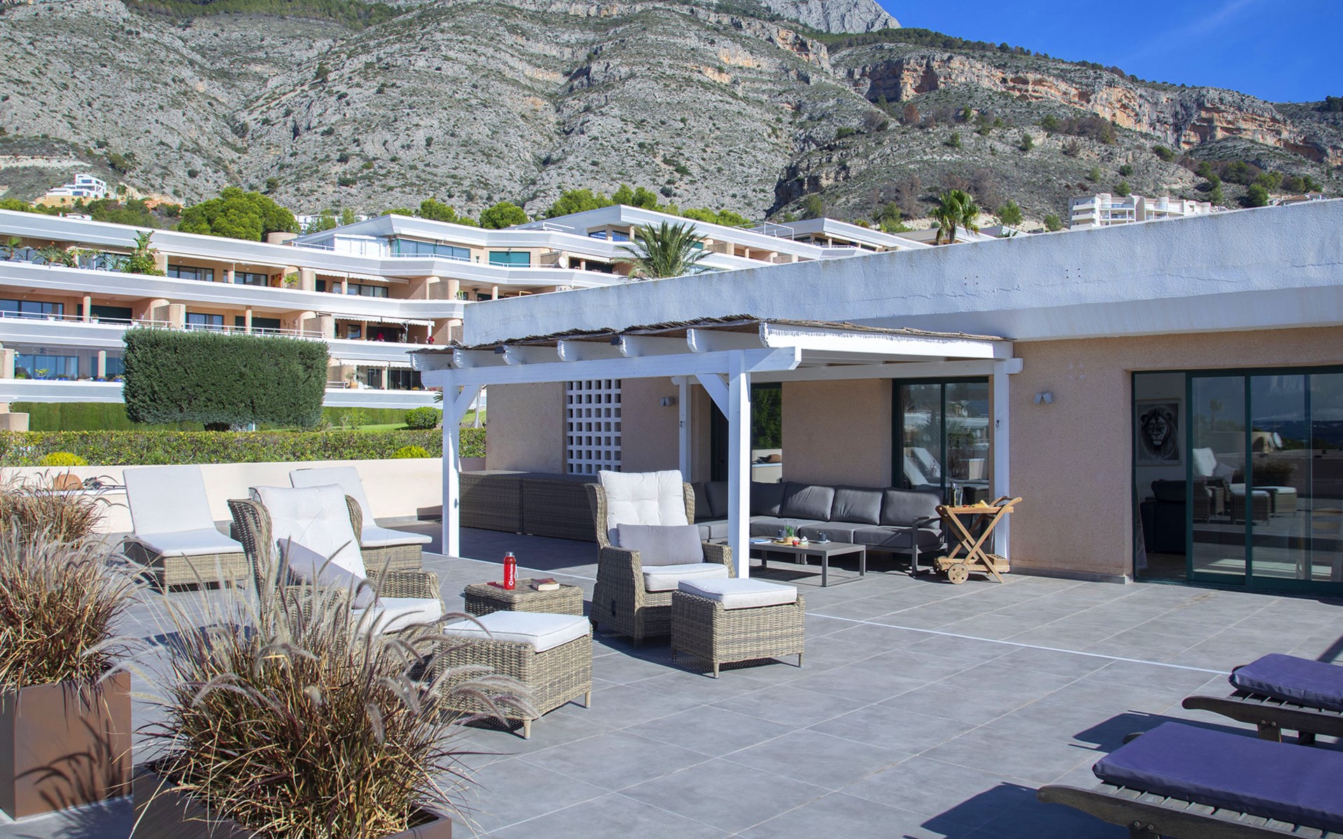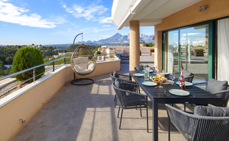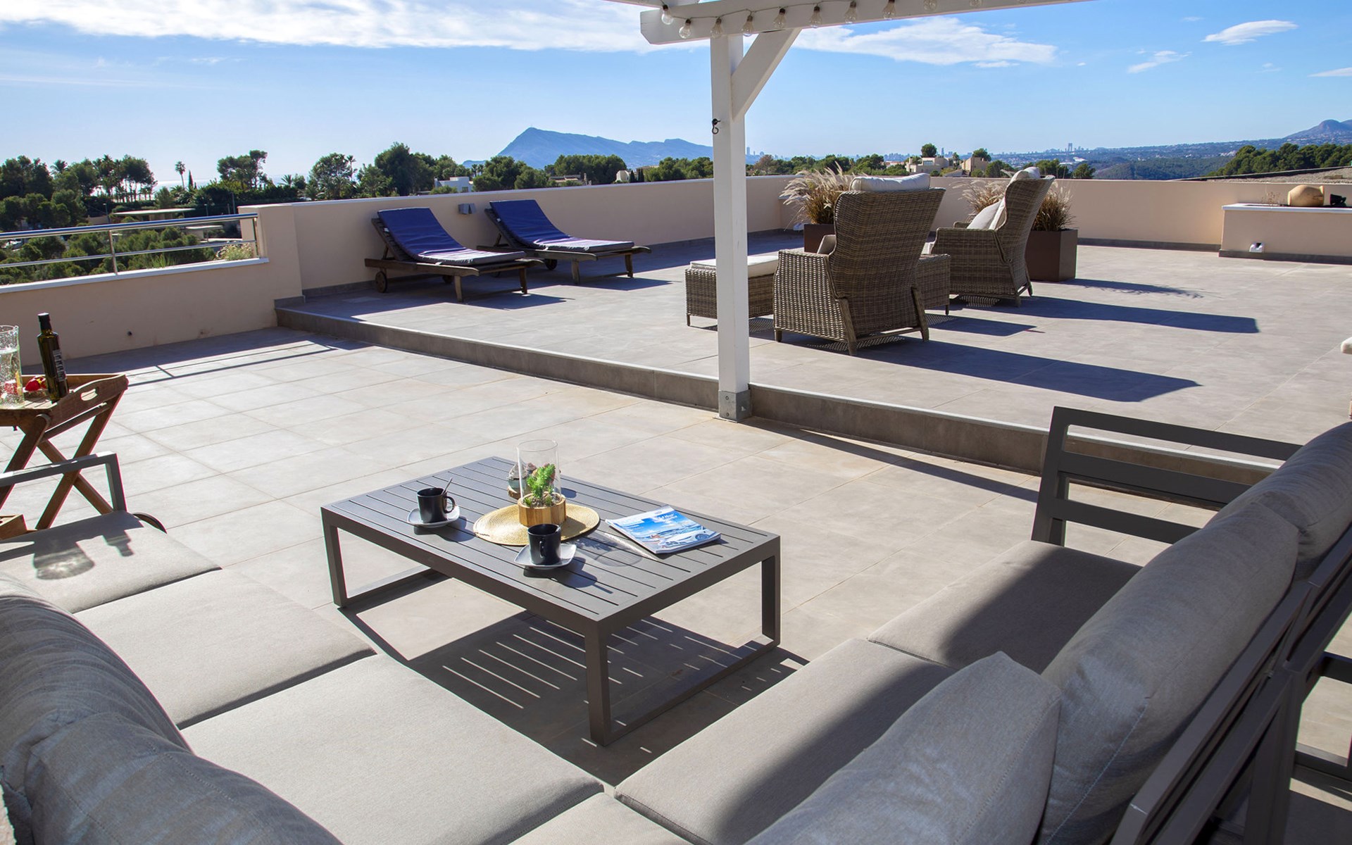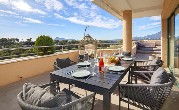 Sierra de Altea: Schönes Appartementhaus "Altea La Nova". 2.2 km vom Zentrum von Altea la Vieja, 6 km vom Zentrum von Altea, sonnige, erhöhte Lage, verkehrsberuhigte Zone, 3.5 km vom Meer, 3.5 km vom Strand. Zur Mitbenutzung: Grundstück (eingezäunt), Garten mit Rasen, 2 Schwimmbäder (saisonale Verfügbarkeit: 01.Mai. - 30.Sep.) mit Innentreppe. Kinderbecken, Aussendusche, Terrasse. Im Hause: Empfang, Fahrstuhl. Einkaufsgeschäft 2.2 km, Lebensmittelgeschäft 2.2 km, Supermarkt 2.2 km, Restaurant 3 km, Bar 2.2 km, Bäckerei 2.2 km, Café 2.2 km, Internet-Café 2.2 km, Fußgängerzone 2.2 km, Fahrradverleih 2.2 km, Biergarten 2.2 km, Zentrum zu Fuss in 33 Minuten erreichbar, Bushaltestelle 1.8 km, Sandstrand "Playa Puerto Blanco -Calpe-" 12 km, Badebucht 5 km. Sporthafen 7 km, Jacht-Hafen 7 km, Golfplatz (9 Loch) 1 km, Surfschule 7 km, Segelschule 7 km. Nahe gelegene Sehenswürdigkeiten: Aqualandia 20 km, Mundomar 20 km, Terra Mitica 25 km, Terra Natura 25 km, Fuentes del Algar 22 km, Guadalest 25 km. Wandergebiete: Peñon de Ifach 15 km. Der Besitzer akzeptiert keine Jugendgruppen.