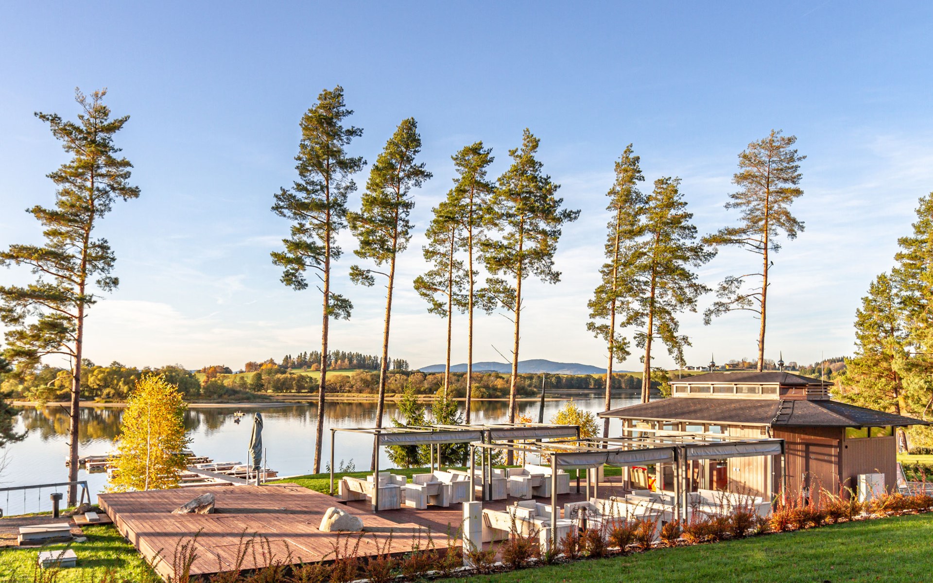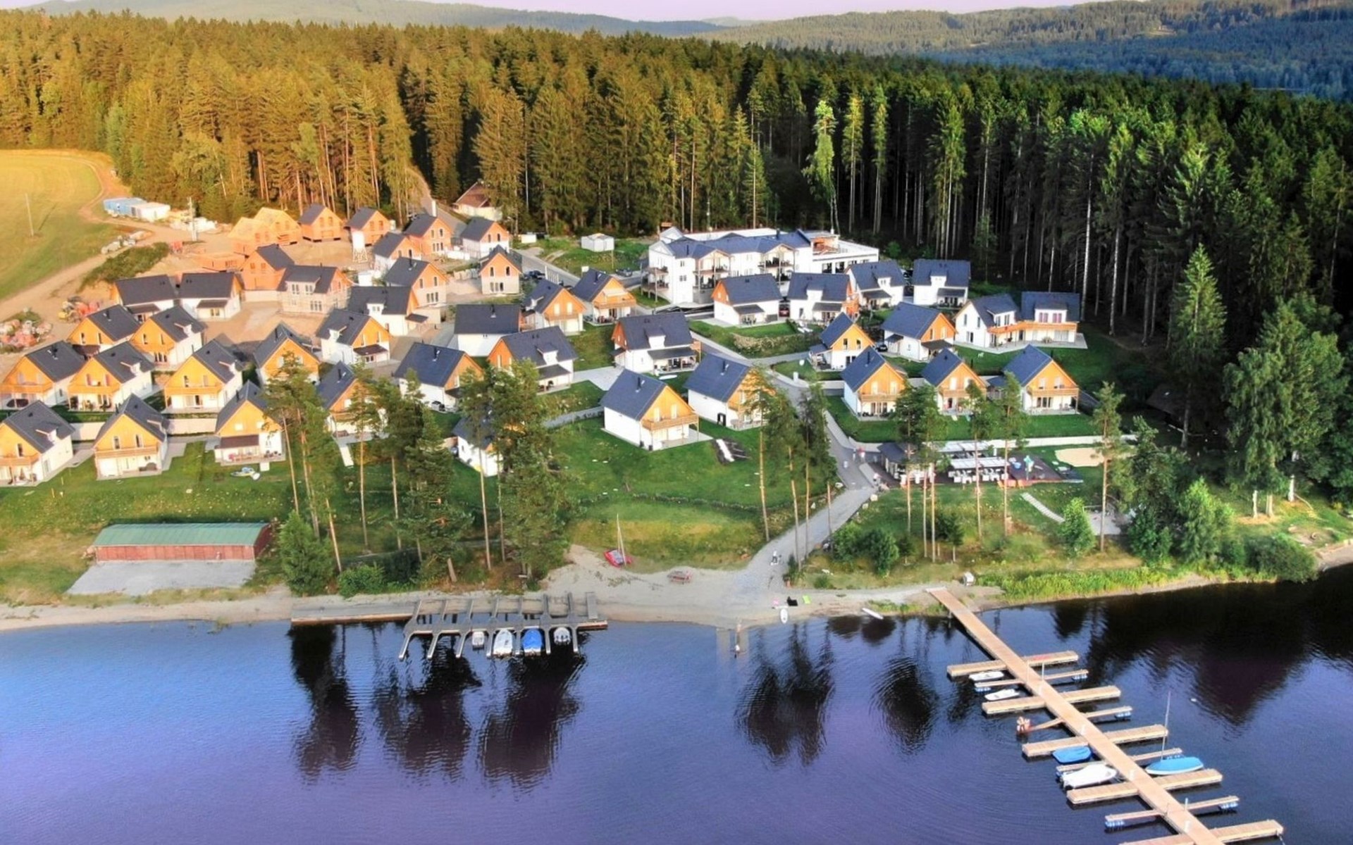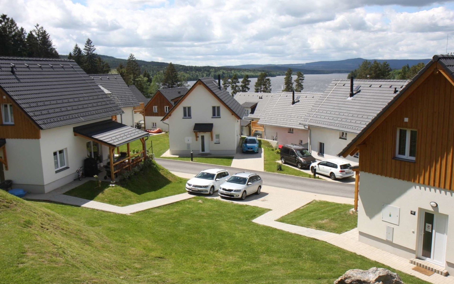 Kinderfreundliche, moderne Ferienanlage "Lakeside Village". 45 Häuser im Ferienresort. 10 Wohnungen in der Residenz. Ausserhalb des Ortes, ruhige, sonnige Lage, direkt am See. Zur Mitbenutzung: Grundstück. In der Anlage: Empfang, Bar, Bistro, Sauna, Fitnessraum, Massage, Sprudelbad (alles extra), Kiosk, Fahrräder vorhanden Fahrradverleih. Zur Verfügung: Boot (extra). Brötchenservice und Frühstück auf Anfrage. Im Winter bitte Schneeketten mitbringen. Parkplatz beim Haus. Bushaltestelle"Frymburk Vřesná, rozcestí" 3.5 km, Badesee "Lipno". Reitstall 500 m, Eisfeld 11 km. Nahe gelegene Sehenswürdigkeiten: Aquaworld, Marina Lipno, Bobová dráha, Lanový park, Bikepark (Lipno) 15 km, Český Krumlov (UNESCO) 35 km. Bekannte Skigebiete sind gut erreichbar: Frymburk 5 km, Kramolin 15 km, Sternstein 25 km, Hochficht, Sterngartl 40 km. Wandergebiete: Stezka korunami stromů (Lipno) 15 km. Bitte beachten: Babyausstattung auf Anfrage (extra). Objekt geeignet für 5 Erwachsene + 1 Kind. Angeln (mit Bewilligung), private Bootsanlegestelle. Das Foto ist nur ein Hausbeispiel. Alle Häuser/Wohnungen sind individuell eingerichtet.