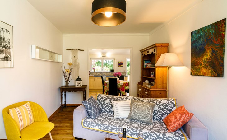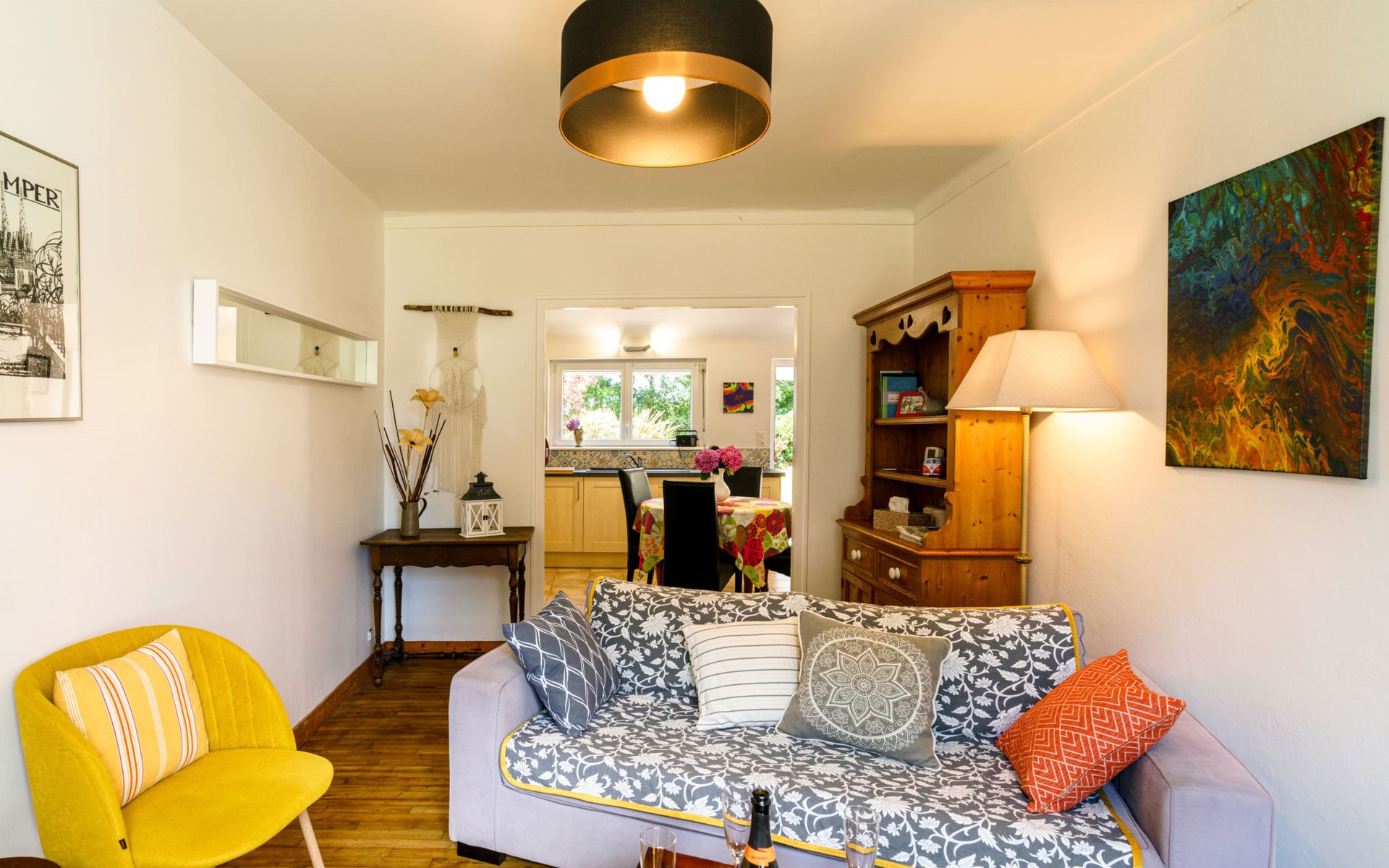 Reihenhaus "Ty Naïg". Am Ortsrand, 1.8 km vom Zentrum von Pouldreuzic, 3.5 km vom Meer, 3.5 km vom Strand, im Grünen. Zur Alleinbenutzung: Grundstück 800 m2, Garten (nicht eingezäunt) mit Rasen und Pflanzen, Parkplatz (für 2 Autos) auf dem Grundstück, Einzelgarage. Einkaufsgeschäft 1.8 km, Restaurant 1.8 km, Bushaltestelle 2 km, Sandstrand "Plage Stang Ar Liou" 3.5 km. Surfschule 4 km. Nahe gelegene Sehenswürdigkeiten: Audierne 21 km, Pont l'Abbé 15 km, Pont-Croix 18 km, Pointe du Raz 35 km, Quimper 27 km, Douarnenez 19 km. Wandergebiete: GR34, Baie d'Audierne, Cap Sizun.