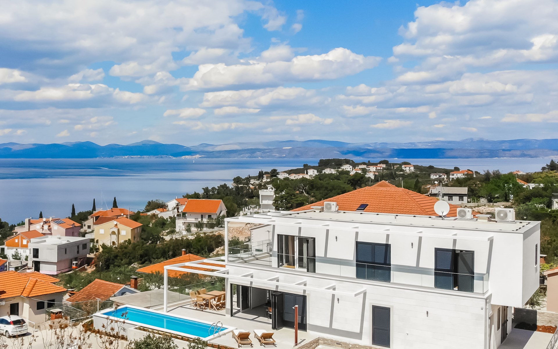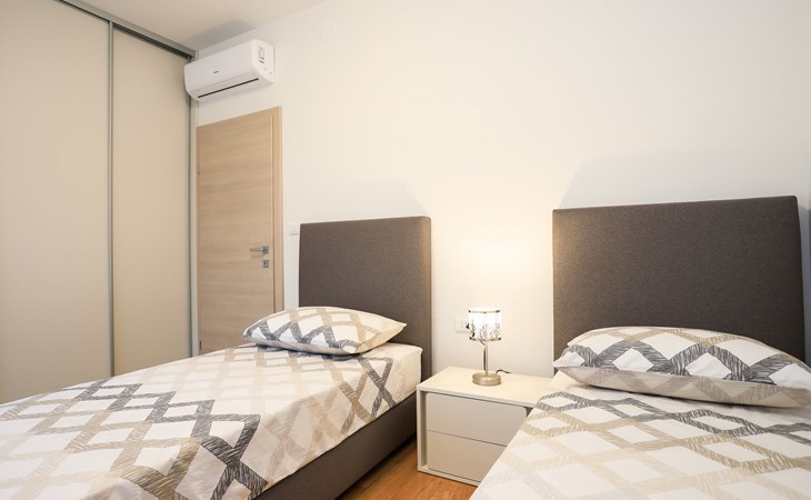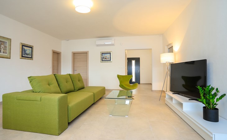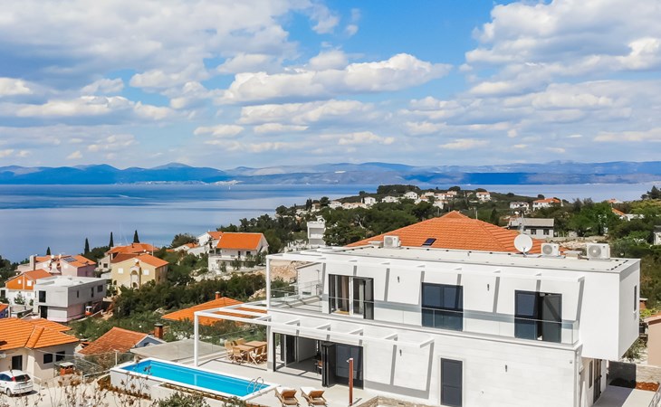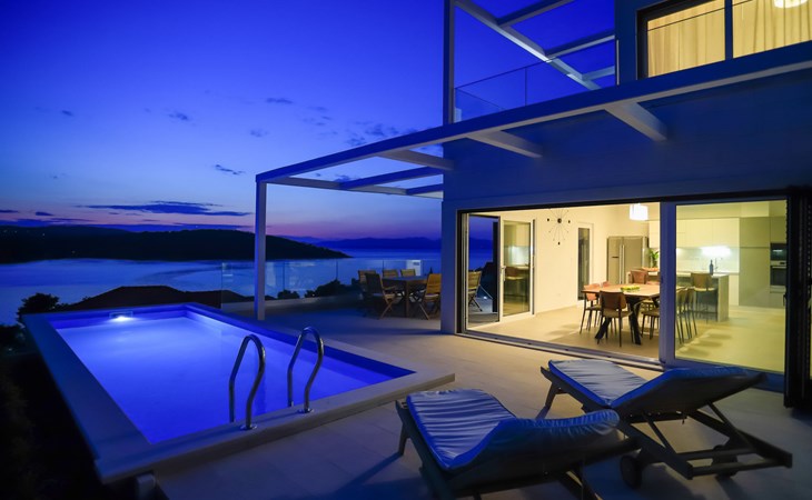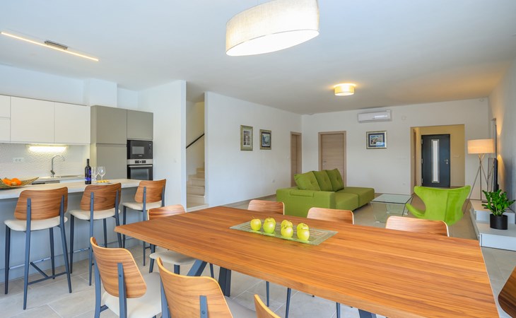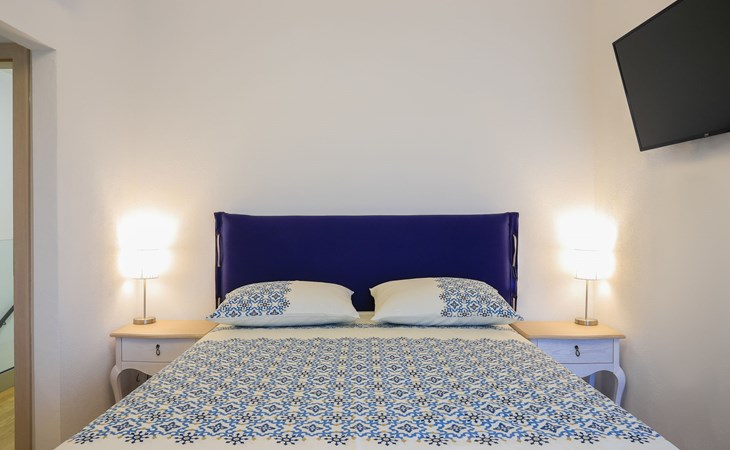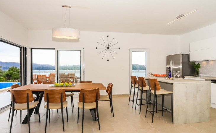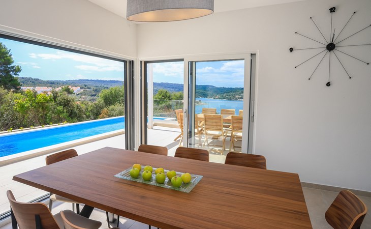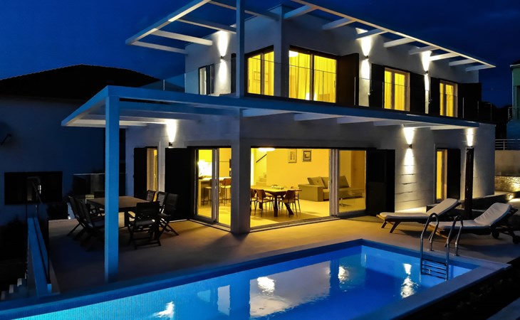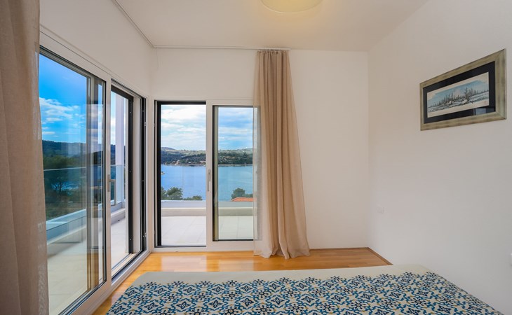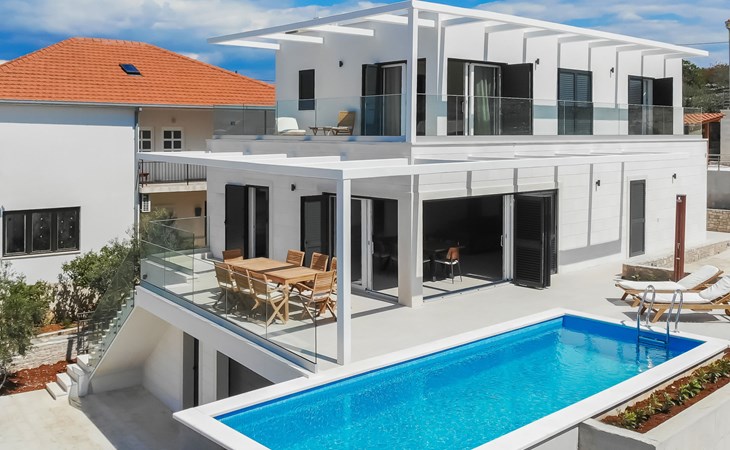 Einfamilienhaus "Jakša", auf 2 Stockwerken, Baujahr 2019. Ruhige, sonnige, erhöhte Lage, 200 m vom Meer, 200 m vom Strand. Zur Alleinbenutzung: Grundstück 450 m2, Schwimmbad eckig, beheizt (8 x 2 m, 20 m2, 150 cm tief, saisonale Verfügbarkeit: 01.Mai. - 01.Okt.). Aussendusche, Terrasse (60 m2), Gartenmöbel. Im Hause: Internetzugang, Waschmaschine, Wäschetrockner. Zur Verfügung: Fahrräder (3). Parkplatz (für 2 Autos) beim Haus auf dem Grundstück. Einkaufsgeschäft 5 km, Restaurant 250 m, Bushaltestelle 550 m, Kieselstrand 500 m, Felsstrand 200 m. Einkaufsgeschäft 850 m (15.06.-15.09.). Schwimmbad beheizt (extra).