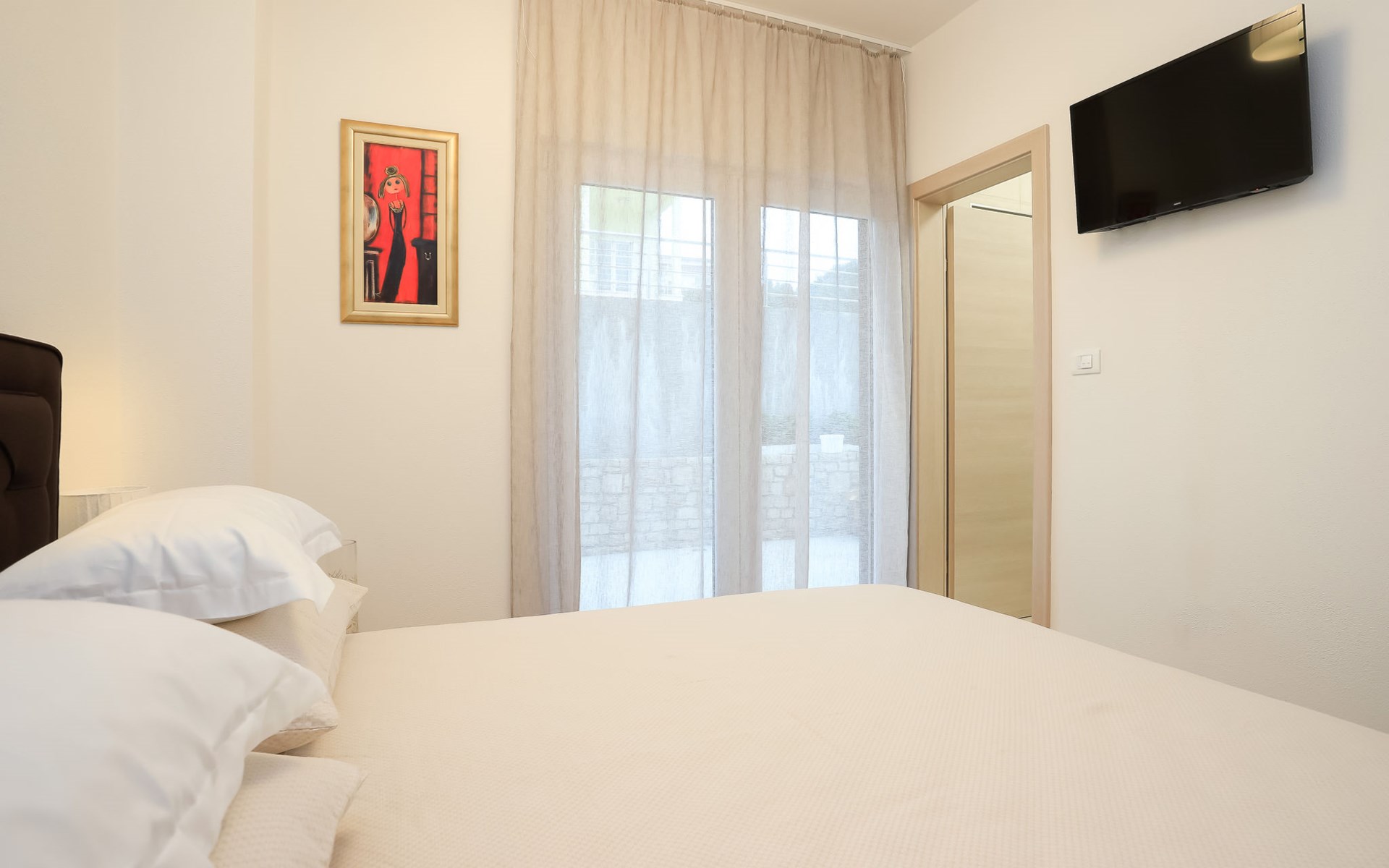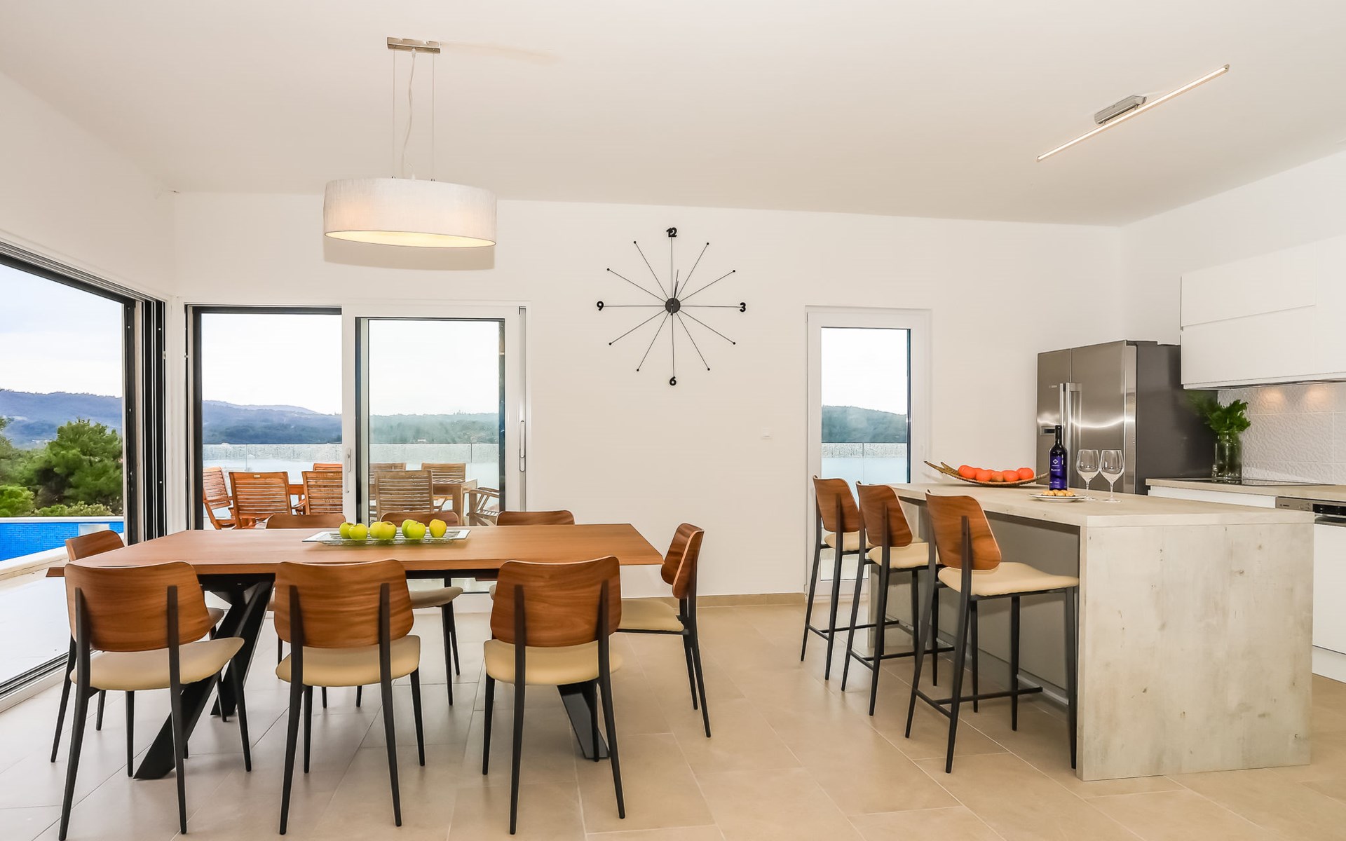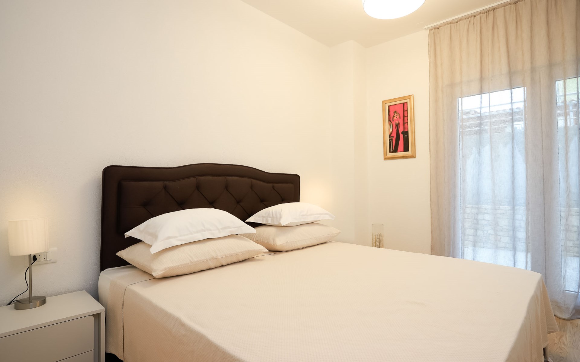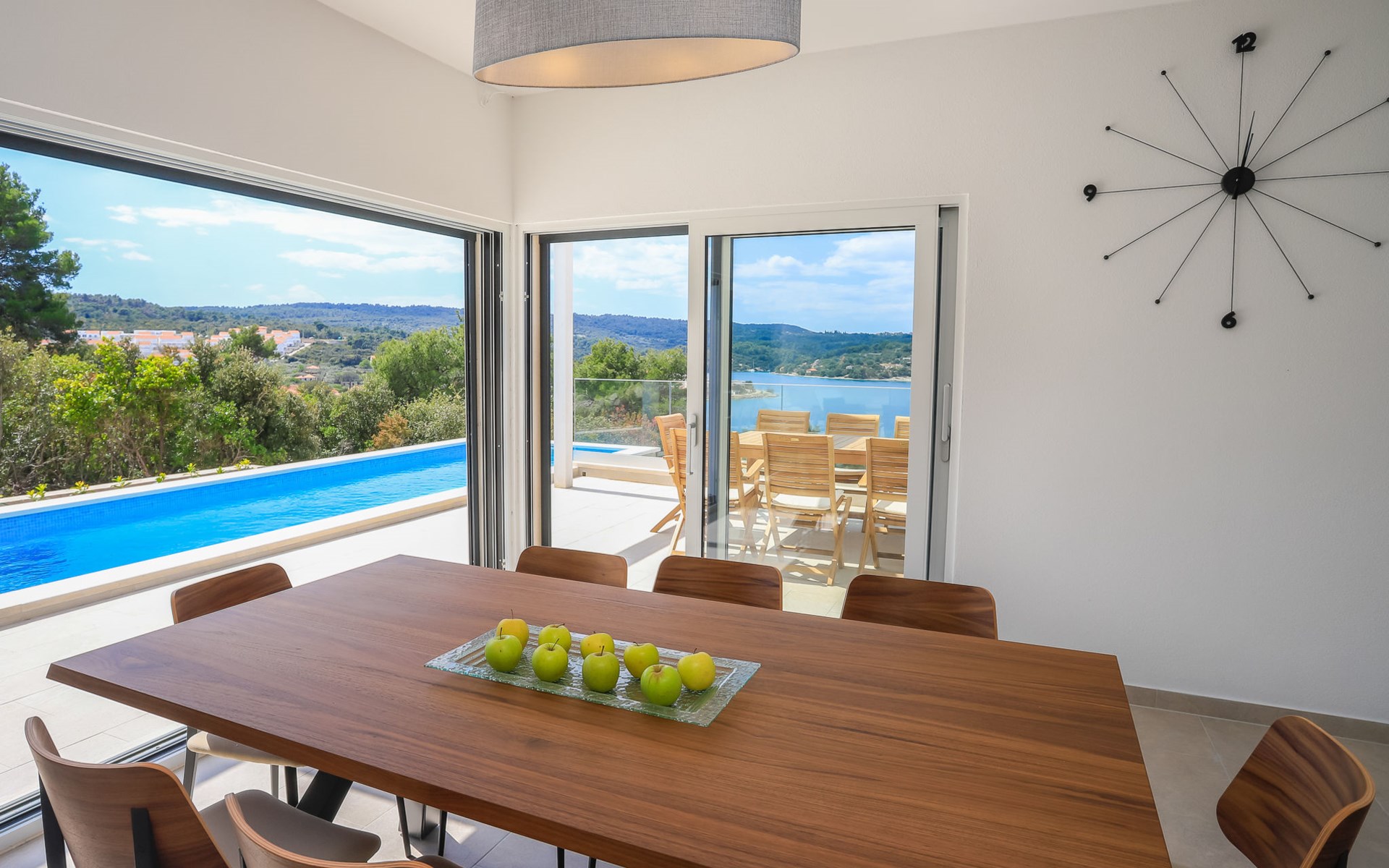 Einfamilienhaus "Jakša", auf 2 Stockwerken, Baujahr 2019. Ruhige, sonnige, erhöhte Lage, 200 m vom Meer, 200 m vom Strand. Zur Alleinbenutzung: Grundstück 450 m2, Schwimmbad eckig, beheizt (8 x 2 m, 20 m2, 150 cm tief, saisonale Verfügbarkeit: 01.Mai. - 01.Okt.). Aussendusche, Terrasse (60 m2), Gartenmöbel. Im Hause: Internetzugang, Waschmaschine, Wäschetrockner. Zur Verfügung: Fahrräder (3). Parkplatz (für 2 Autos) beim Haus auf dem Grundstück. Einkaufsgeschäft 5 km, Restaurant 250 m, Bushaltestelle 550 m, Kieselstrand 500 m, Felsstrand 200 m. Einkaufsgeschäft 850 m (15.06.-15.09.). Schwimmbad beheizt (extra).