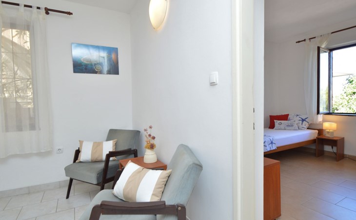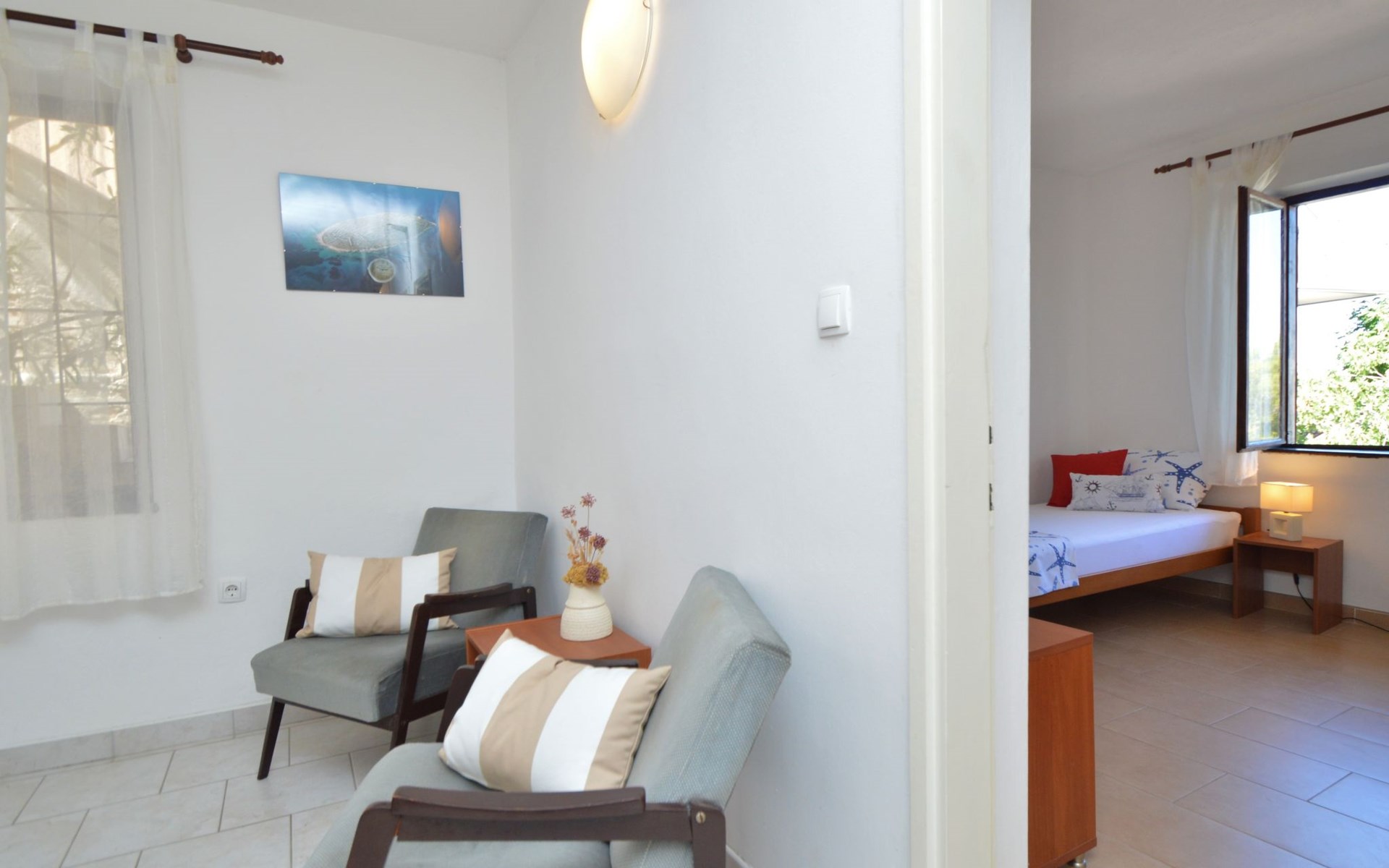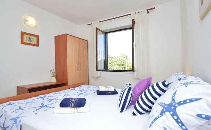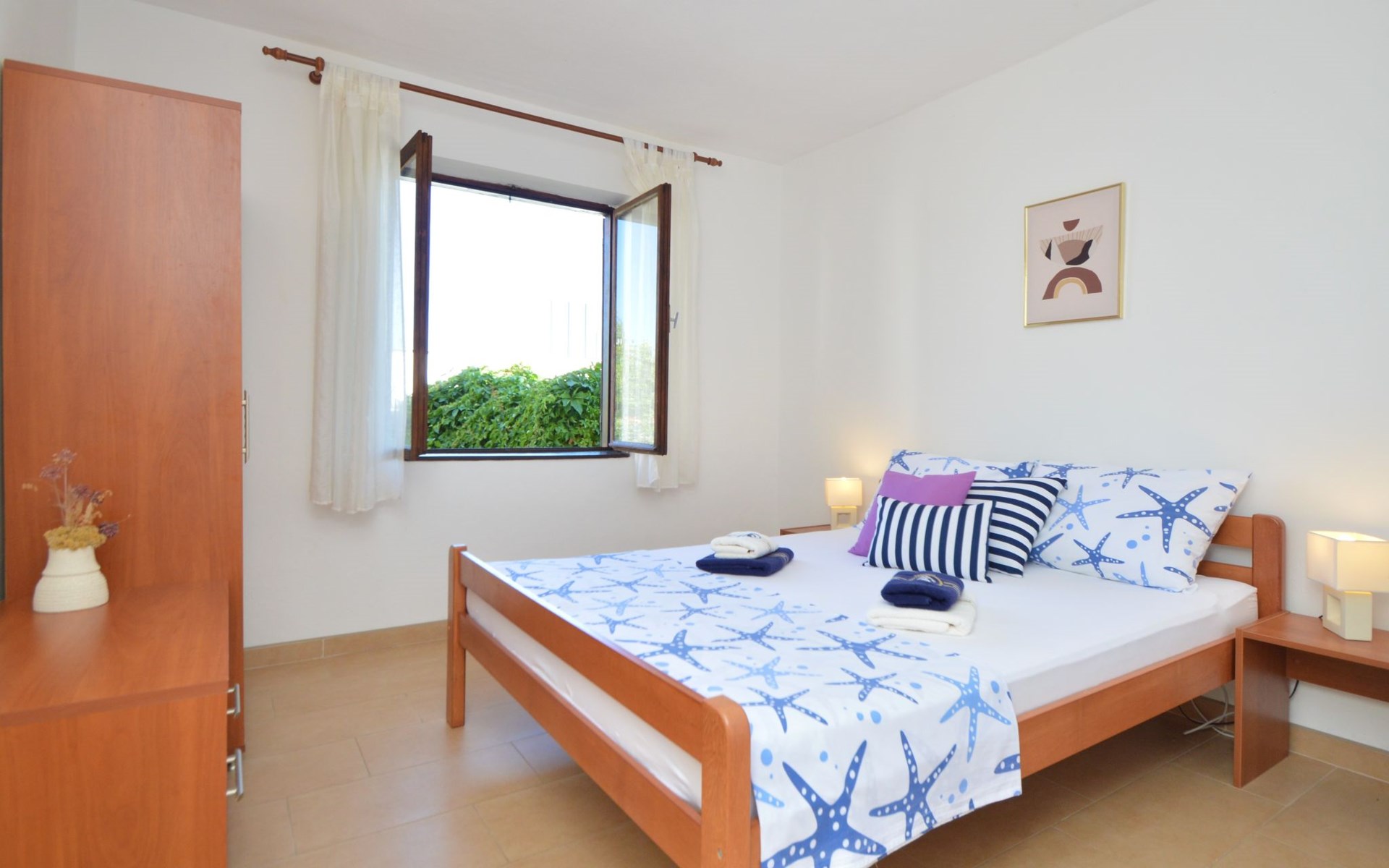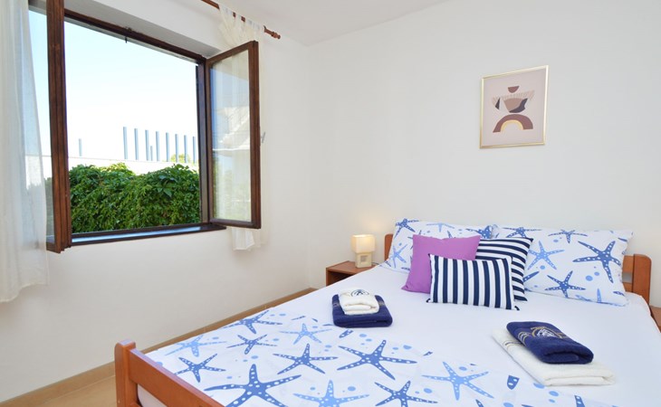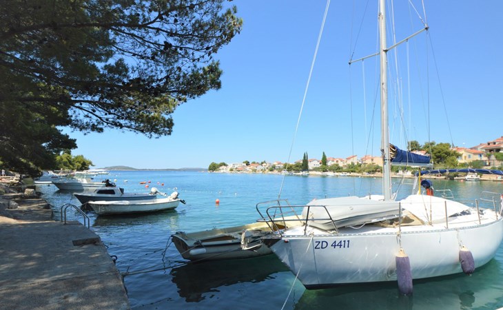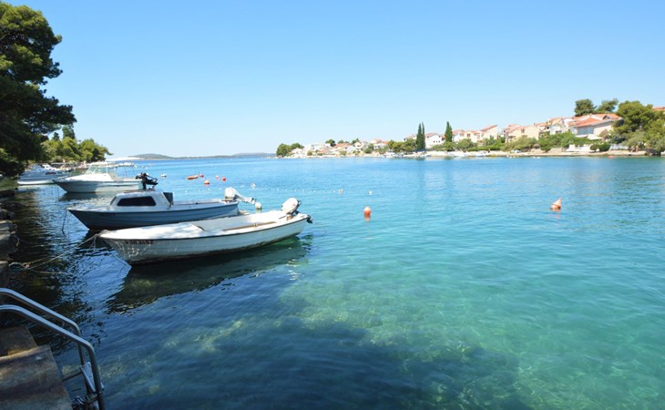 Žaborić 3 km von Brodarica: Zweifamilienhaus "Slađana". 7 km vom Zentrum von Šibenik, ruhige, sonnige Lage, 70 m vom Meer, 70 m vom Strand. Zur Alleinbenutzung: Aussendusche, Grill. Im Hause: Internetzugang. Parkplatz beim Haus auf dem Grundstück. Einkaufsgeschäft 500 m, Restaurant 1 km, Bushaltestelle 550 m, Felsstrand 70 m.