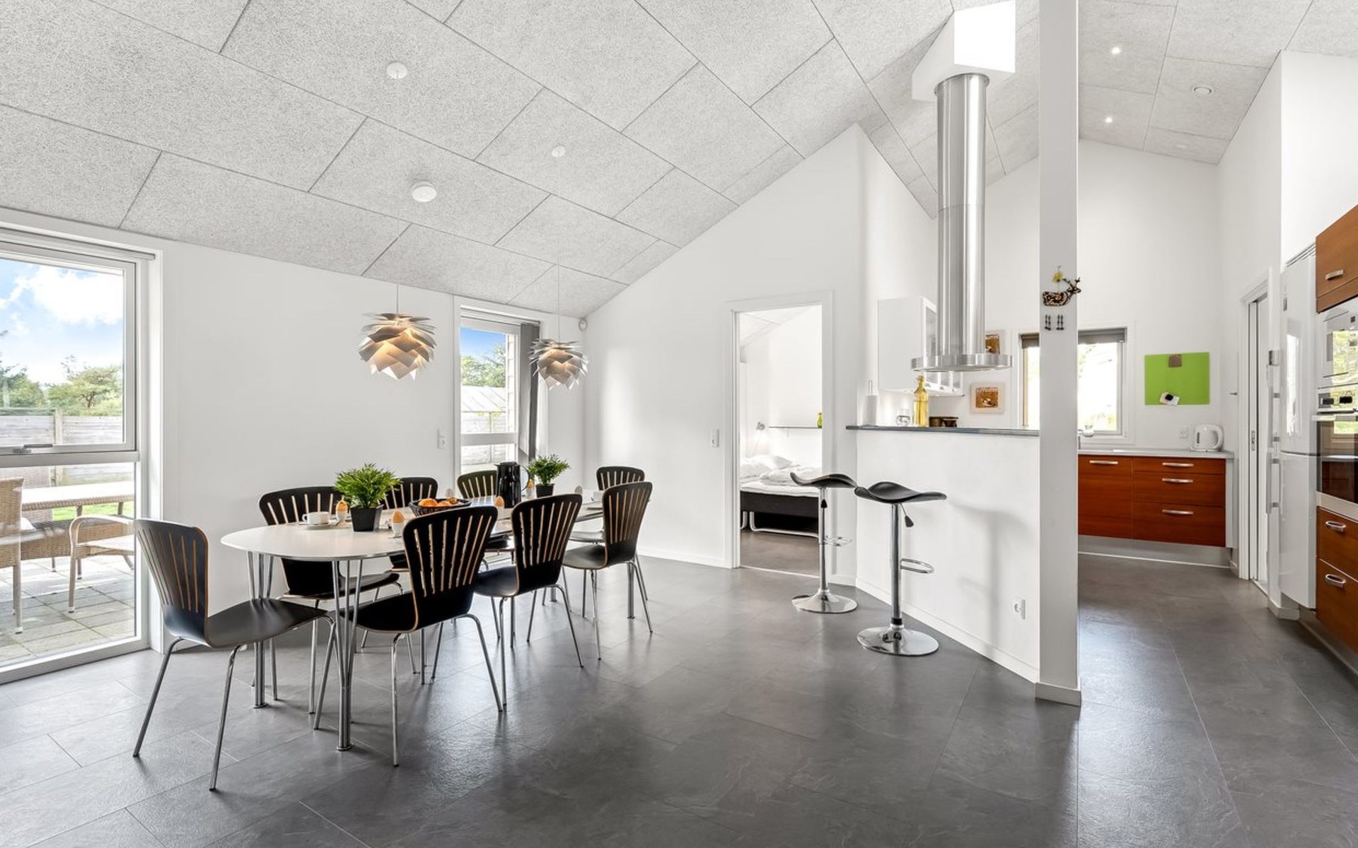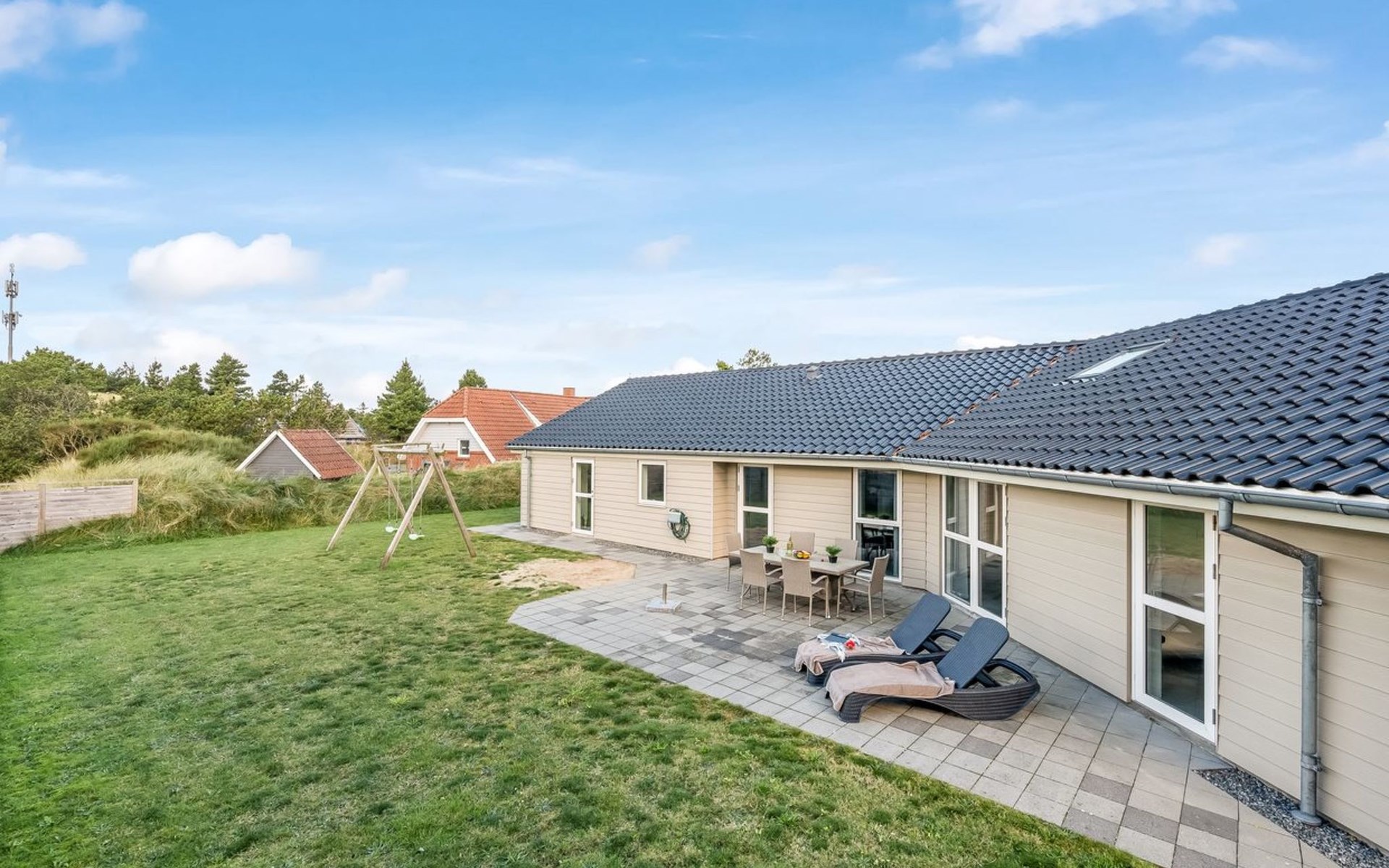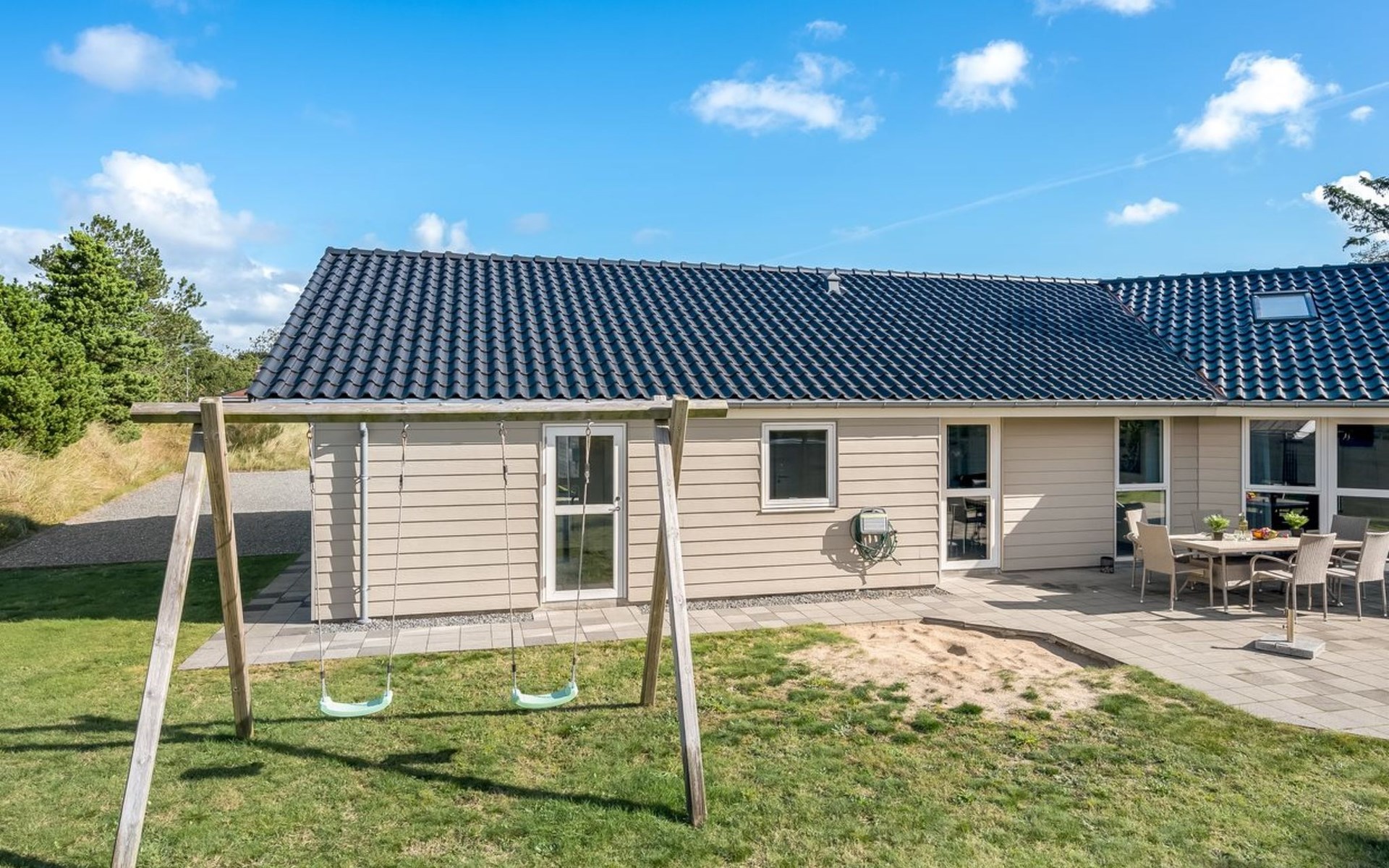 Einfamilienhaus, Baujahr 2014. 450 m vom Meer. Zur Alleinbenutzung: naturbelassenes Grundstück 750 m2. Grill. Im Hause: Sauna, Waschmaschine, Wäschetrockner. Parkplatz beim Haus. Carport. Lebensmittelgeschäft 350 m. Der Besitzer akzeptiert keine Jugendgruppen.
