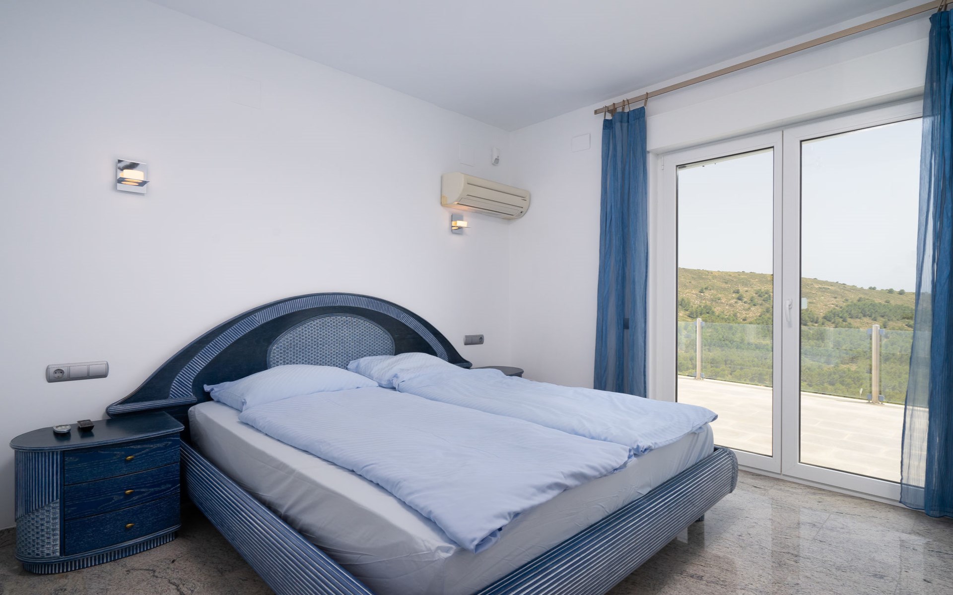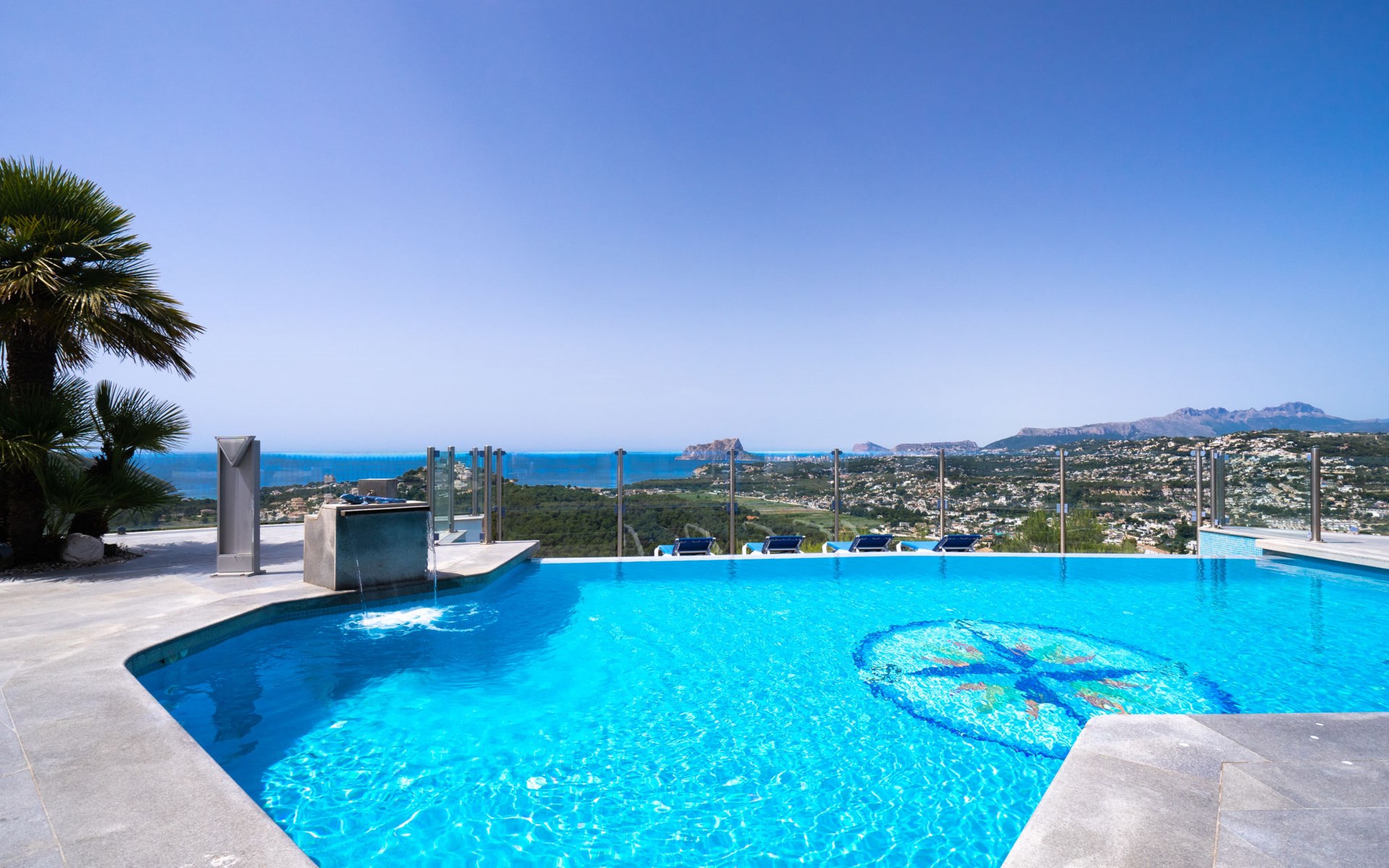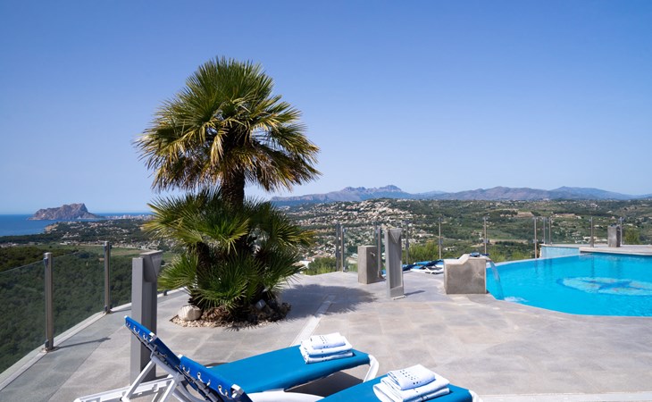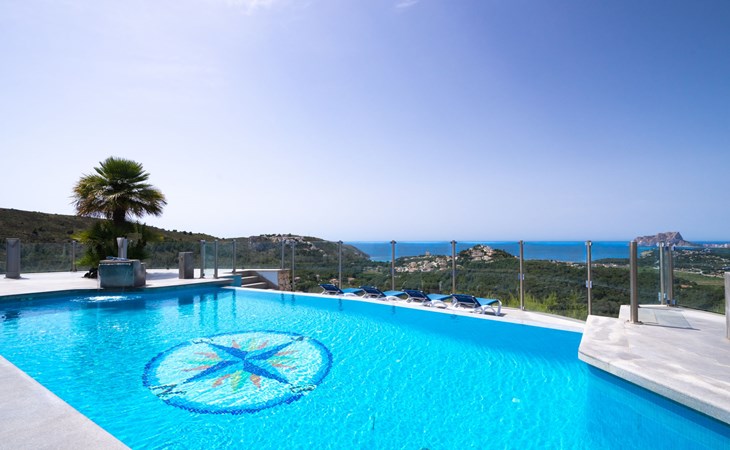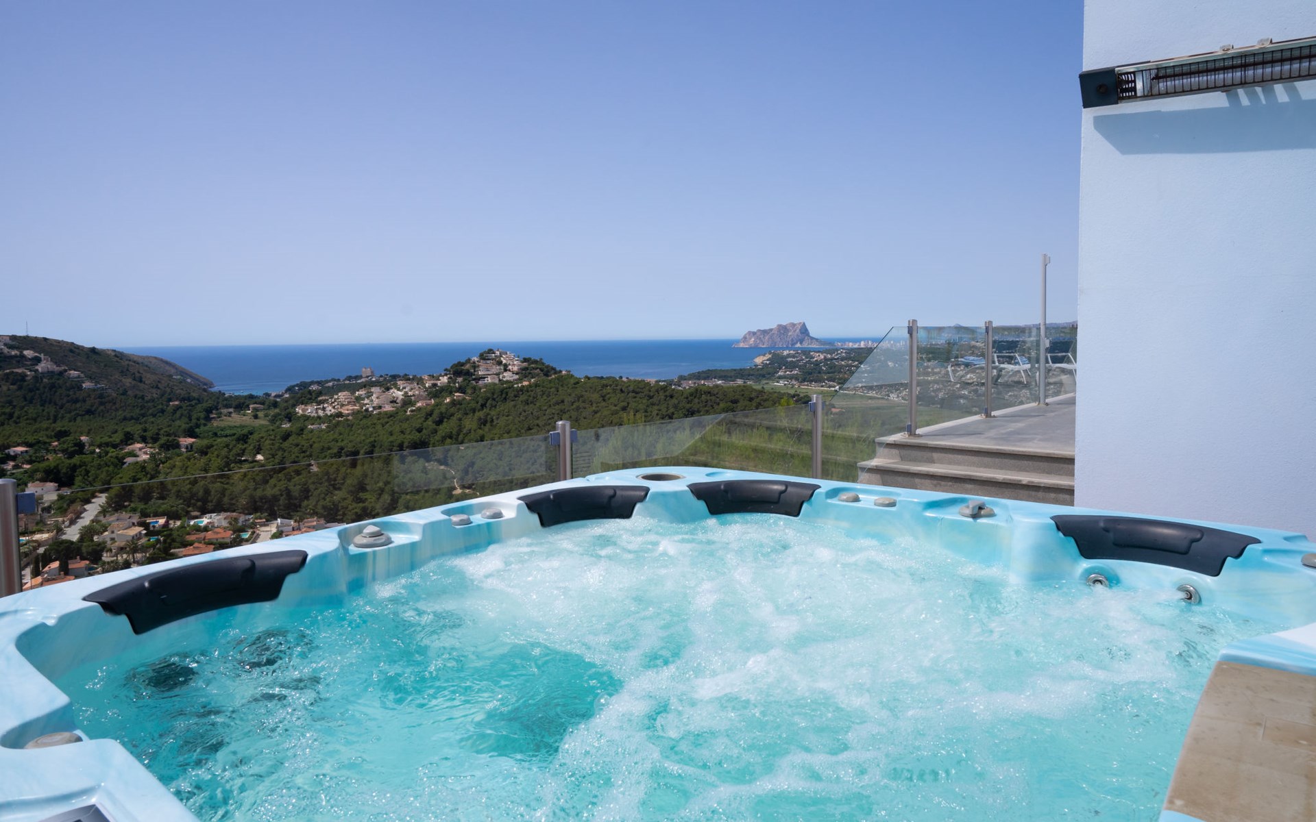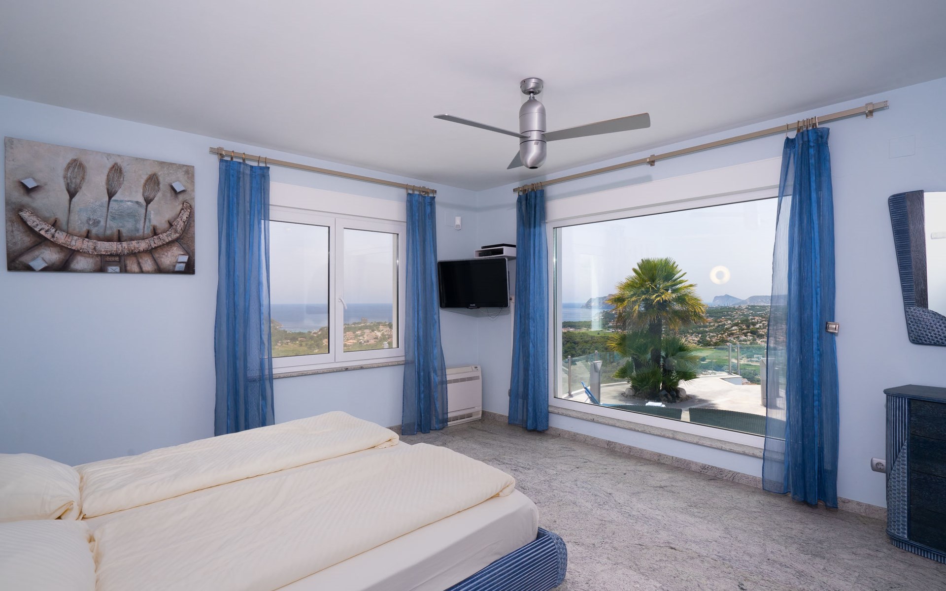 Golden Valley: Sehr moderne, luxuriöse Finca "Finca Edel", auf 2 Stockwerken. 4.5 km vom Zentrum von Moraira, ruhige, sonnige, erhöhte Lage, 4.5 km vom Meer, in einer Sackgasse. Zur Alleinbenutzung: Grundstück 1'200 m2 (eingezäunt), Schwimmbad nicht einsehbar (50 m2, saisonale Verfügbarkeit: 01.Jan. - 31.Dez.) mit Innentreppe. Terrasse, Gartenmöbel, Grillhaus. Im Hause: Sauna, Sprudelbad (alles inkl.), Zentralheizung, Klimaanlage, Waschmaschine, Wäschetrockner. Supermarkt 1.3 km, Restaurant 1.3 km, Bar 1.3 km, Bushaltestelle "Moraira" 4.9 km, Bahnstation "Teulada" 7.1 km, Fähre "Denia" 22.7 km, Sandstrand "Playa L'Ampolla" 5.4 km. Golfplatz (18 Loch) 9 km. Der Besitzer akzeptiert keine Jugendgruppen.