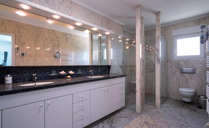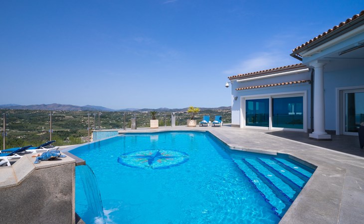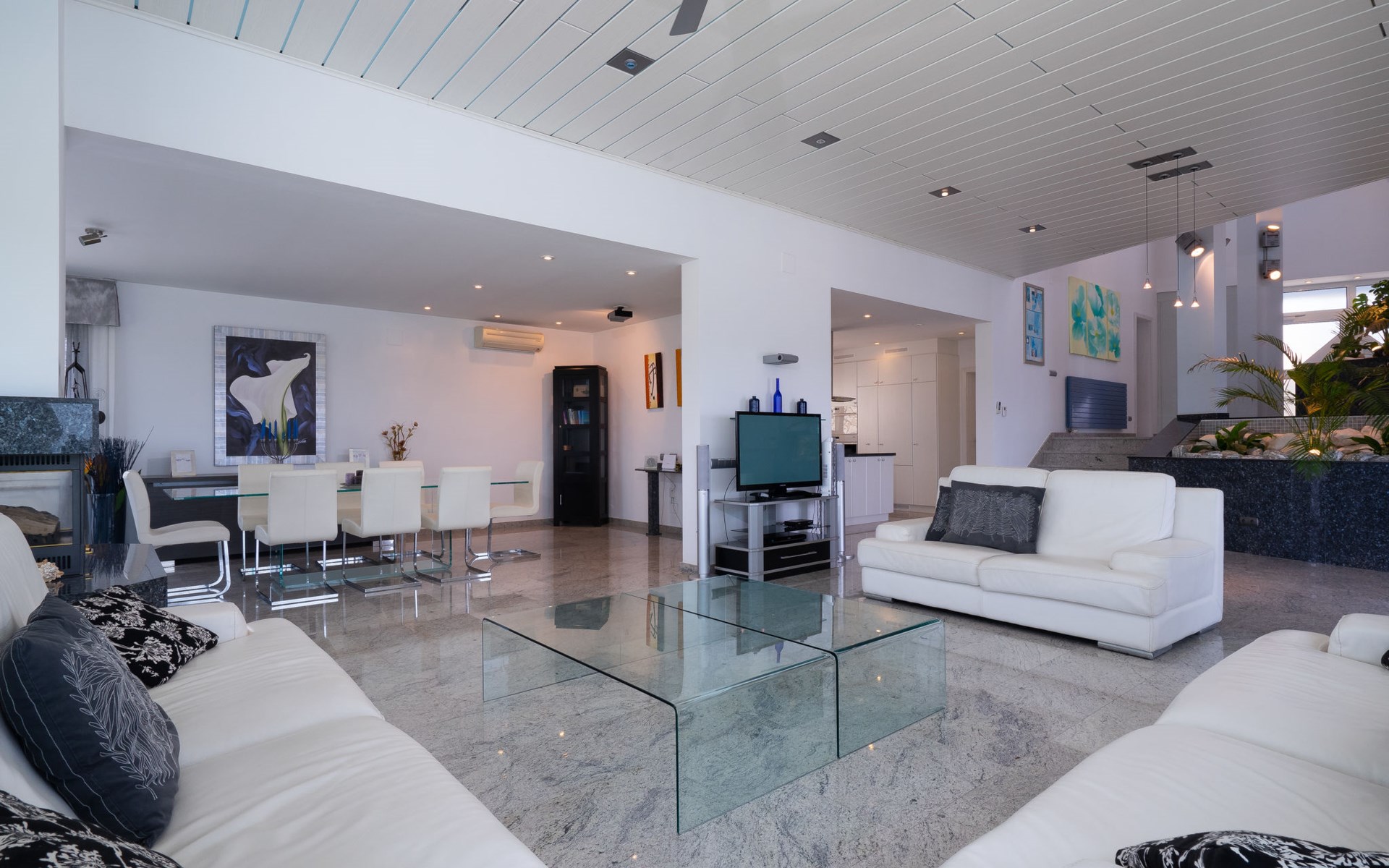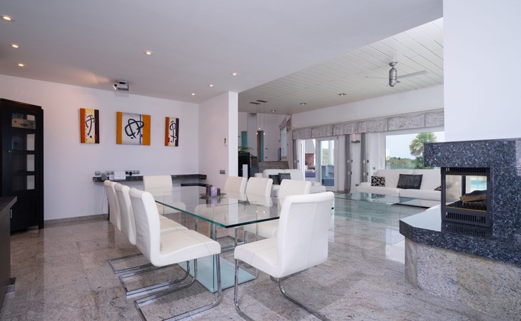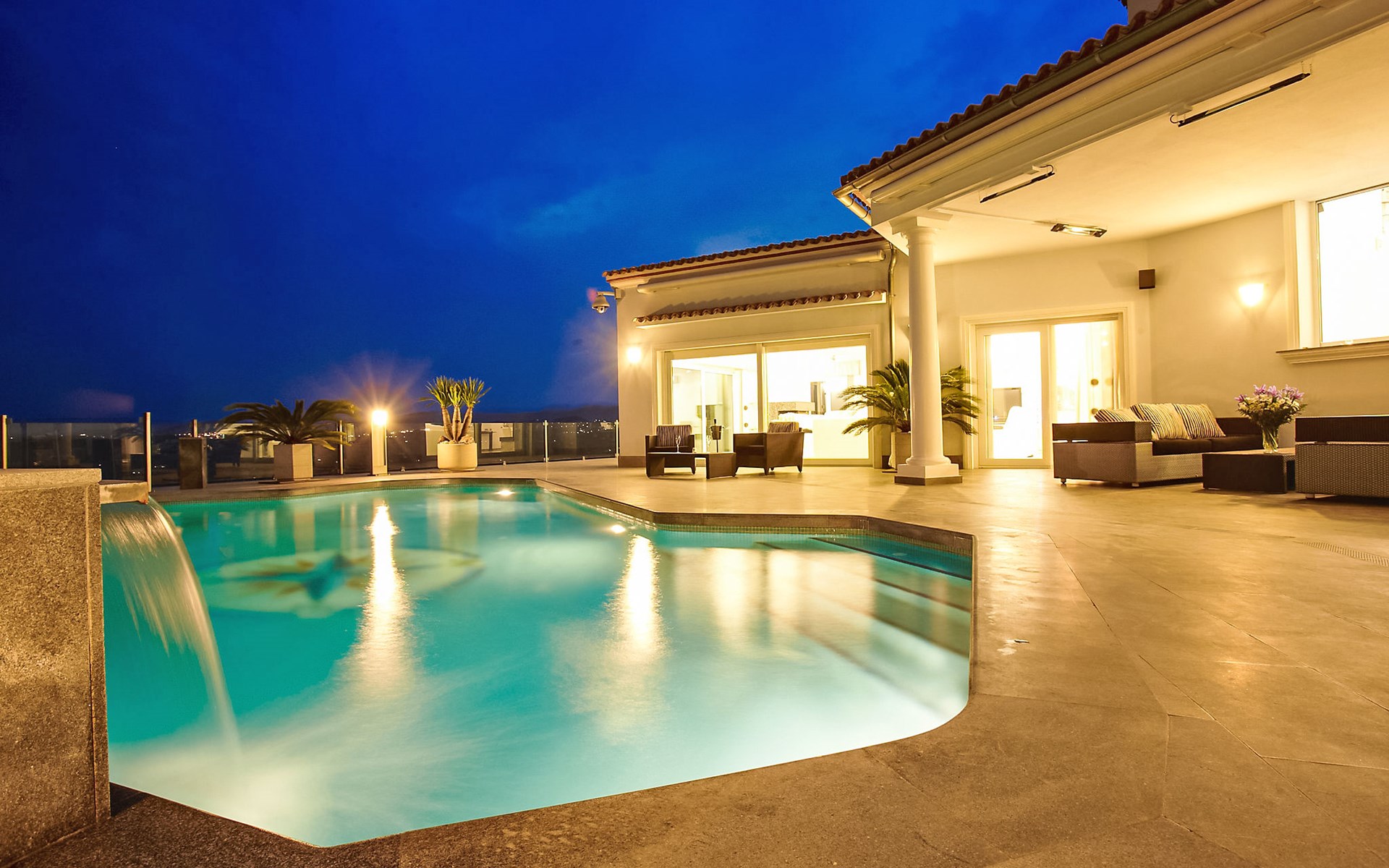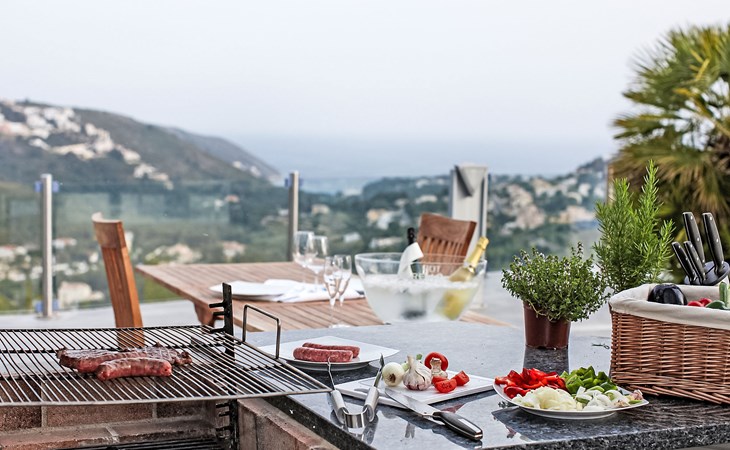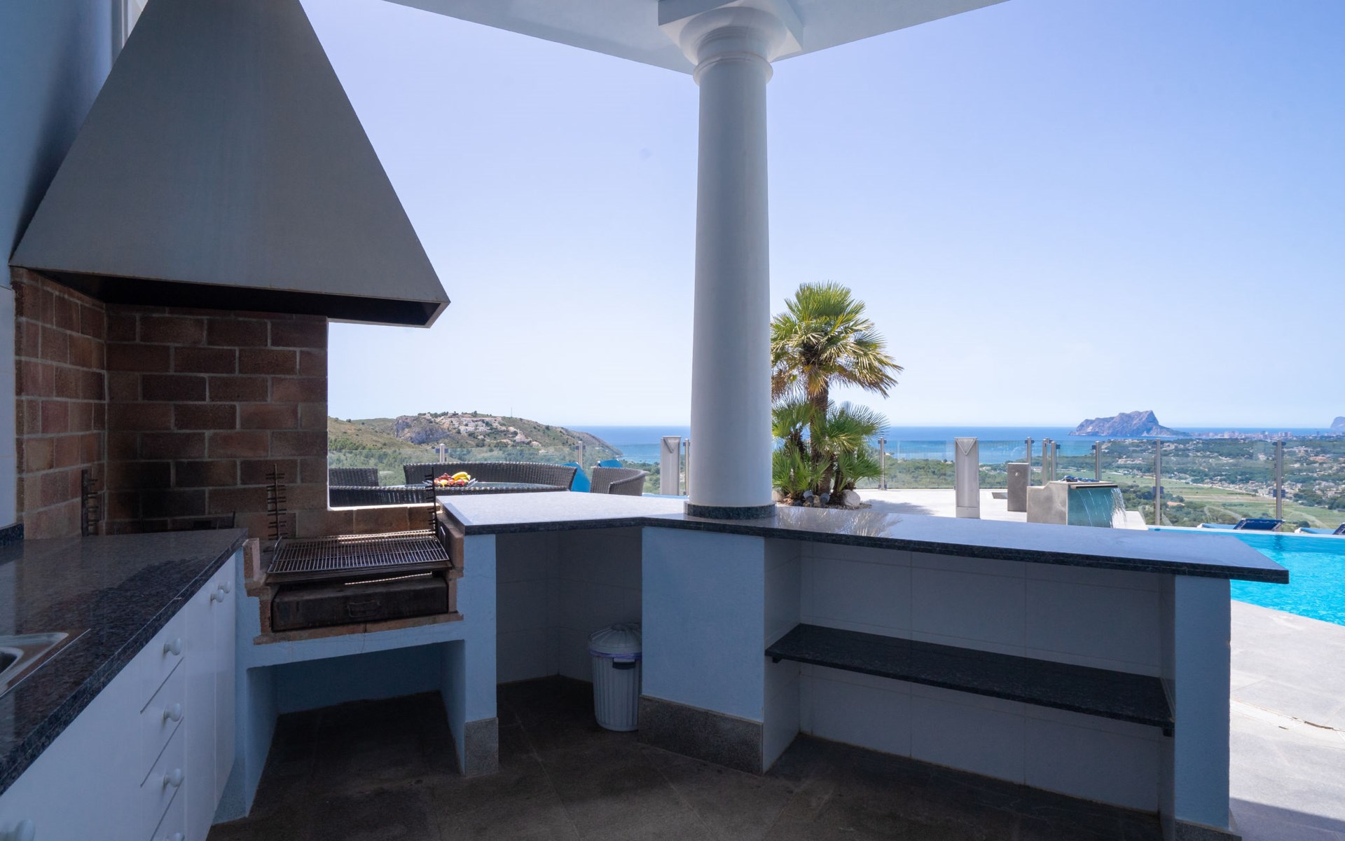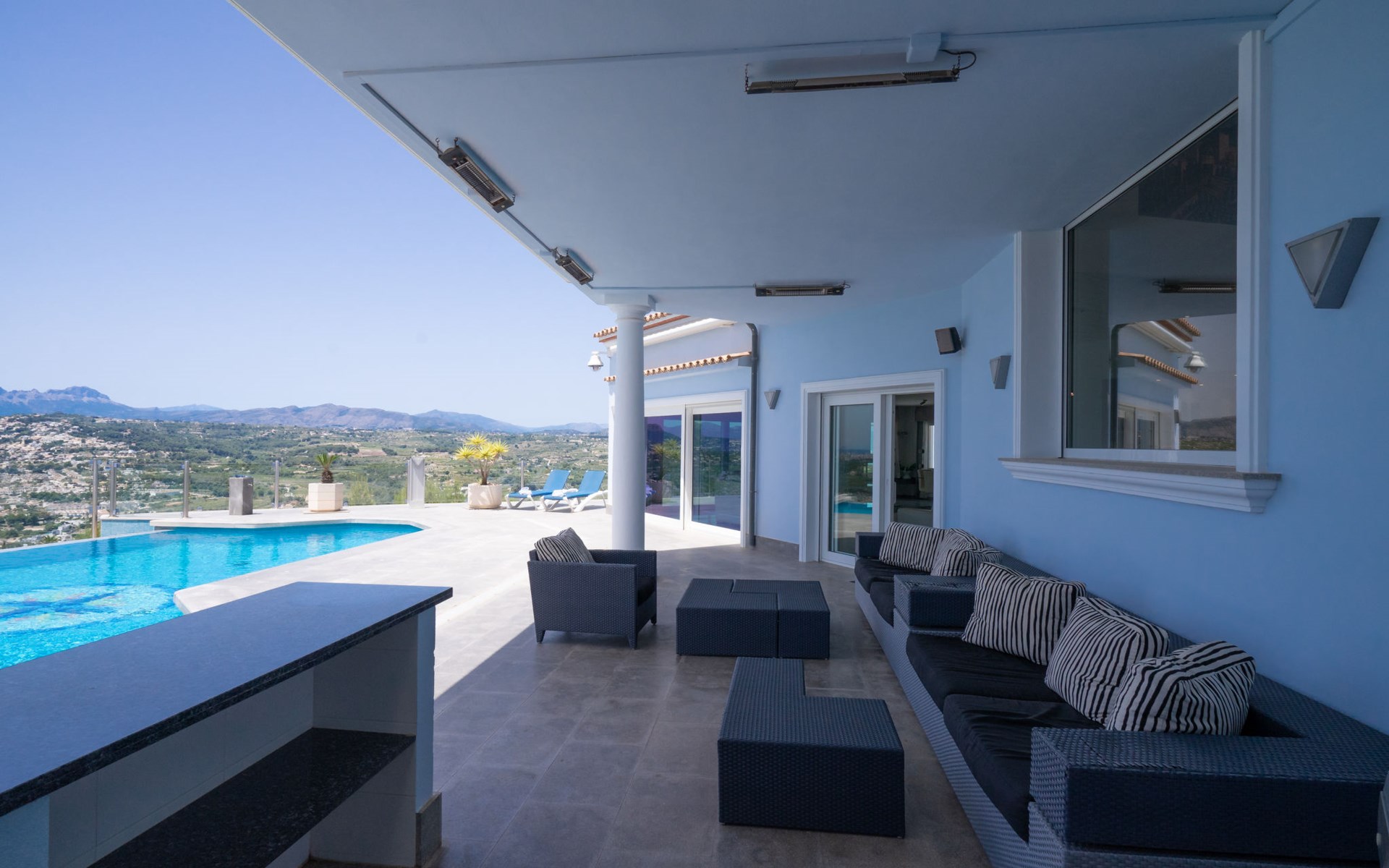 Golden Valley: Sehr moderne, luxuriöse Finca "Finca Edel", auf 2 Stockwerken. 4.5 km vom Zentrum von Moraira, ruhige, sonnige, erhöhte Lage, 4.5 km vom Meer, in einer Sackgasse. Zur Alleinbenutzung: Grundstück 1'200 m2 (eingezäunt), Schwimmbad nicht einsehbar (50 m2, saisonale Verfügbarkeit: 01.Jan. - 31.Dez.) mit Innentreppe. Terrasse, Gartenmöbel, Grillhaus. Im Hause: Sauna, Sprudelbad (alles inkl.), Zentralheizung, Klimaanlage, Waschmaschine, Wäschetrockner. Supermarkt 1.3 km, Restaurant 1.3 km, Bar 1.3 km, Bushaltestelle "Moraira" 4.9 km, Bahnstation "Teulada" 7.1 km, Fähre "Denia" 22.7 km, Sandstrand "Playa L'Ampolla" 5.4 km. Golfplatz (18 Loch) 9 km. Der Besitzer akzeptiert keine Jugendgruppen.