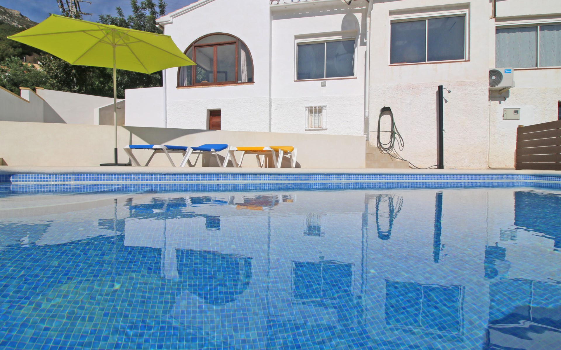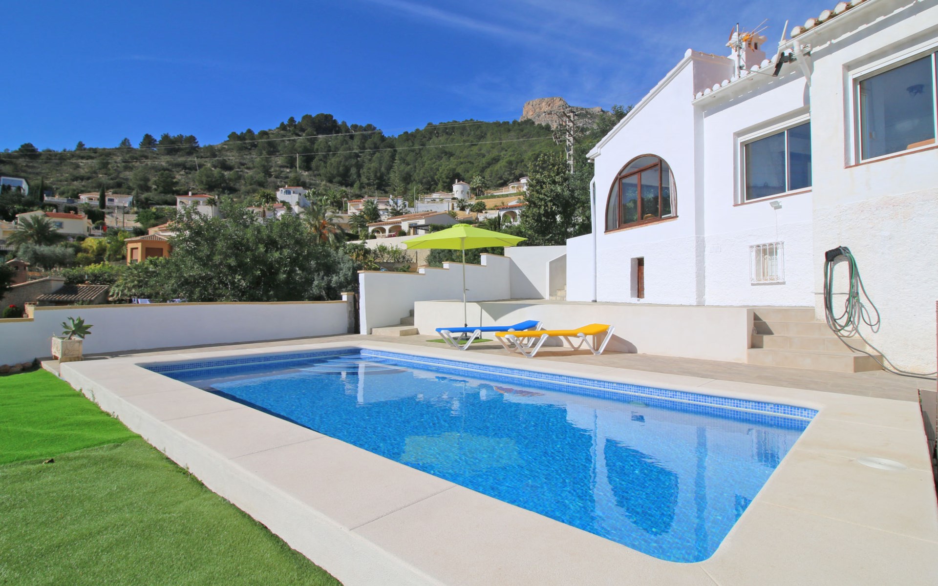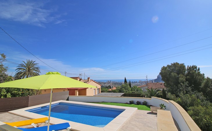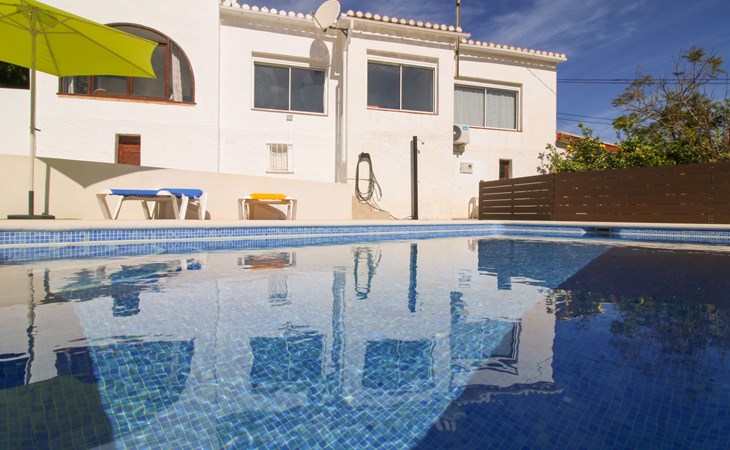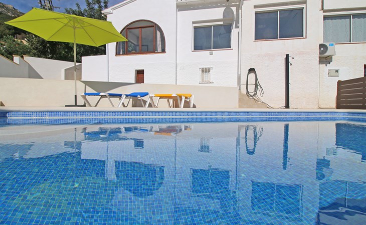 Villa "Mimosa". 2 km vom Zentrum von Calpe, ruhige, sonnige Lage im Villenviertel, verkehrsberuhigte Zone, 2.5 km vom Meer, 2.5 km vom Strand. Zur Alleinbenutzung: Schwimmbad (7 x 4 m, saisonale Verfügbarkeit: 01.Jan. - 31.Dez.). Aussendusche. Bushaltestelle 450 m.