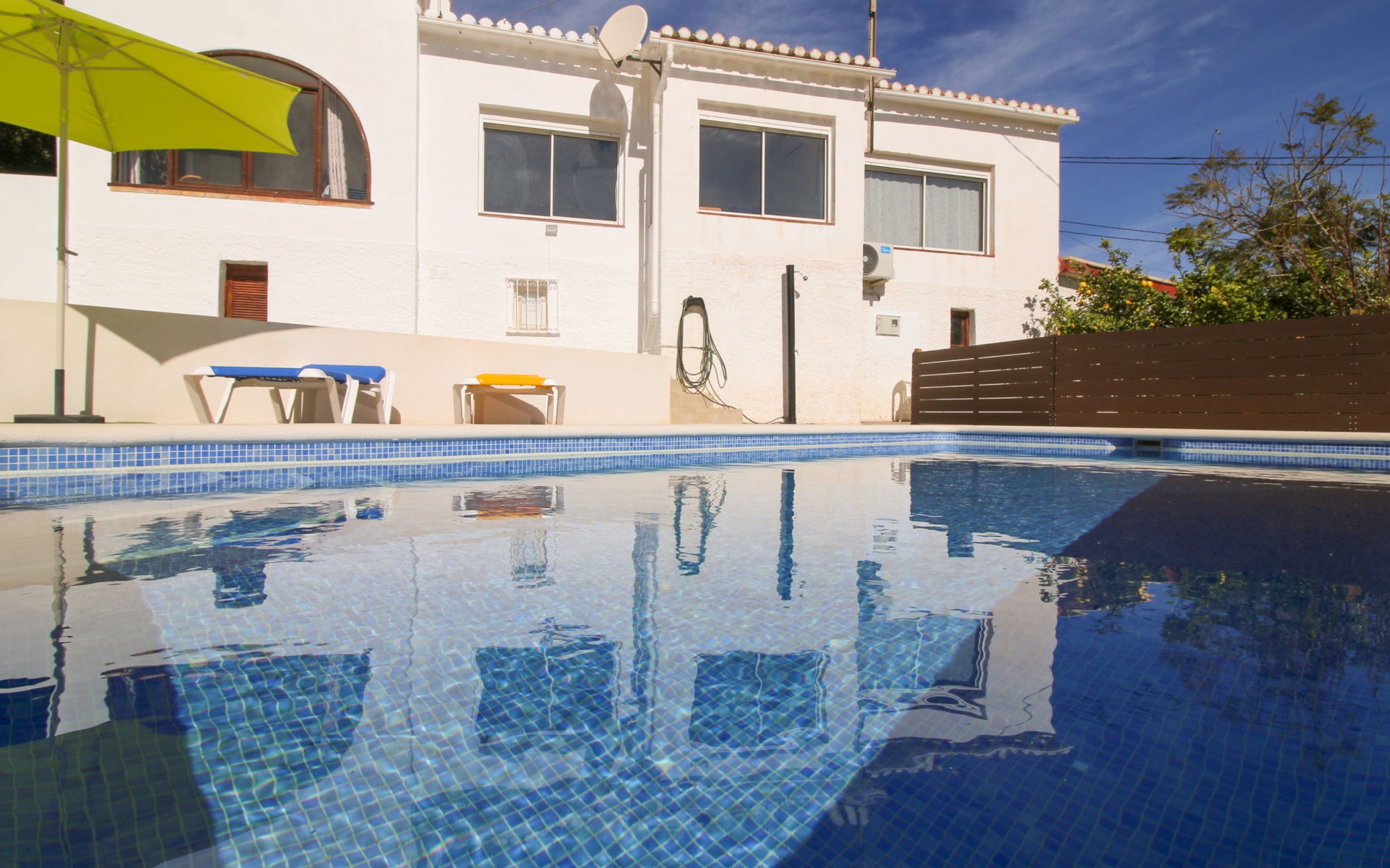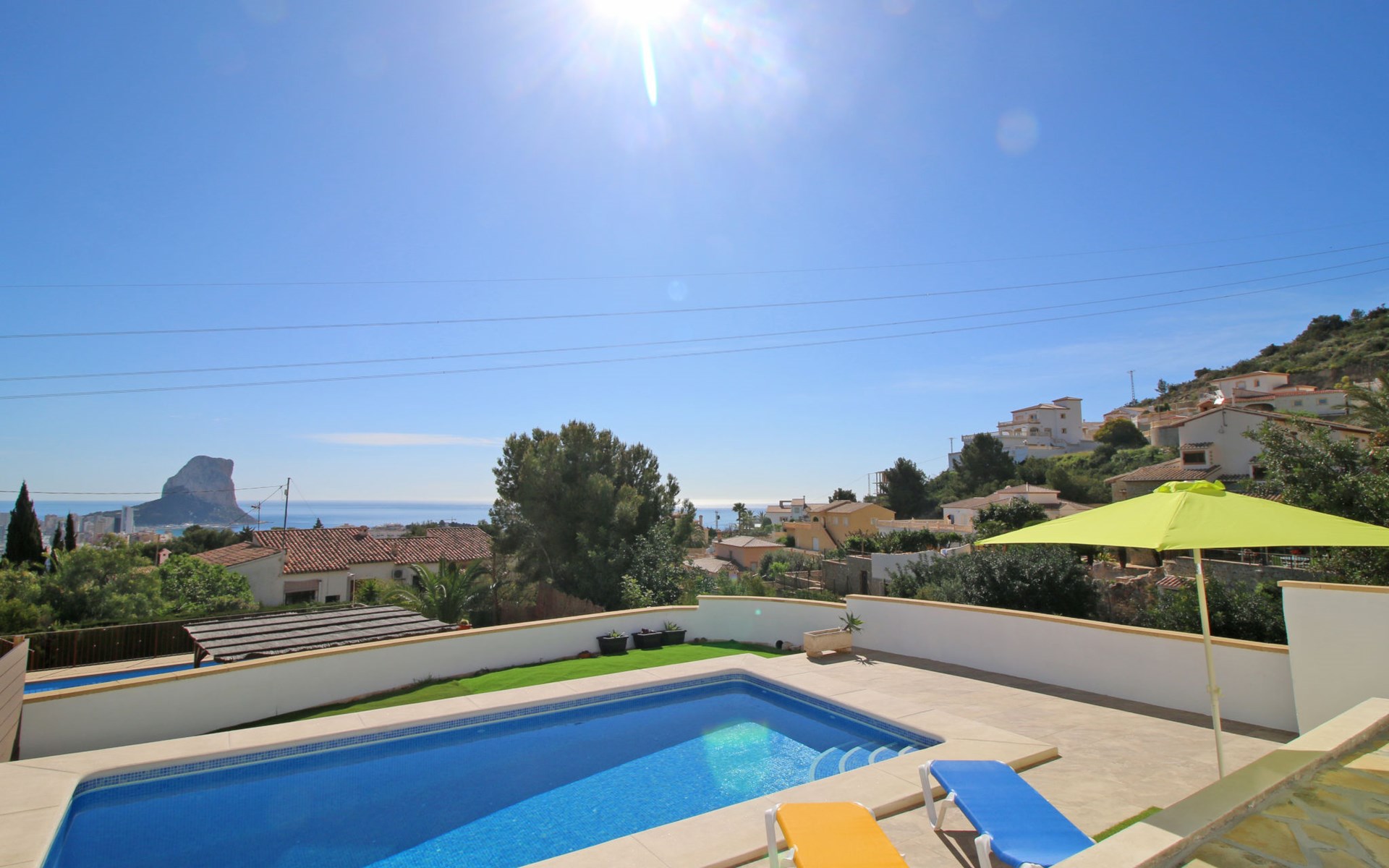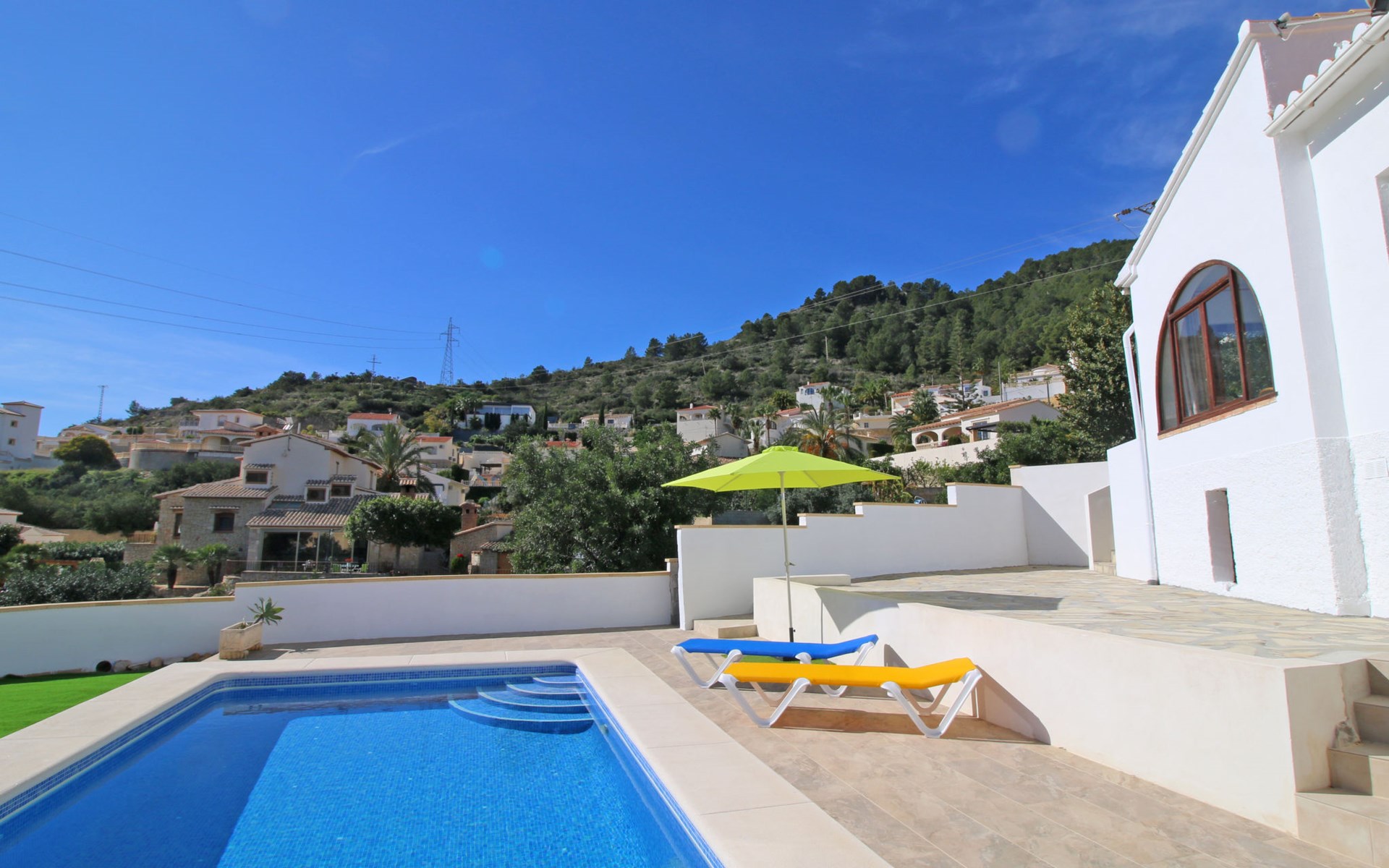 Villa "Mimosa". 2 km vom Zentrum von Calpe, ruhige, sonnige Lage im Villenviertel, verkehrsberuhigte Zone, 2.5 km vom Meer, 2.5 km vom Strand. Zur Alleinbenutzung: Schwimmbad (7 x 4 m, saisonale Verfügbarkeit: 01.Jan. - 31.Dez.). Aussendusche. Bushaltestelle 450 m.