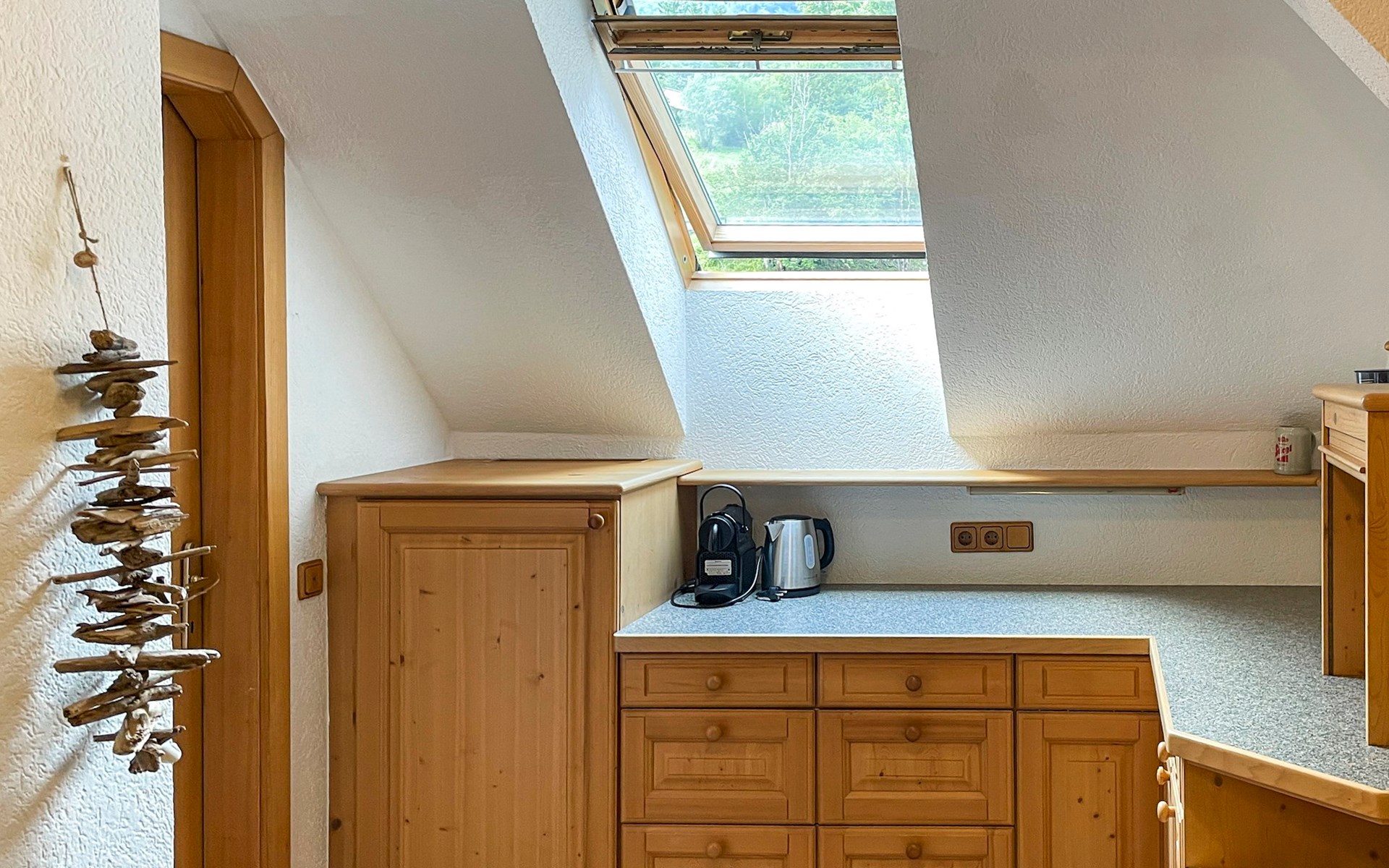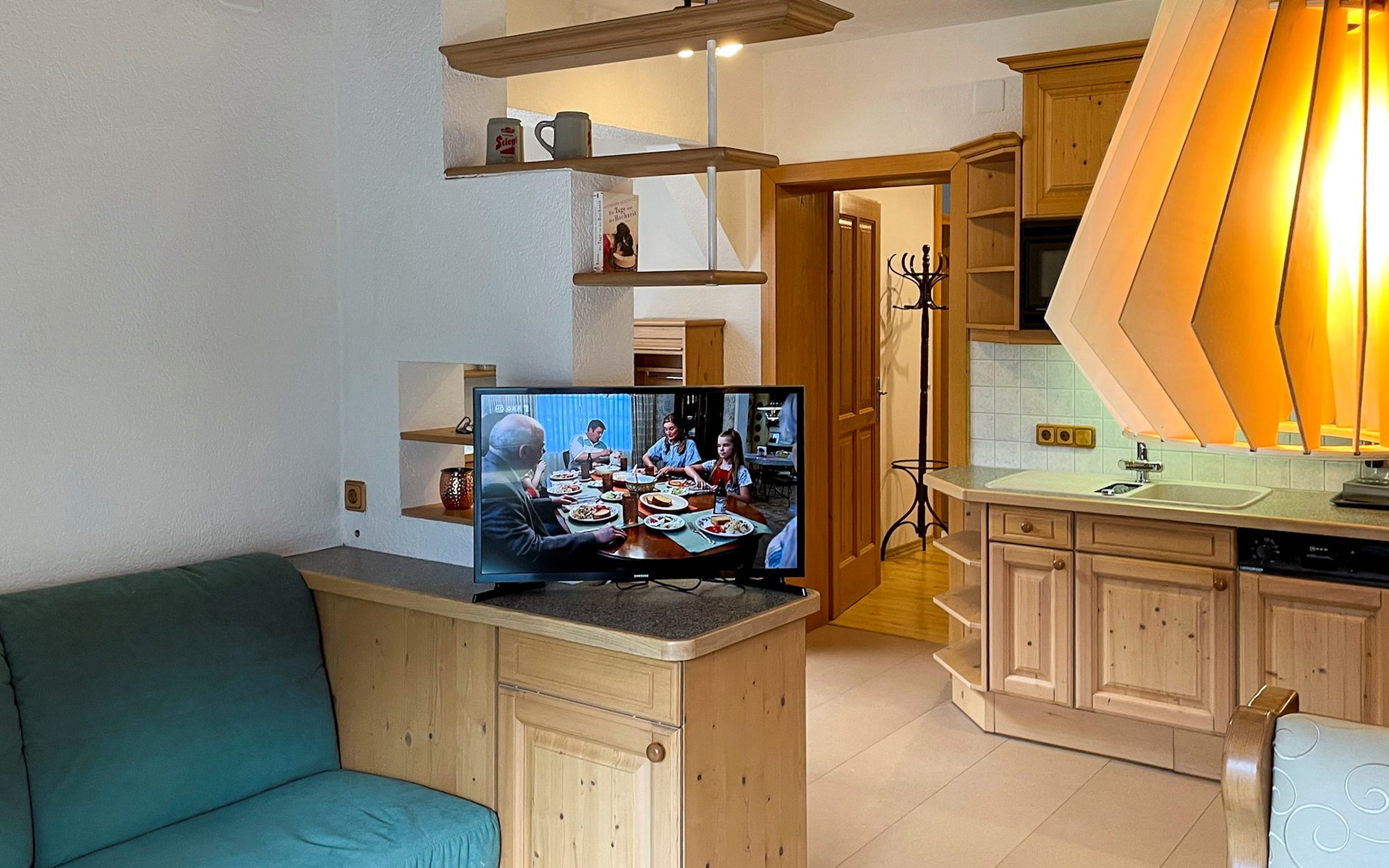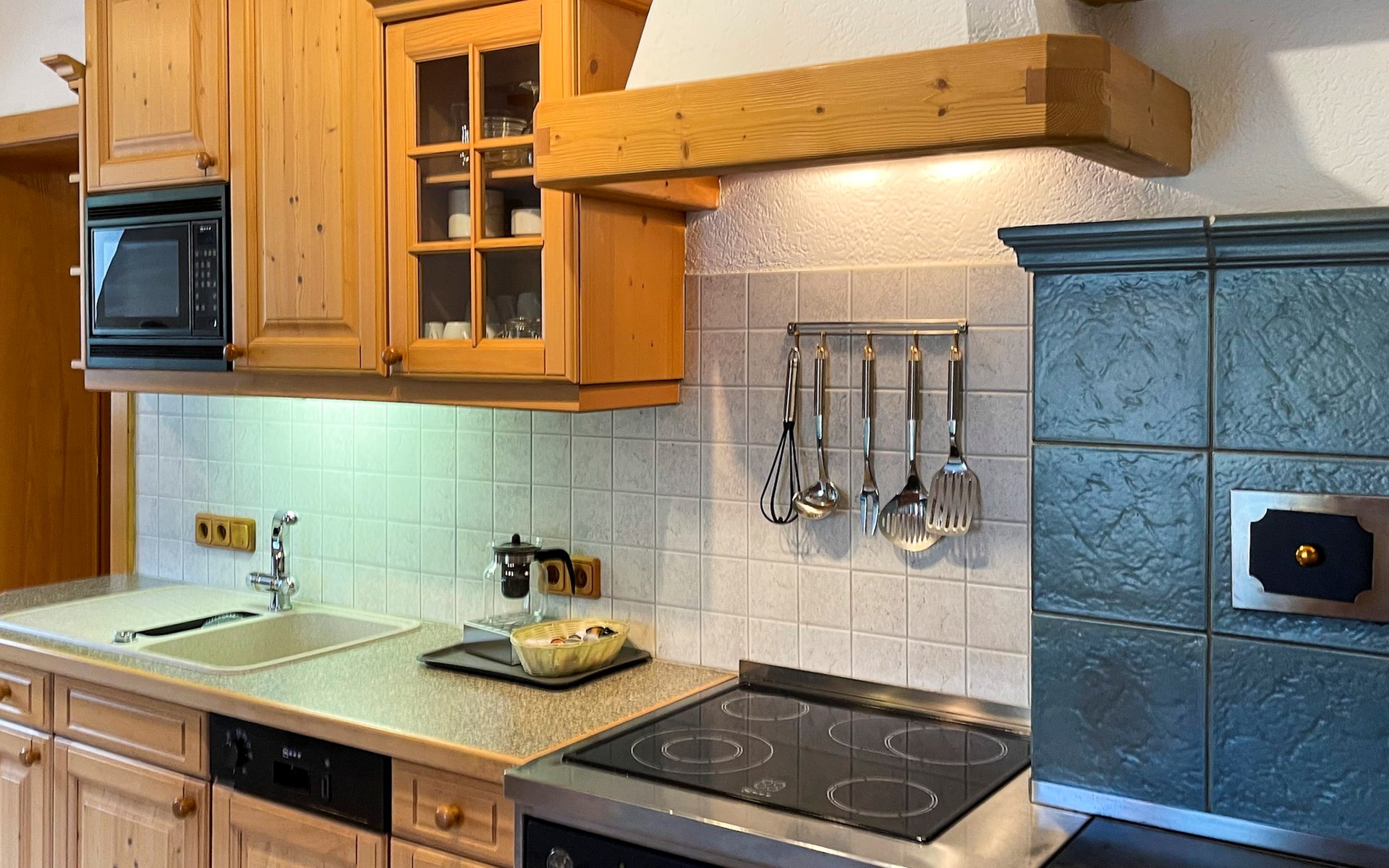 Ihnen stehen eine große Küche mit einer Nespresso Maschine-Kaffeemaschine, einem Backofen, einem Kühlschrank, einem Elektroherd und einem Geschirrspüler zur Verfügung. Außerdem verfügt die Ferienwohnung über eine gemütliche Sitzecke mit Fernseher und eine Essbereich.