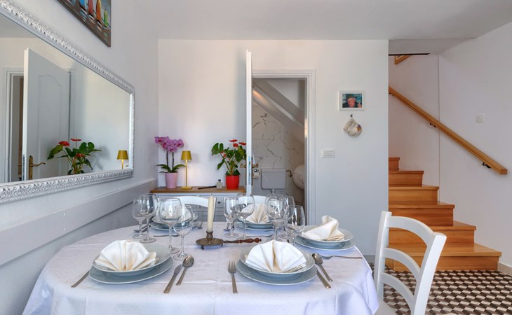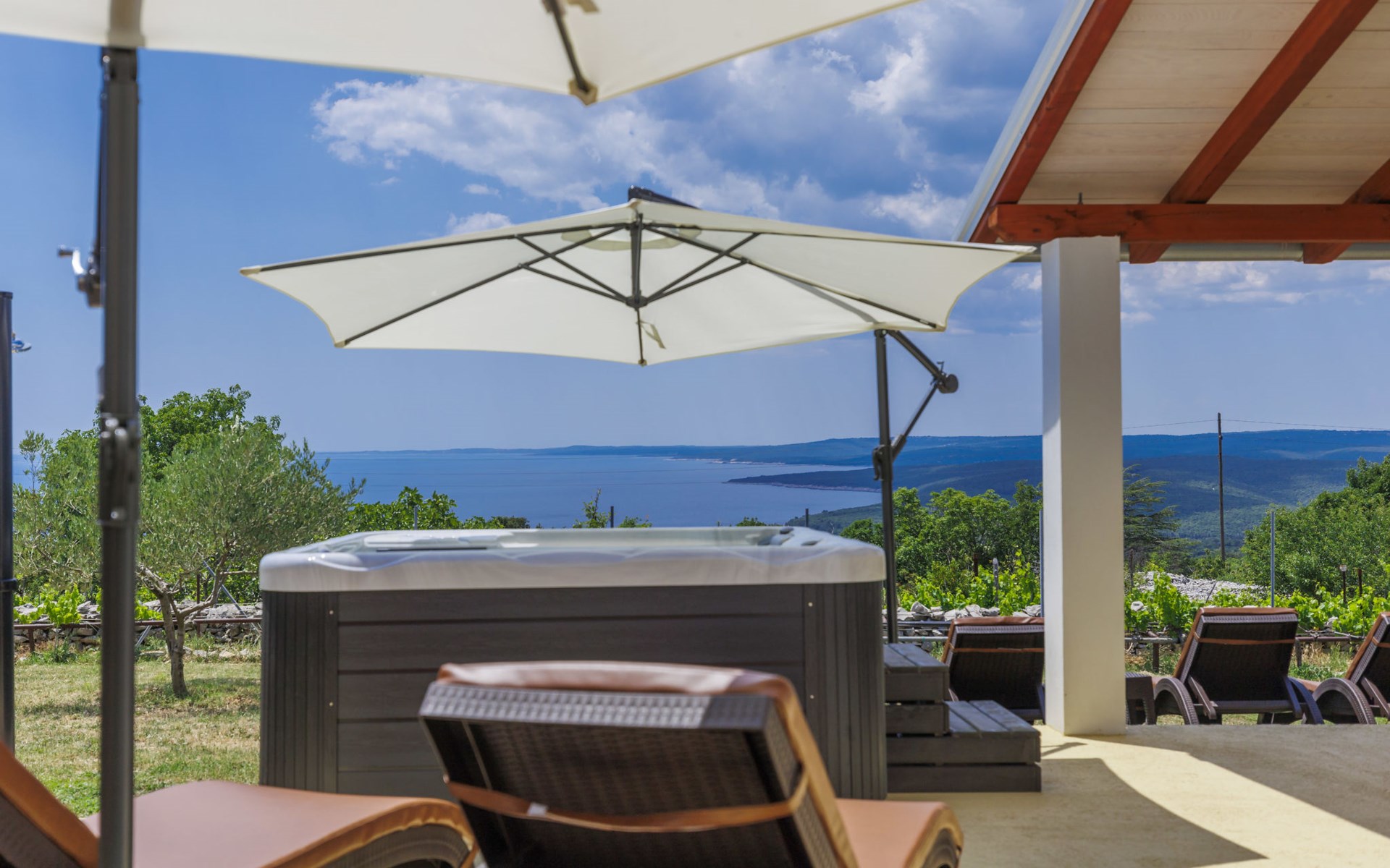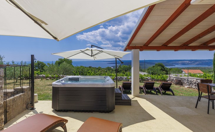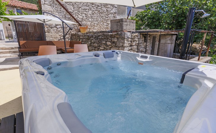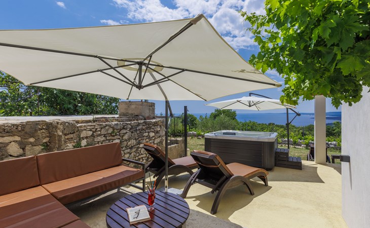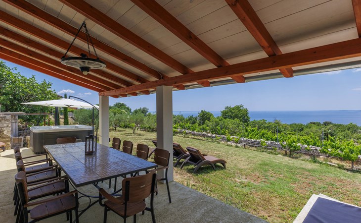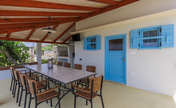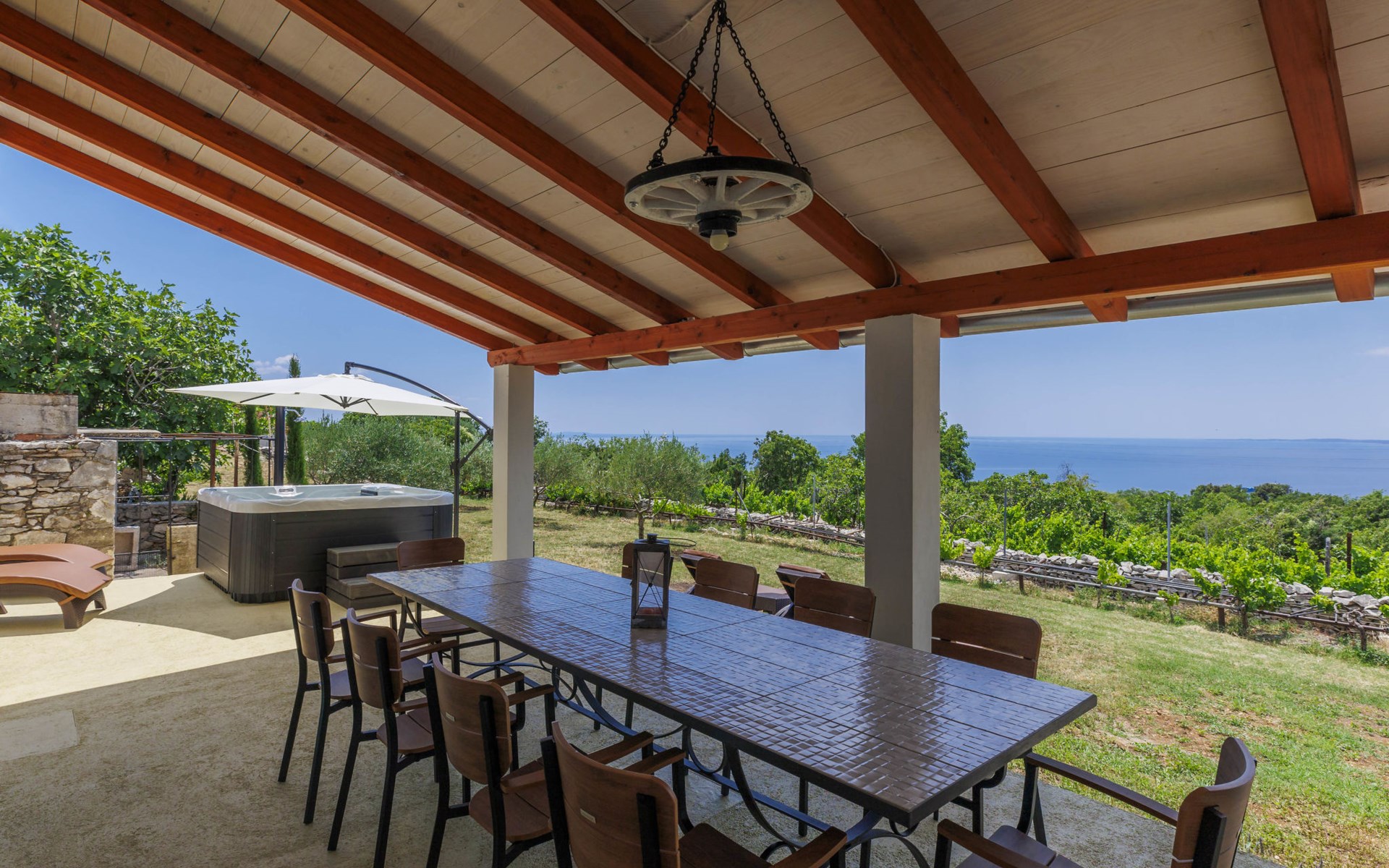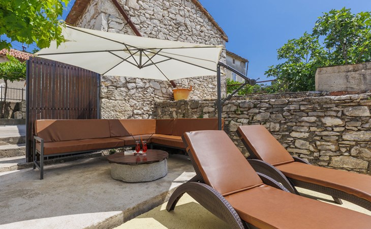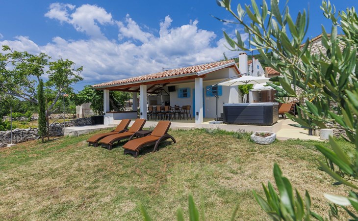 Doppelhaus "Di Nelo". Im Weiler Brovinje, 15 km vom Zentrum von Labin, erhöhte Lage, 3 km vom Meer, 3 km vom Strand, in einer Sackgasse. Zur Alleinbenutzung: Grundstück 1'000 m2 (eingezäunt), Garten mit Rasen. Aussendusche, Sprudelbad, Terrasse (45 m2), Gartenmöbel, Grill. Im Hause: Internetzugang, Waschmaschine. Parkplatz (für 3 Autos) beim Haus auf dem Grundstück. Einkaufsgeschäft 2 km, Restaurant 2 km, Bushaltestelle 17 km, Kieselstrand 3 km, Felsstrand 3 km. Surfschule 10 km, Tennis 18 km, Wanderwege ab Haus 50 m, Radweg 100 m.