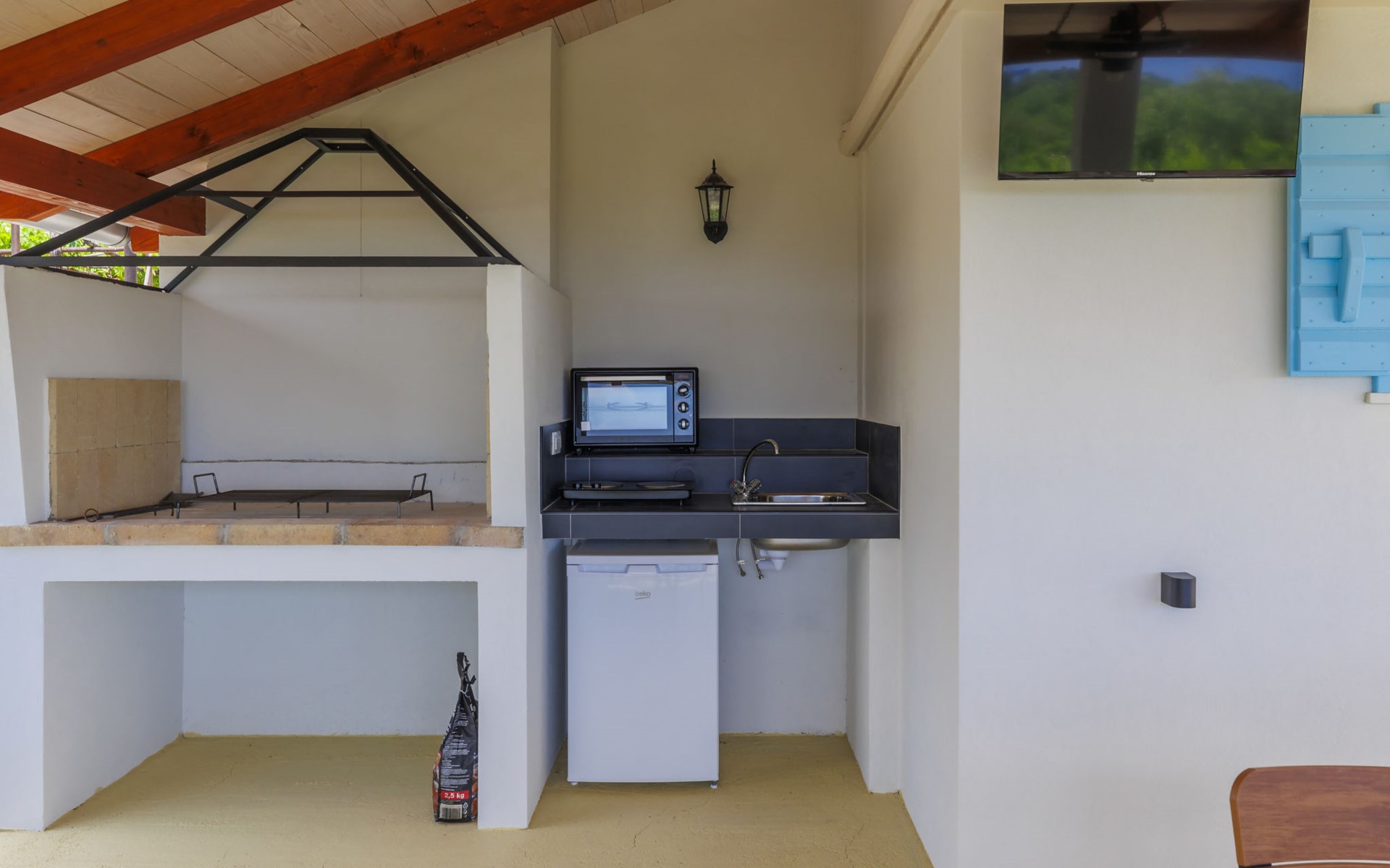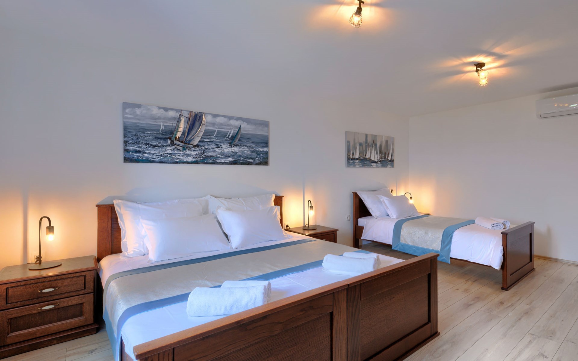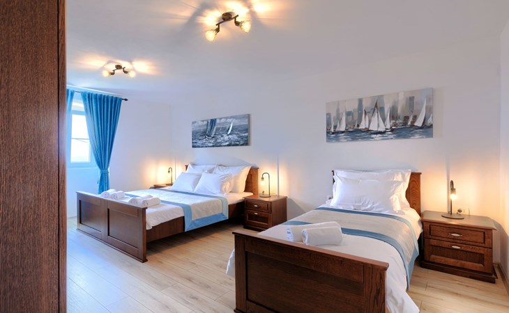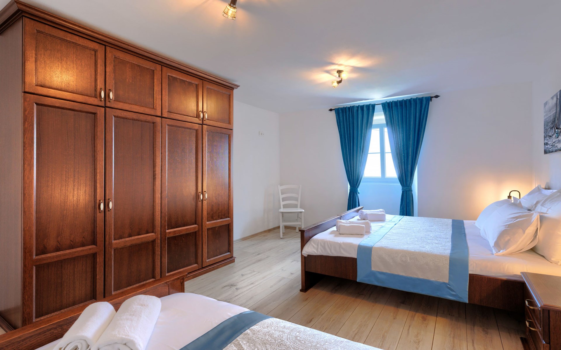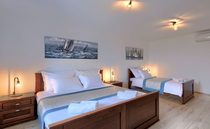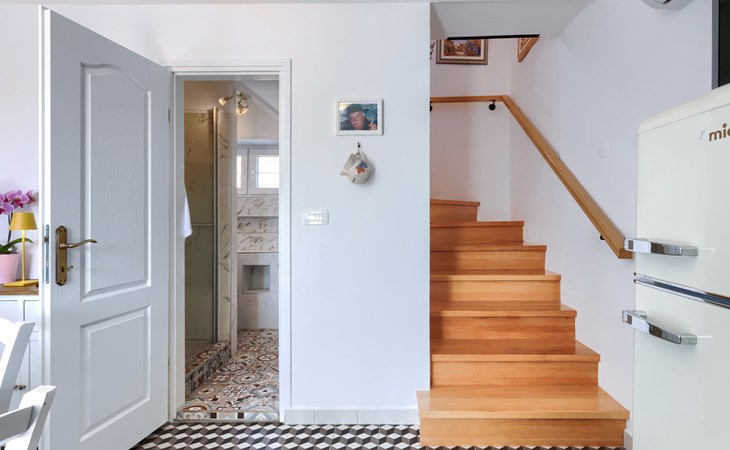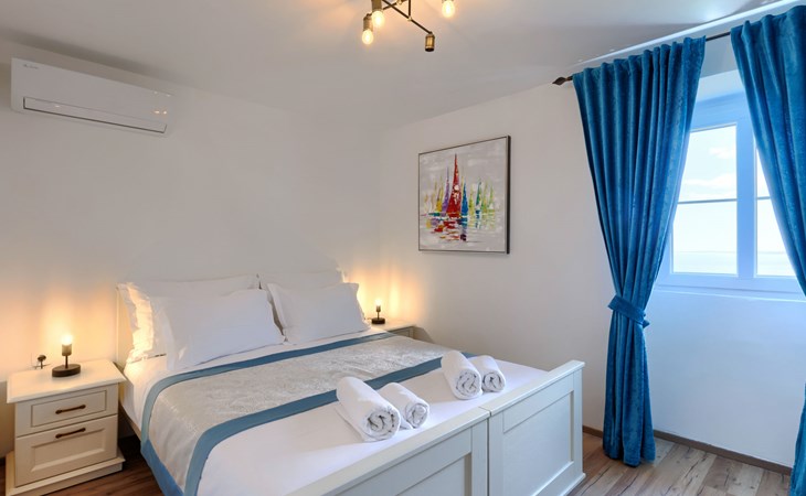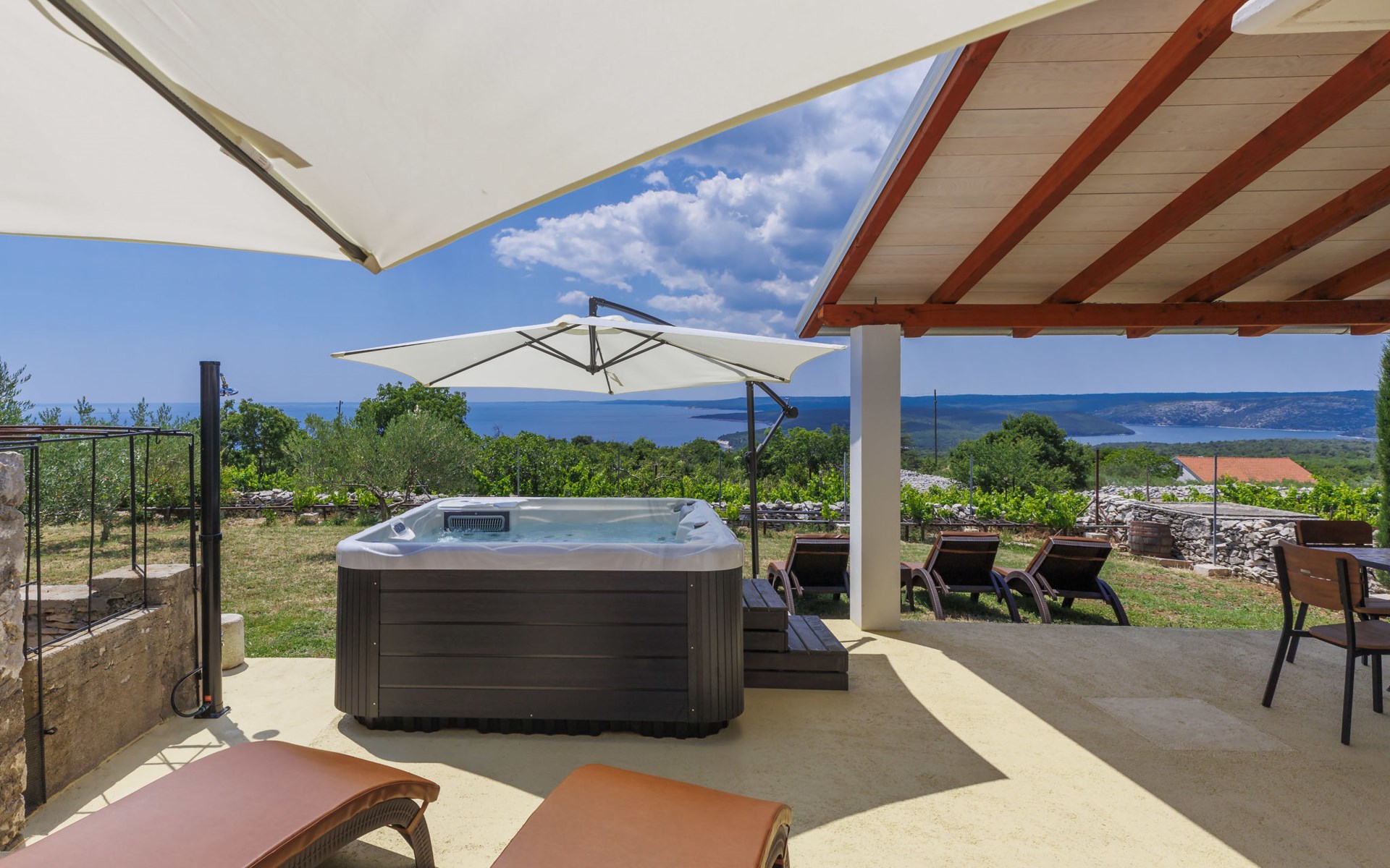 Doppelhaus "Di Nelo". Im Weiler Brovinje, 15 km vom Zentrum von Labin, erhöhte Lage, 3 km vom Meer, 3 km vom Strand, in einer Sackgasse. Zur Alleinbenutzung: Grundstück 1'000 m2 (eingezäunt), Garten mit Rasen. Aussendusche, Sprudelbad, Terrasse (45 m2), Gartenmöbel, Grill. Im Hause: Internetzugang, Waschmaschine. Parkplatz (für 3 Autos) beim Haus auf dem Grundstück. Einkaufsgeschäft 2 km, Restaurant 2 km, Bushaltestelle 17 km, Kieselstrand 3 km, Felsstrand 3 km. Surfschule 10 km, Tennis 18 km, Wanderwege ab Haus 50 m, Radweg 100 m.