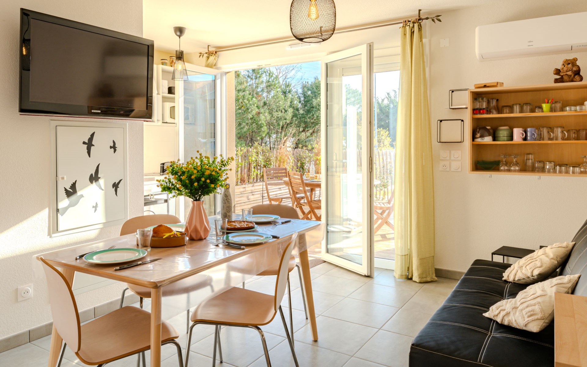 Residenz "Soleil couchant". Im Ort, 900 m vom Zentrum von de Mimizan Plage, 100 m vom Waldrand, 900 m vom Meer, 10 km vom See, 900 m vom Strand. Zur Mitbenutzung: Schwimmbad eingezäunt (4 x 5 m, 150 - 160 cm tief, saisonale Verfügbarkeit: 01.Mai. - 30.Sep. Öffnungszeiten Schwimmbad: 10:00-21:00). Einkaufsgeschäft 850 m, Lebensmittelgeschäft, Bäckerei 800 m, Fußgängerzone 800 m, Fahrradverleih 750 m, Bushaltestelle "Office du tourisme Mimizan" 700 m, Sandstrand "la garluche" 900 m, Badesee "Aureilhan" 10 km. Golfplatz (9 Loch) 7 km, Surfschule 900 m, Tennis 2.5 km. Nahe gelegene Sehenswürdigkeiten: Arcachon 70 km, Biscarrosse 40 km, parcs aventure 7 km, Disc Golf 2 km. Bekannte Seen in der Umgebung sind gut erreichbar: Aureilhan Mimizan 8 km. Alle Häuser/Wohnungen sind individuell eingerichtet.