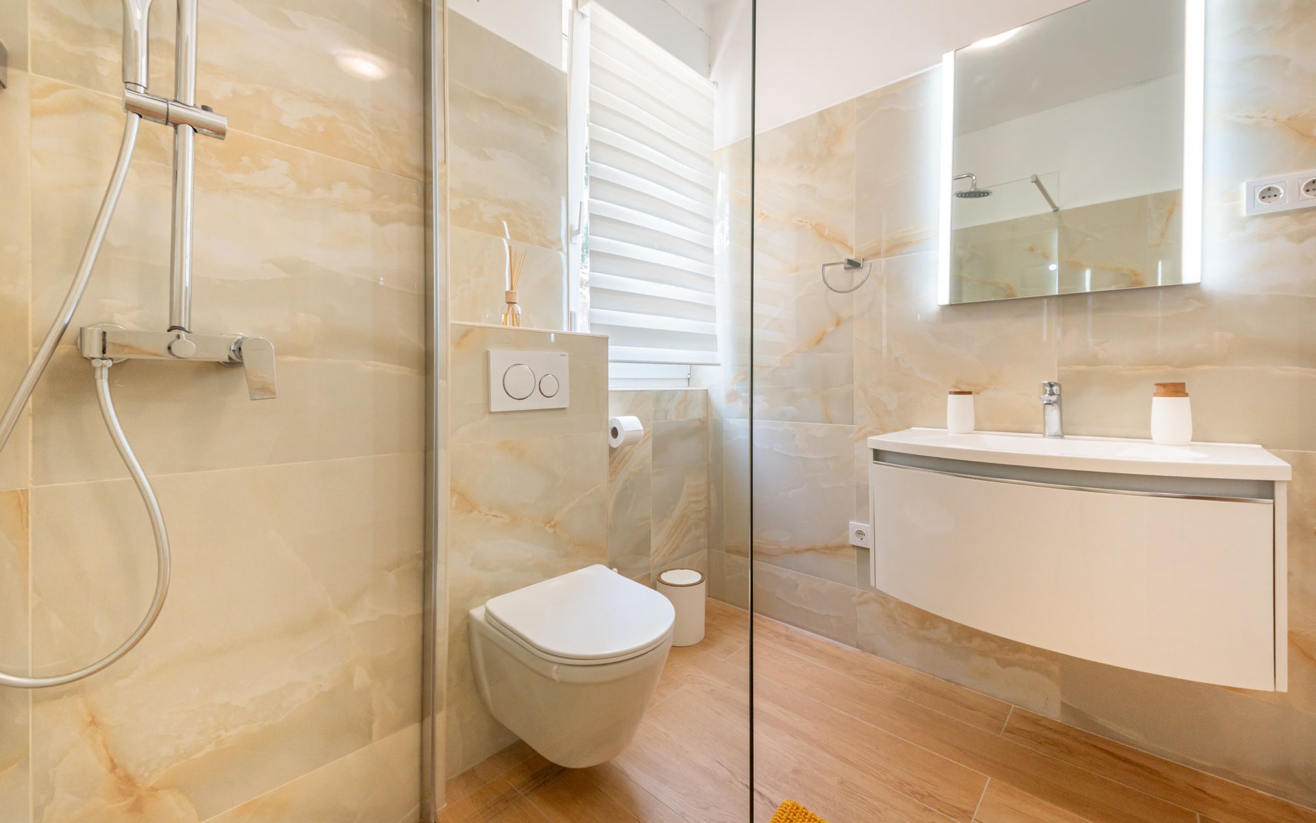 Mehrfamilienhaus "Alenka". Im Ortsteil Veli Kijec, 3 km vom Zentrum von Omišalj, vom Meer, 600 m vom Strand. Im Hause: Internetzugang. Parkplatz beim Haus auf dem Grundstück. Einkaufsgeschäft 350 m, Supermarkt 3 km, Restaurant 3 km, Bushaltestelle 3 km, Steinstrand 600 m, Felsstrand, betonierter Strand 1 km. Minigolf 800 m, Wanderwege ab Haus, Radweg 400 m, Kinderspielplatz. Nahe gelegene Sehenswürdigkeiten: Fulfinum basilica of Mirine, immortelle plantation, Camino Krk trail. Bitte beachten: Flugplatz in der Nähe 4 km vom Haus.