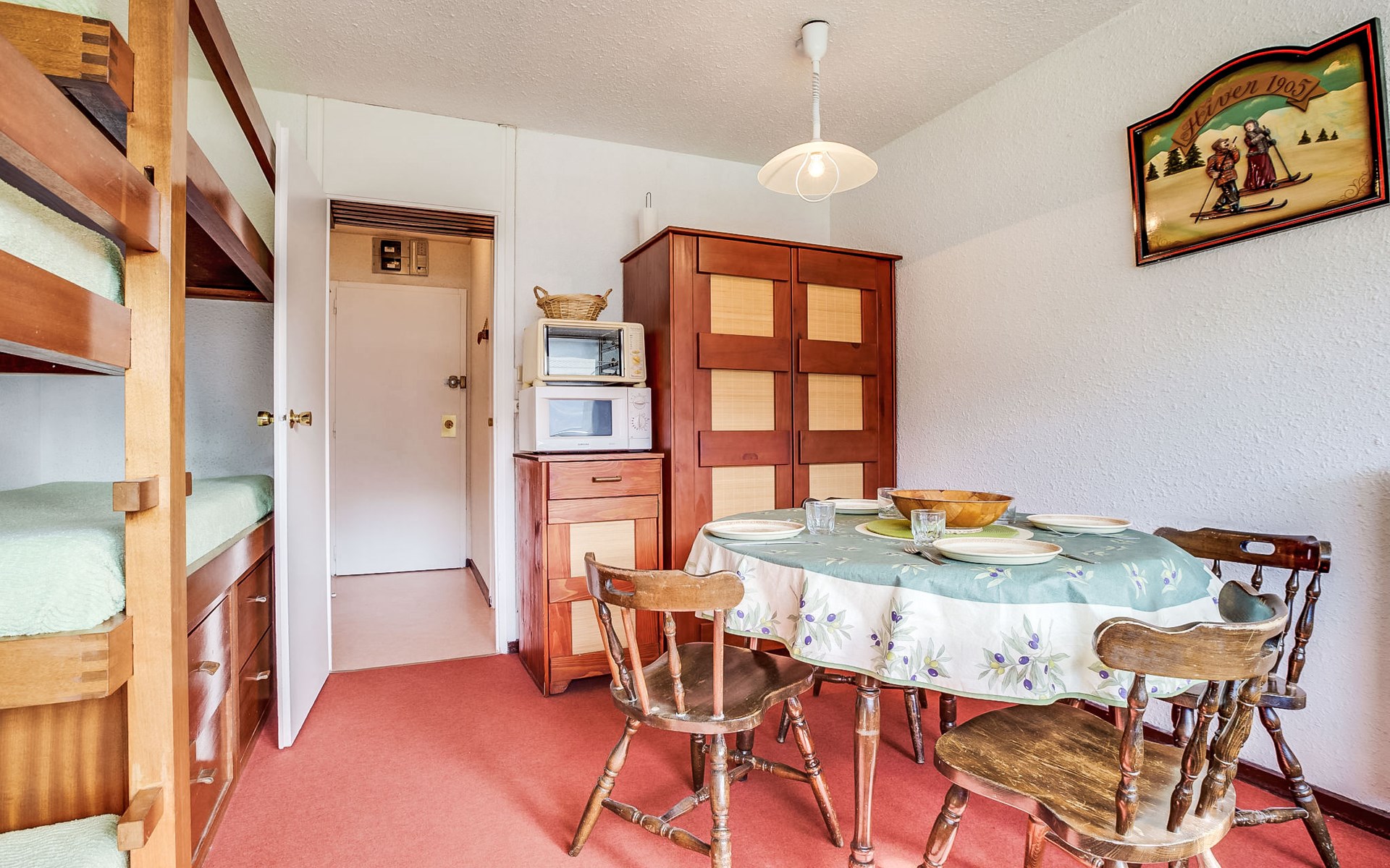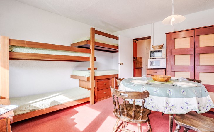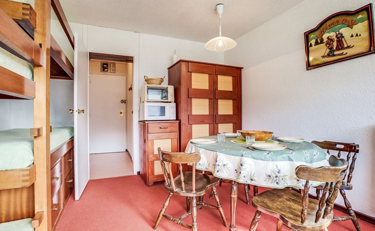 Residenz "Aravis", auf 7 Stockwerken. Im Ortszentrum von la Croisette, direkt am Skigebiet. In der Anlage: Fahrstuhl, Skiraum, Zentralheizung. Öffentliche Parkplätze 50 m auf der Strasse. Einkaufsgeschäft, Supermarkt, Einkaufszentrum, Restaurant 50 m, Bushaltestelle "Gare routière Les Menuires" 200 m. Sportzentrum 100 m, Skisportanlagen 20 m, Skipisten 20 m, Skischule 50 m, Ski-Kindergarten 200 m. Bekannte Skigebiete sind gut erreichbar: 3 Vallées. Bitte beachten: Das Foto ist nur ein Hausbeispiel. Weitere Unterkünfte sind buchbar.