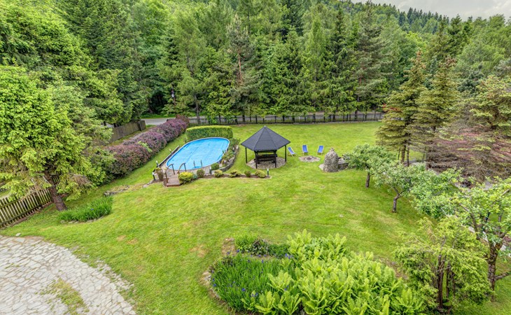 Einfamilienhaus "Hatale", umgeben von Bäumen. Am Ortsrand, ruhige, sonnige Lage, 20 m vom Waldrand, 1.5 km vom Skigebiet. Zur Alleinbenutzung: Grundstück 1'500 m2 (eingezäunt), Garten, Schwimmbad (44 m2, saisonale Verfügbarkeit: 01.Jun. - 15.Sep.). Terrasse, Gartenmöbel, Grill. Im Hause: Sauna, Zentralheizung. Zufahrt bis zum Haus. Parkplatz beim Haus auf dem Grundstück. Einkaufsgeschäft 3 km, Einkaufszentrum 8 km, Restaurant 300 m, Internet-Café, Fahrradverleih 300 m, Bushaltestelle 250 m, Strandbad 20 km. Tennis, Luftseilbahn 1.5 km, Bergeisenbahn 1.5 km, Skilift 1.5 km, Sessellift 1.5 km, Skiverleih 1.5 km, Skibushaltestelle 300 m, Skischule 1.5 km, Kinderskischule 1.5 km, Eisfeld 300 m. Nahe gelegene Sehenswürdigkeiten: Oświęcim 35 km, Kraków 85 km. Bekannte Skigebiete sind gut erreichbar: Czarny Groń Pracica 2 km, Żar 20 km, Korbielów 35 km. Bekannte Seen in der Umgebung sind gut erreichbar: Jezioro Żywieckie 20 km. Bitte beachten: geeignet für Familien. Möglichkeit für Cricket und Badminton (Ausrüstung vor Ort). Bergbach mit Badeplatz 100 m. Skigebiet Czarny Groń Pracica beleuchtet, Skipiste mit Kunstschnee beschneit. Indoor-Klettern, Hochseilgarten 300 m Das SPA Zentrum 300 m. Transfer vom/zum Flughafen, bis zu 8 Personen (extra bezahlt). Internet WLAN USB. WICHTIG: Kaution 600 PLN.