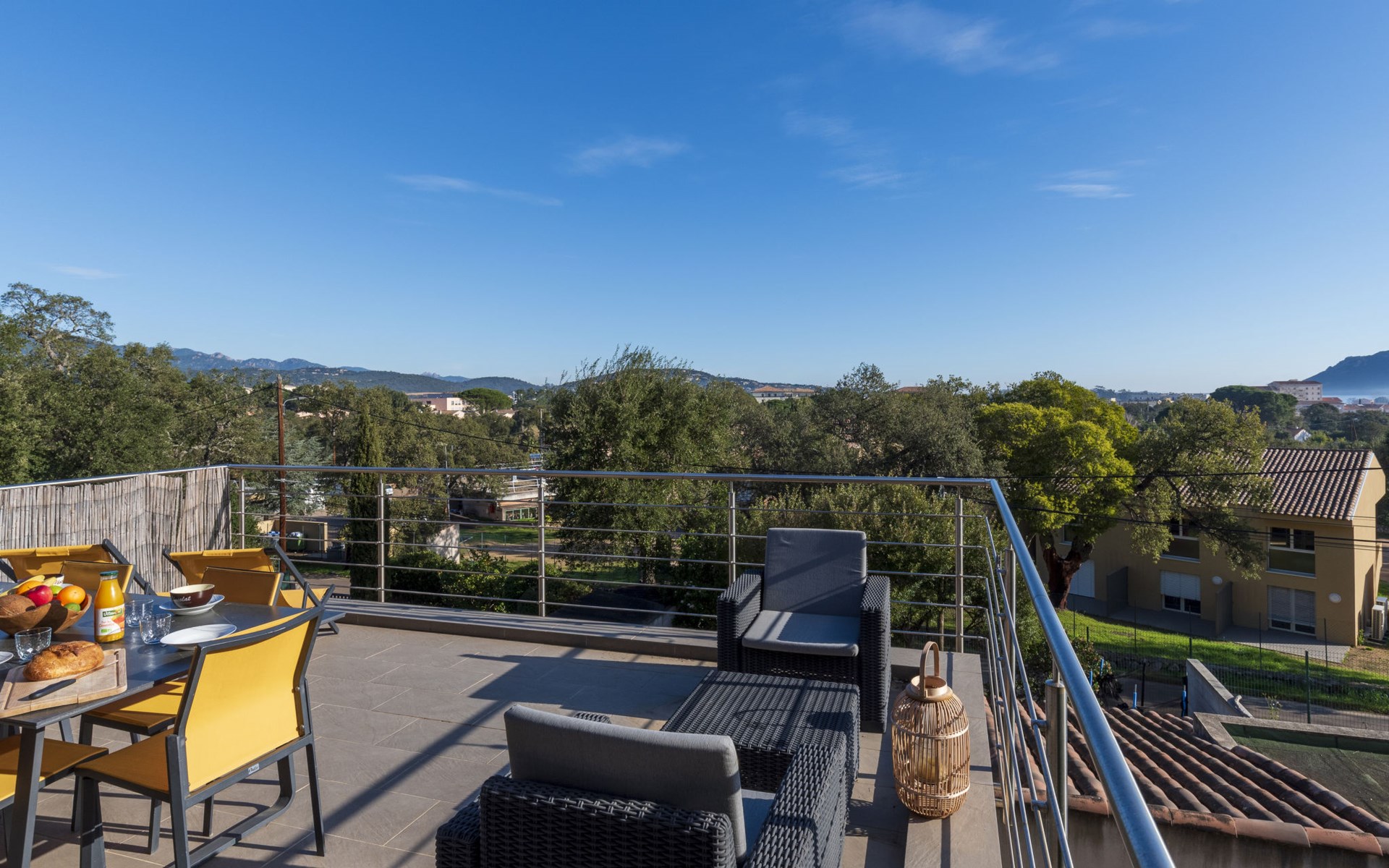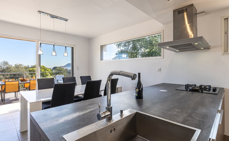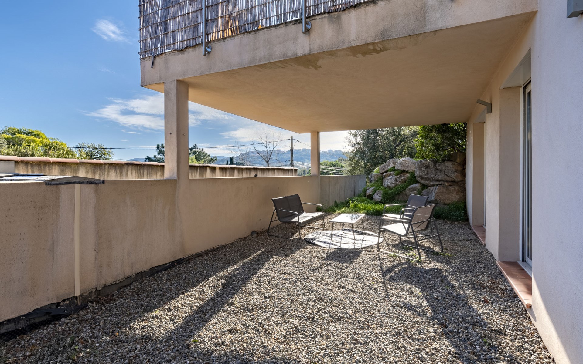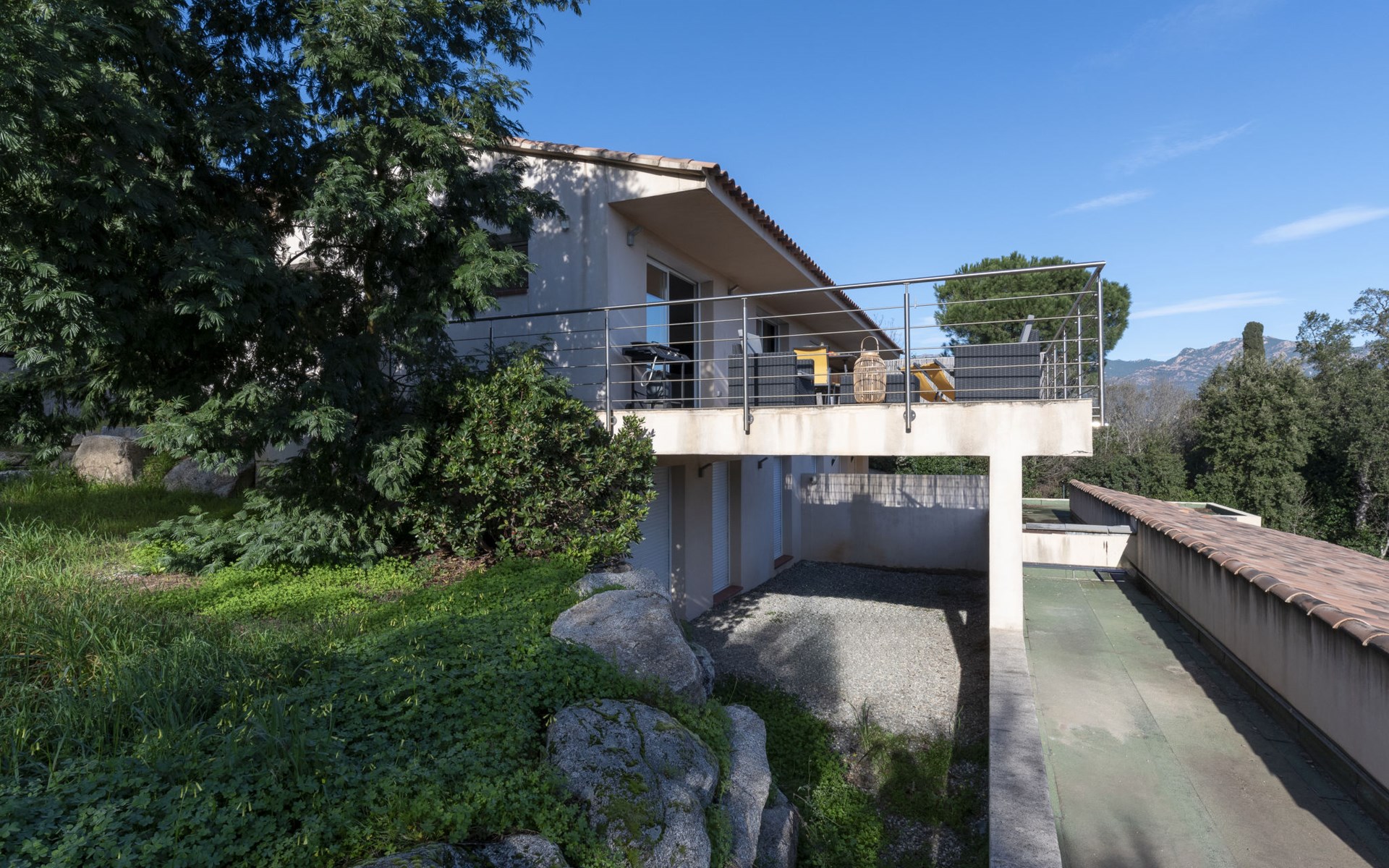 Porto-Vecchio: Doppelhaus "Casa Caminu", auf 2 Stockwerken. Im Ortsteil Boccajo, im Ortszentrum von Porto-Vecchio, exzellente Lage: Absolut zentral und dennoch ruhig, 1.5 km vom Meer, 2.4 km vom Strand. Zur Alleinbenutzung: Garten, Parkplatz (für 2 Autos) auf dem Grundstück. Supermarkt 1 km, Einkaufszentrum 1 km, Restaurant 700 m, Bushaltestelle "Porto-Vecchio Centre" 750 m, Sandstrand "Plage de Cala Verde" 2.4 km. Sporthafen 2.5 km, Golfplatz (9 Loch) 9 km. Nahe gelegene Sehenswürdigkeiten: Plage de Santa Giulia 10 km, Plage de Palombaggia 13 km, Plage de Saint Cyprien 11 km, Bonifacio 31 km. Bekannte Seen in der Umgebung sind gut erreichbar: Lac de l'Ospedale 20 km. Wandergebiete: Les Aiguilles de Bavella 47 km. Bitte beachten: Fahrzeug empfohlen.