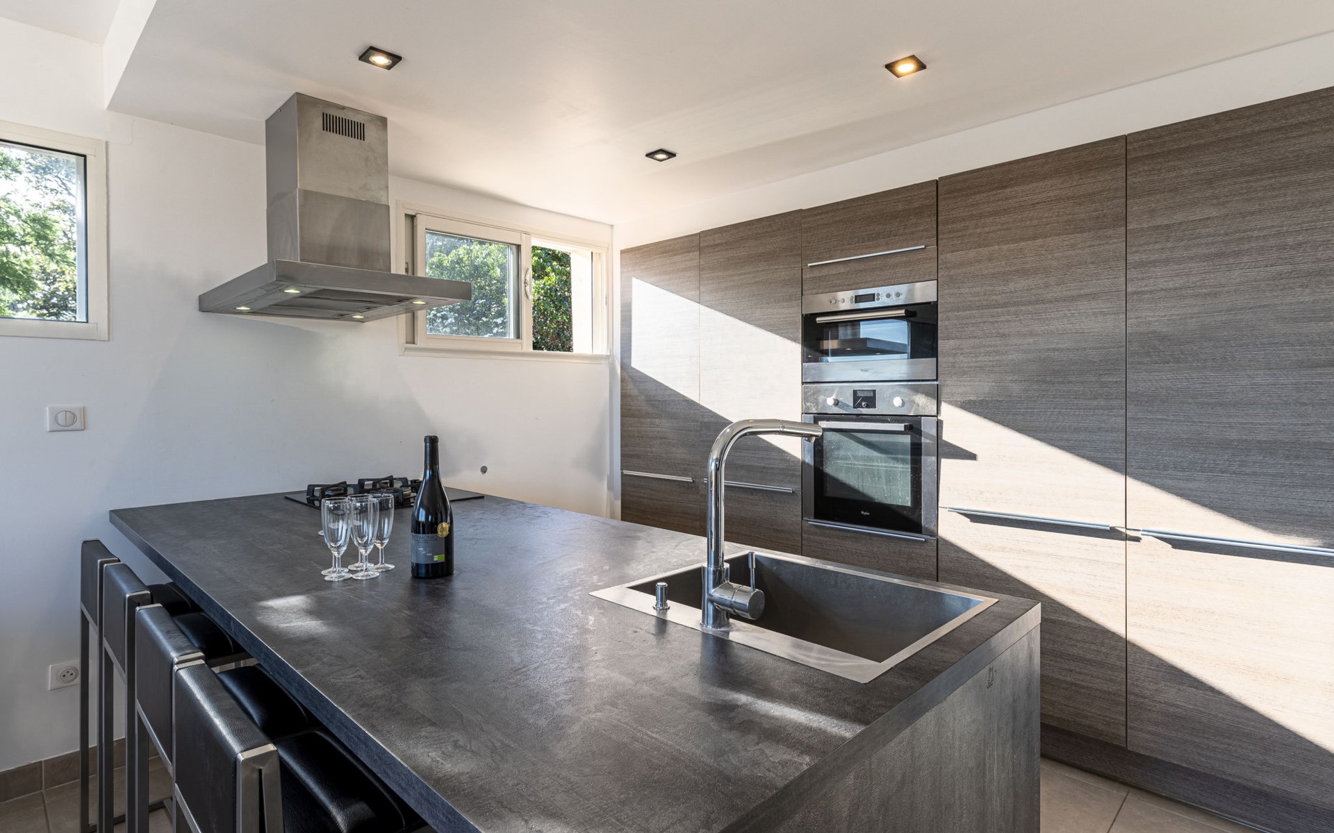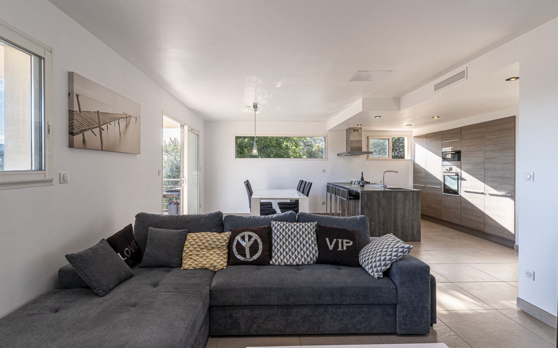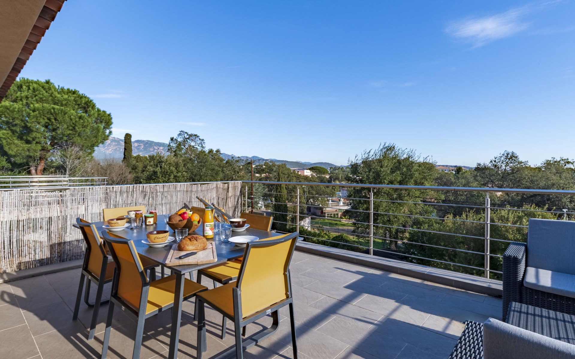 Porto-Vecchio: Doppelhaus "Casa Caminu", auf 2 Stockwerken. Im Ortsteil Boccajo, im Ortszentrum von Porto-Vecchio, exzellente Lage: Absolut zentral und dennoch ruhig, 1.5 km vom Meer, 2.4 km vom Strand. Zur Alleinbenutzung: Garten, Parkplatz (für 2 Autos) auf dem Grundstück. Supermarkt 1 km, Einkaufszentrum 1 km, Restaurant 700 m, Bushaltestelle "Porto-Vecchio Centre" 750 m, Sandstrand "Plage de Cala Verde" 2.4 km. Sporthafen 2.5 km, Golfplatz (9 Loch) 9 km. Nahe gelegene Sehenswürdigkeiten: Plage de Santa Giulia 10 km, Plage de Palombaggia 13 km, Plage de Saint Cyprien 11 km, Bonifacio 31 km. Bekannte Seen in der Umgebung sind gut erreichbar: Lac de l'Ospedale 20 km. Wandergebiete: Les Aiguilles de Bavella 47 km. Bitte beachten: Fahrzeug empfohlen.