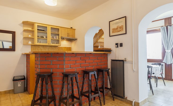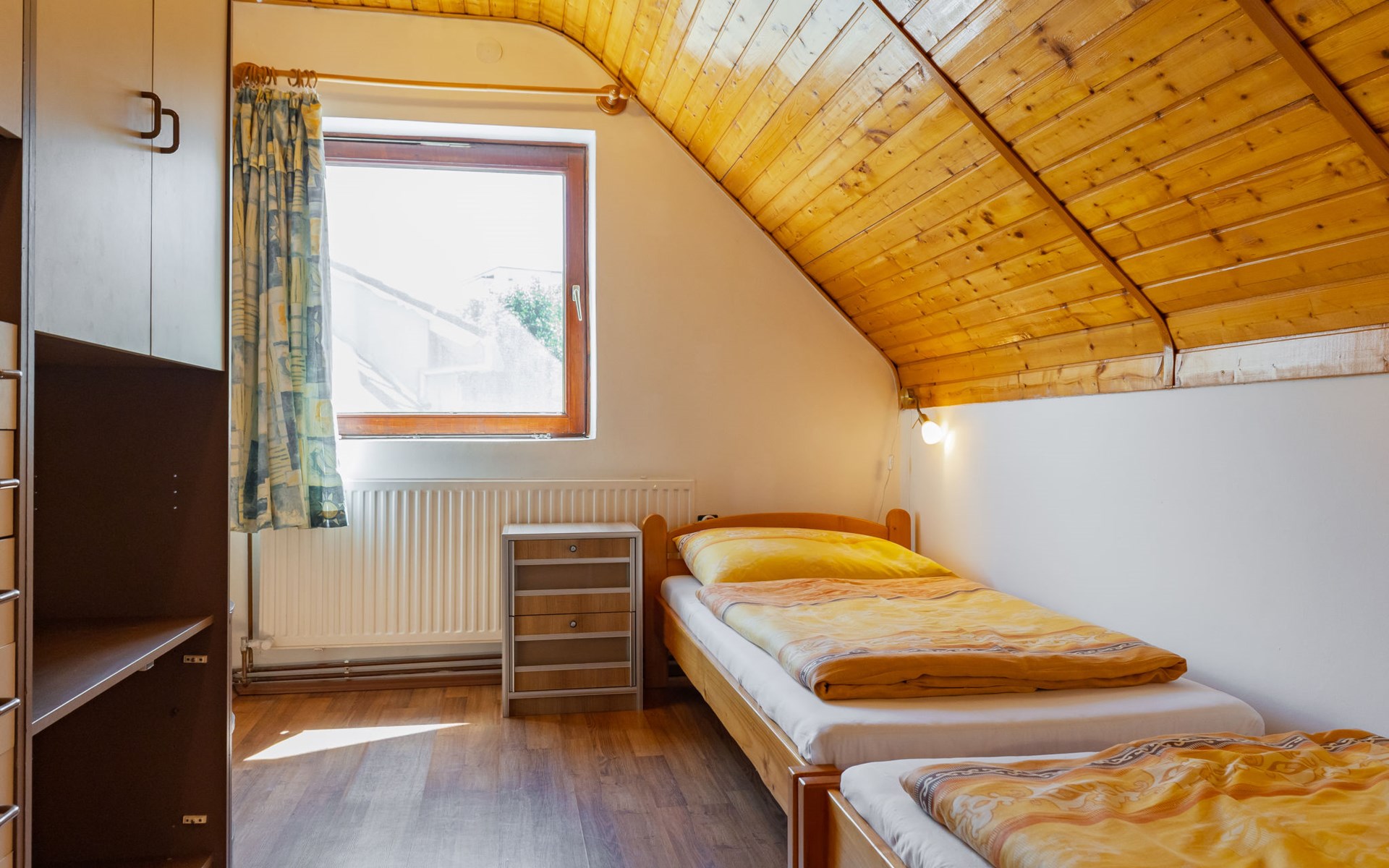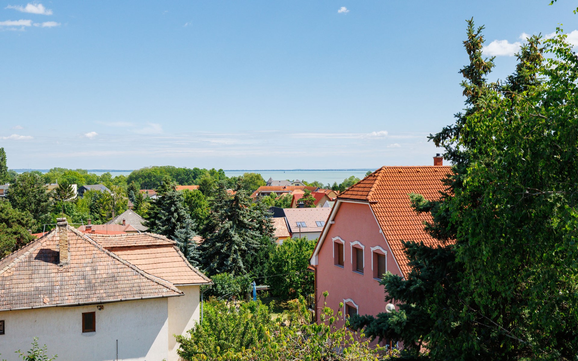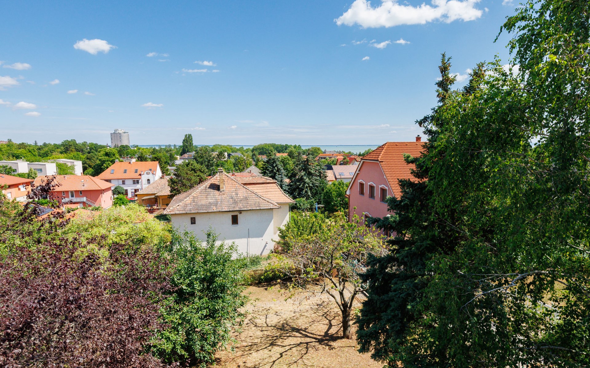 Balatonalmádi 16 km von Balatonfüred: Haus "Csonka". Im Ortszentrum, 40 m vom Zentrum von Balatonalmadi, am Hang, 700 m vom See, 650 m vom Strand, in einer Sackgasse. Zur Alleinbenutzung: Grundstück 700 m2 (eingezäunt) mit Bäumen, Wiese. Aussendusche, Parkplatz (für 2 Autos) auf dem Grundstück. Einkaufsgeschäft 40 m, Supermarkt 200 m, Restaurant 40 m, Grasstrand 700 m. Ein Teil des Hauses ist geschlossen und nicht bewohnt.