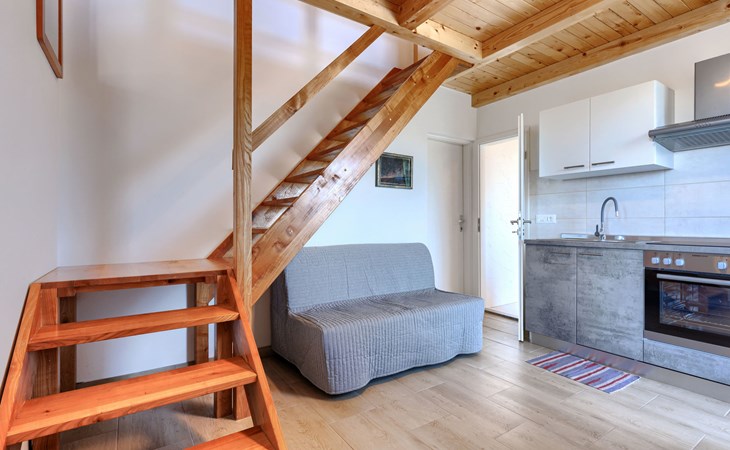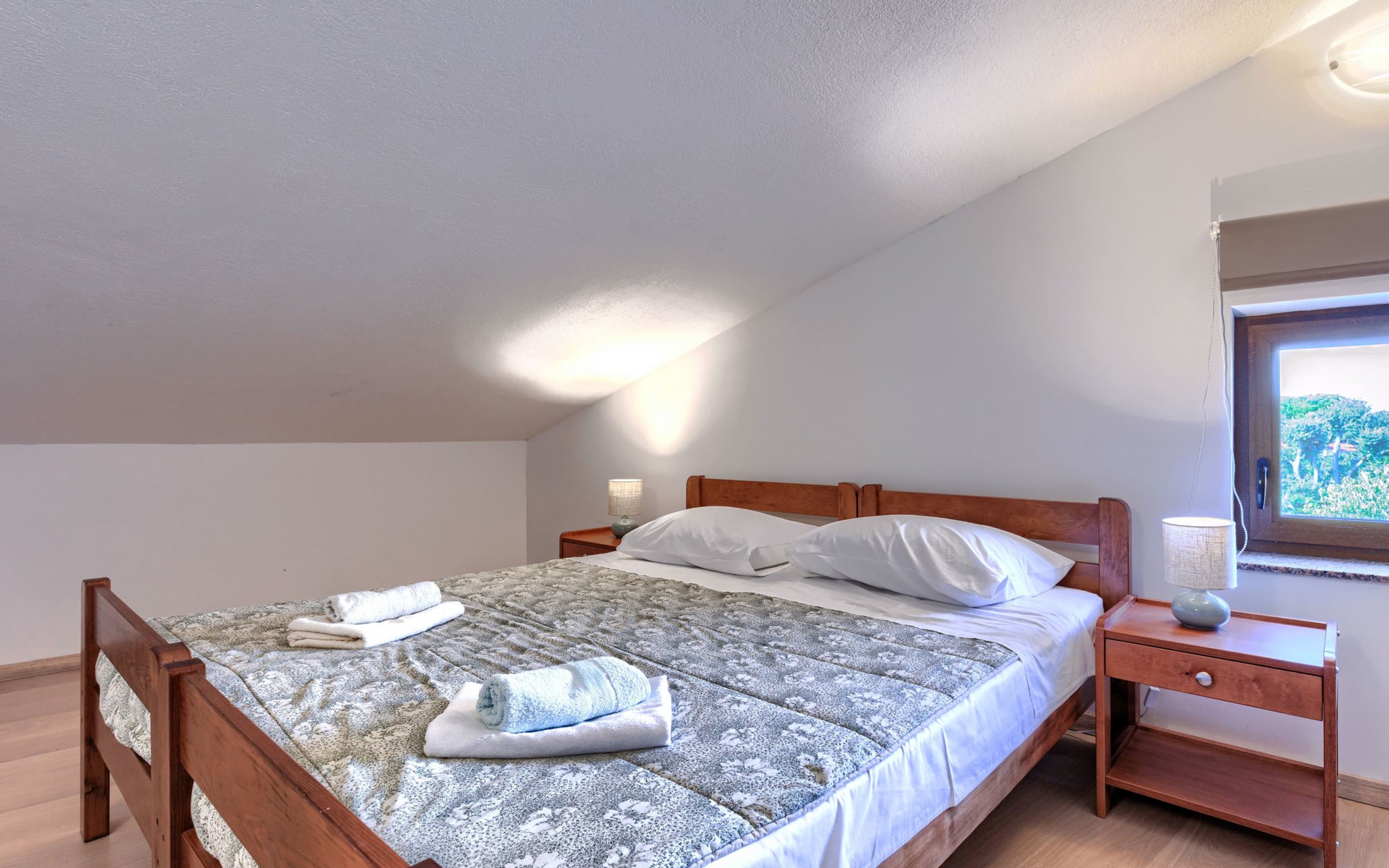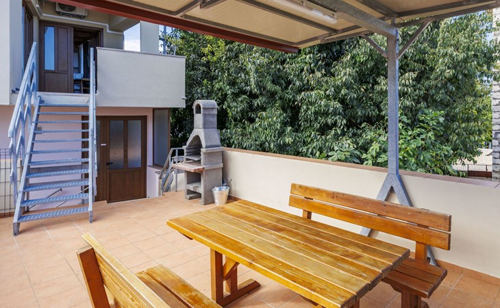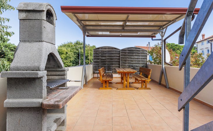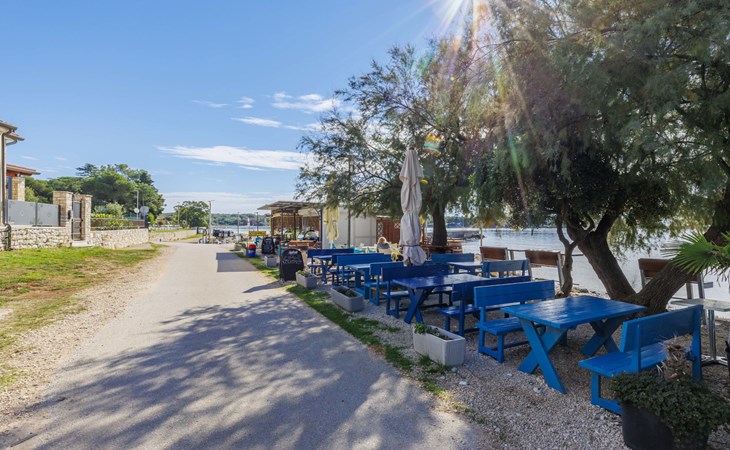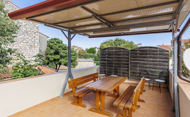 Rustikales Mehrfamilienhaus auf 2 Stockwerken. Im Ortszentrum von Lovrečica, 6 km vom Zentrum von Umag, zentrale Lage, 50 m vom Meer, 50 m vom Strand. Zur Mitbenutzung: Hof. Terrasse (30 m2), Gartenmöbel, Grill. Im Hause: Internetzugang. Öffentliche Parkplätze. Einkaufsgeschäft 1 km, Supermarkt 5 km, Restaurant, Bar 50 m, Bushaltestelle 5 km, Bahnstation 35 km, Kieselstrand, Felsstrand 50 m. Golfplatz (18 Loch) 15 km, Tennis 1 km. Nahe gelegene Sehenswürdigkeiten: Aquapark 15 km.